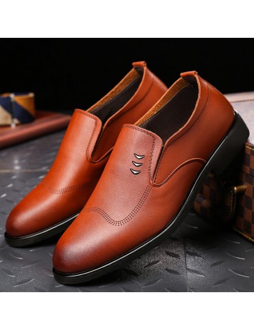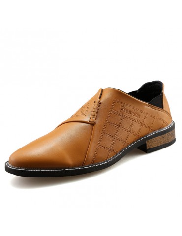 Men Splicing Leather Stitching Pointed Toe Slip Resistant Casual Formal Shoes
