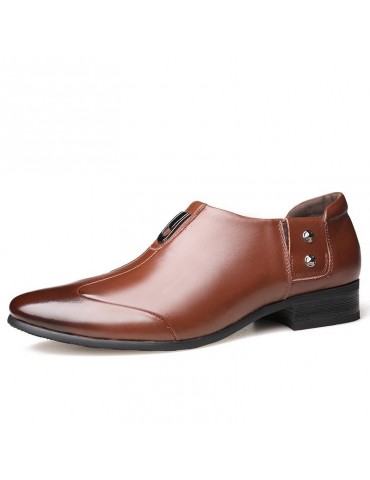 Men Stylish Leather Slip Resistant Metal Decoration Formal Dress Shoes