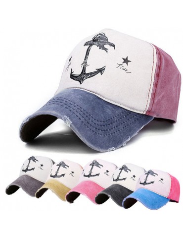 Men Women Cotton Thin Sunshade Baseball Caps Vintage Anchor Pattern Breathable Caps