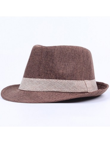 Men Women Stylish Linen Panama Fedora Jazz Hats Sunscreen Breathable Beach Sun Hats