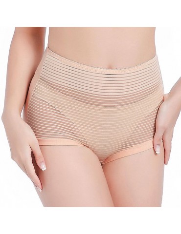 Plus Size Sexy Mesh High Waist Cotton Stripe Panties For Women