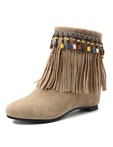 Large Size Women Casual Bohemia Beading Tassel Heigth Increasing Zipper Boots