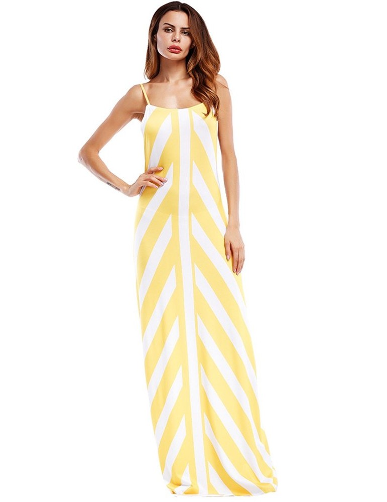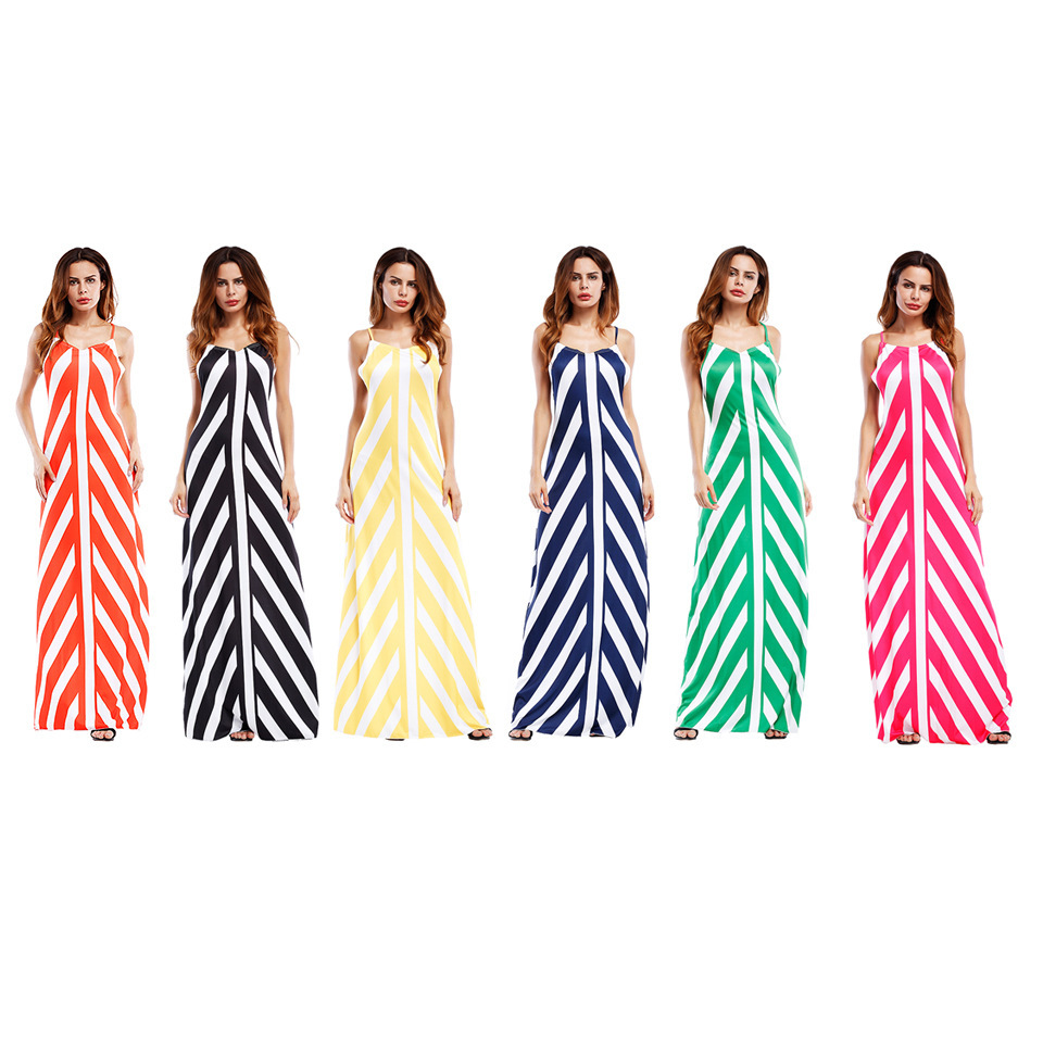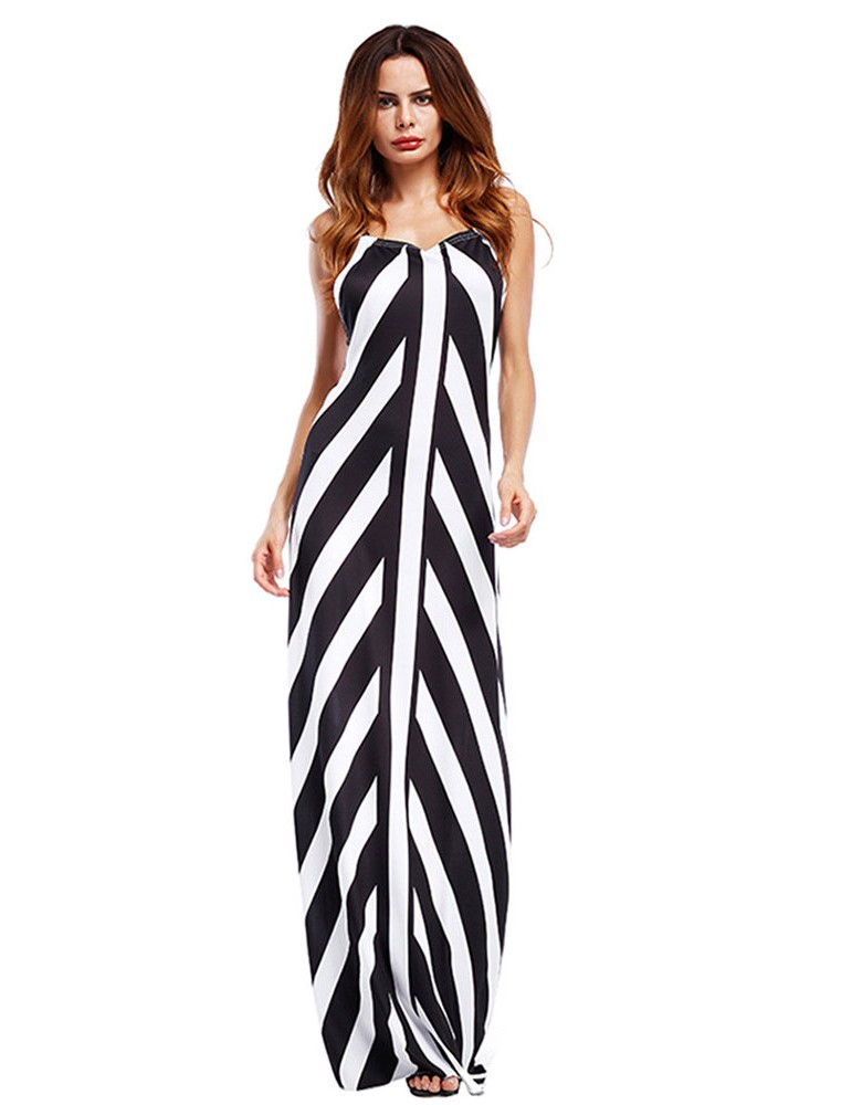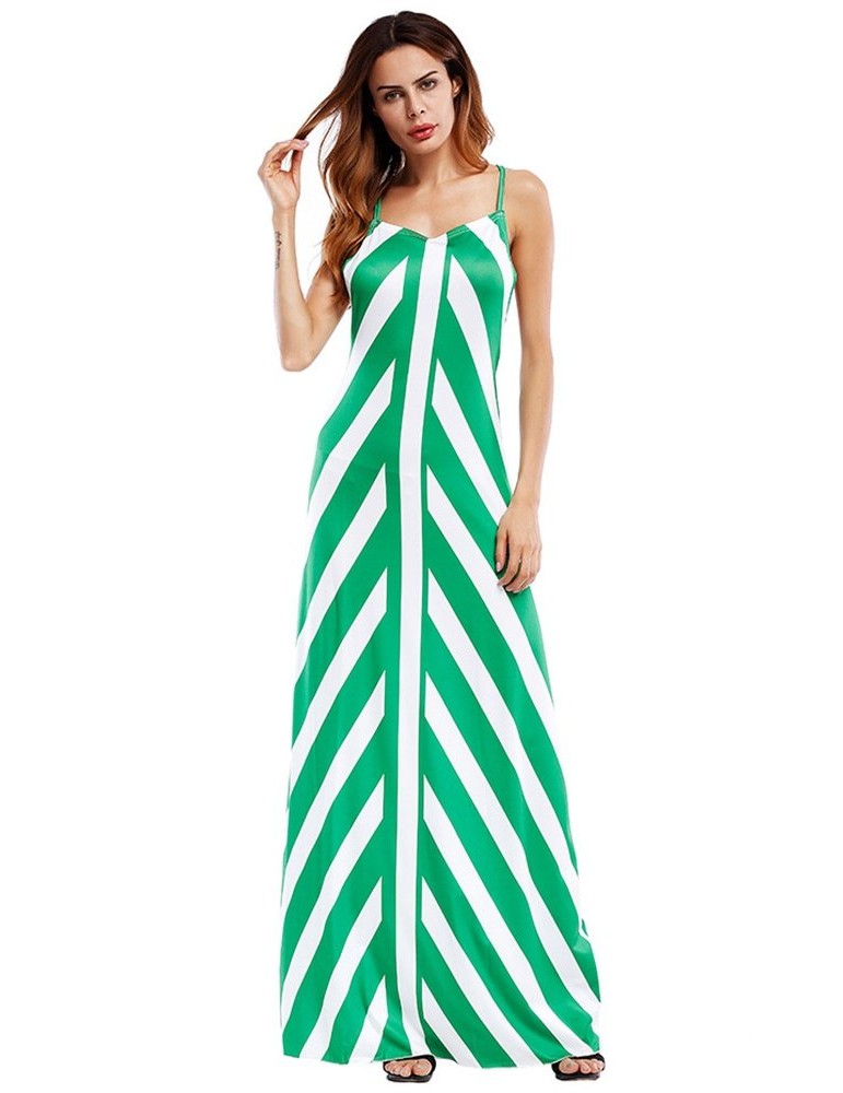 Sexy Stripe Backless Cross Strap V-neck Women Maxi Dresses