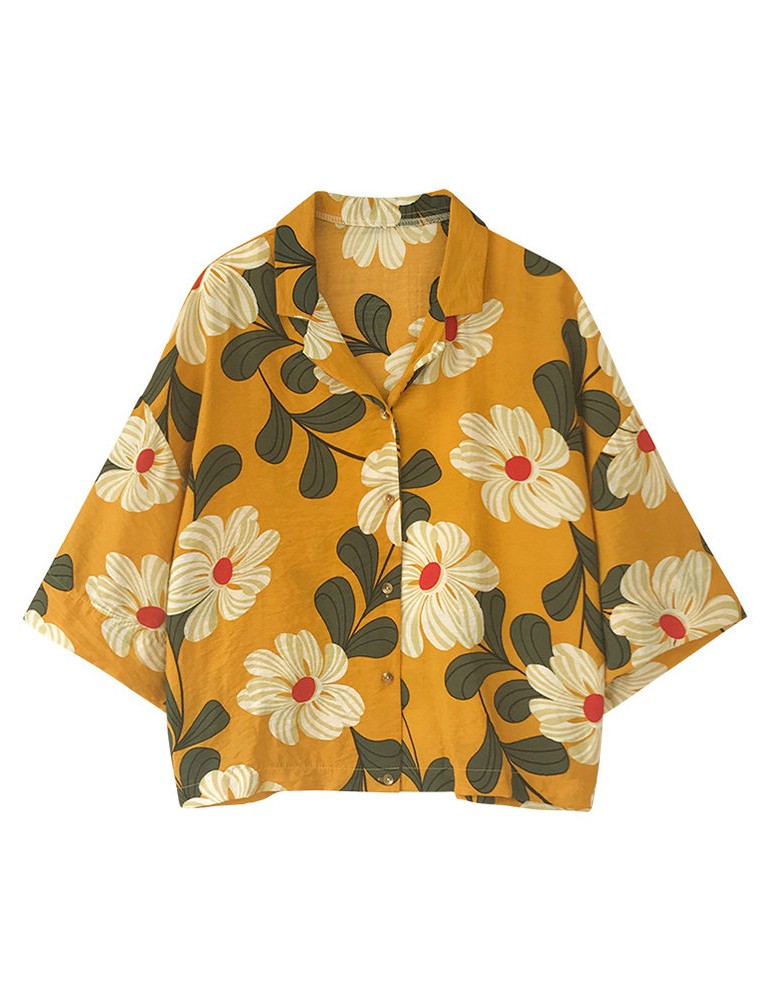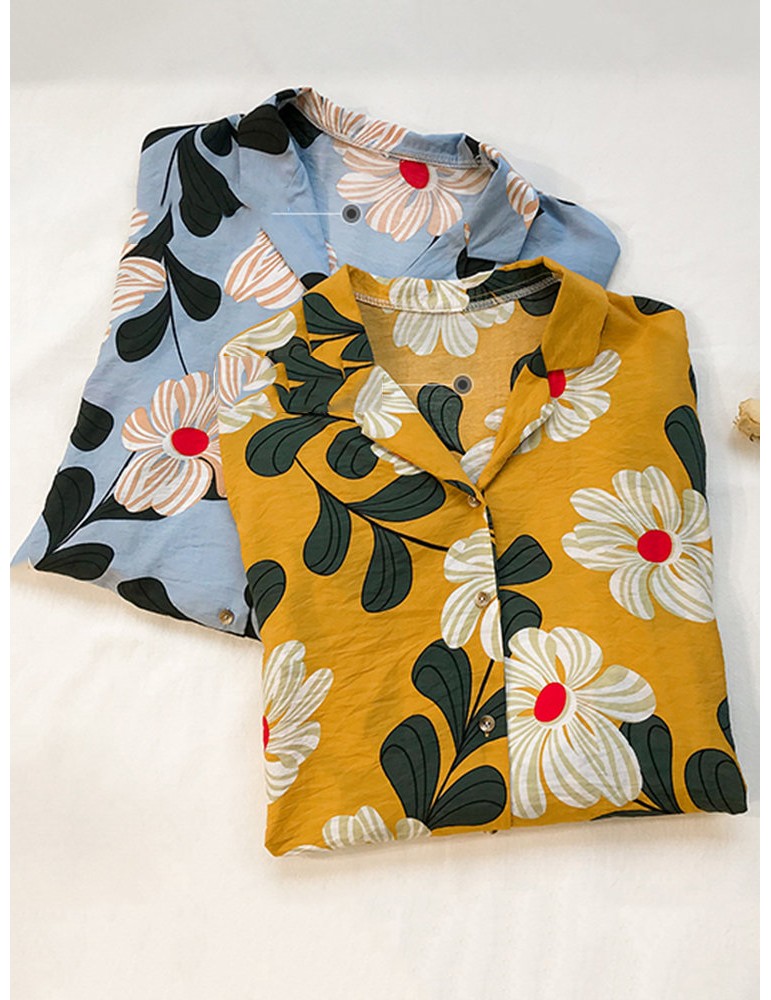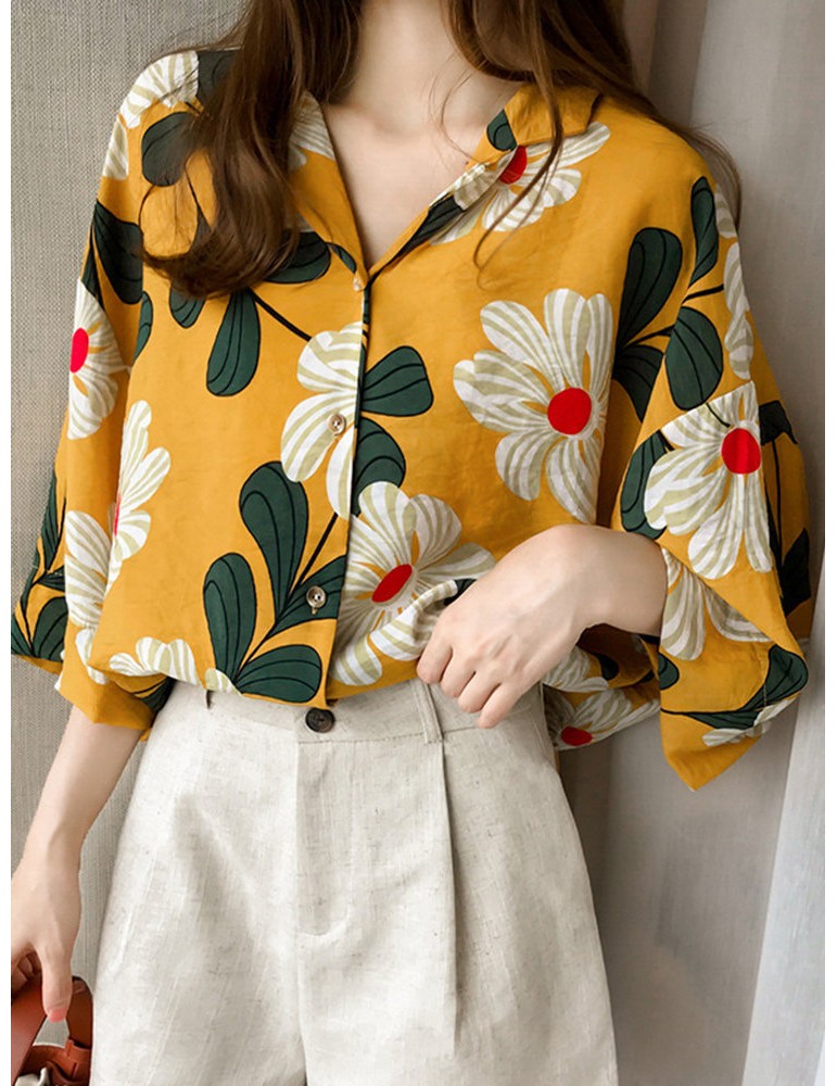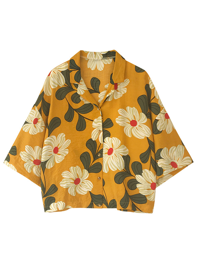 Floral Printed 3/4 Sleeve Turn-down Collar Shirts