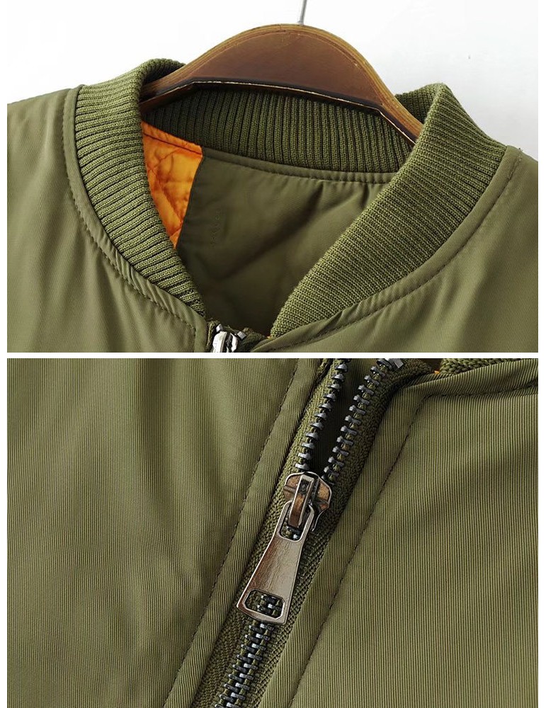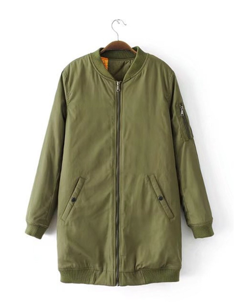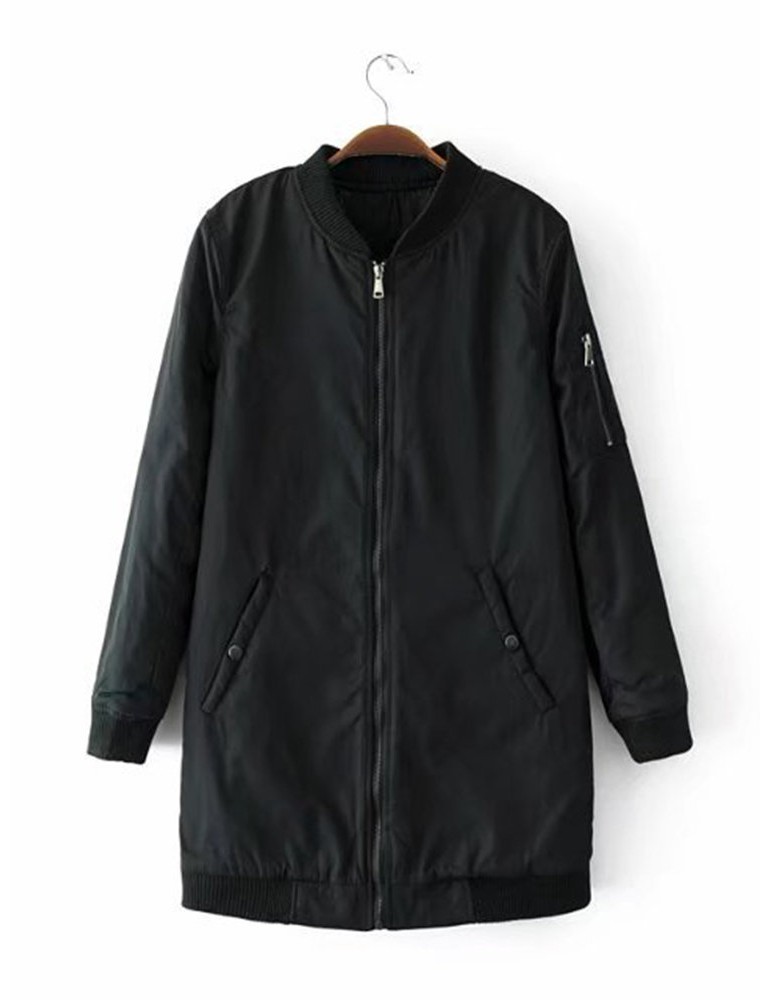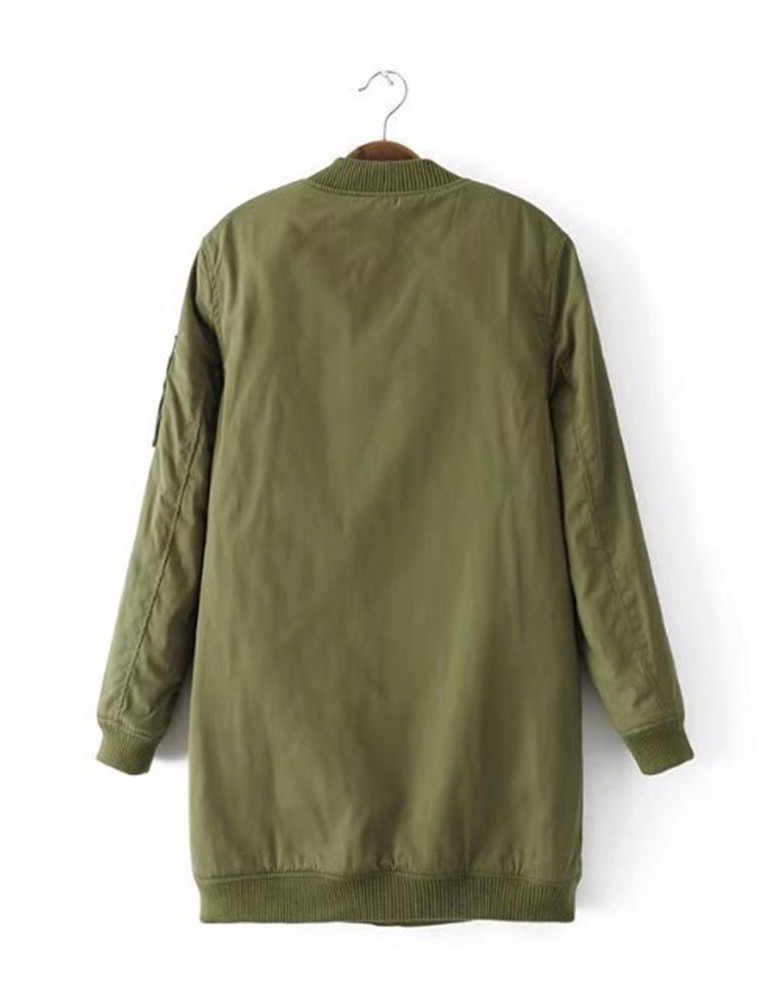Women Long Sleeve Zipper Pocket Pure Color Cotton Coats