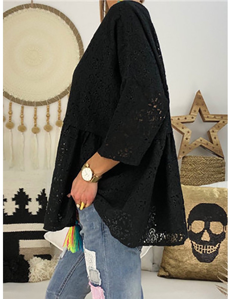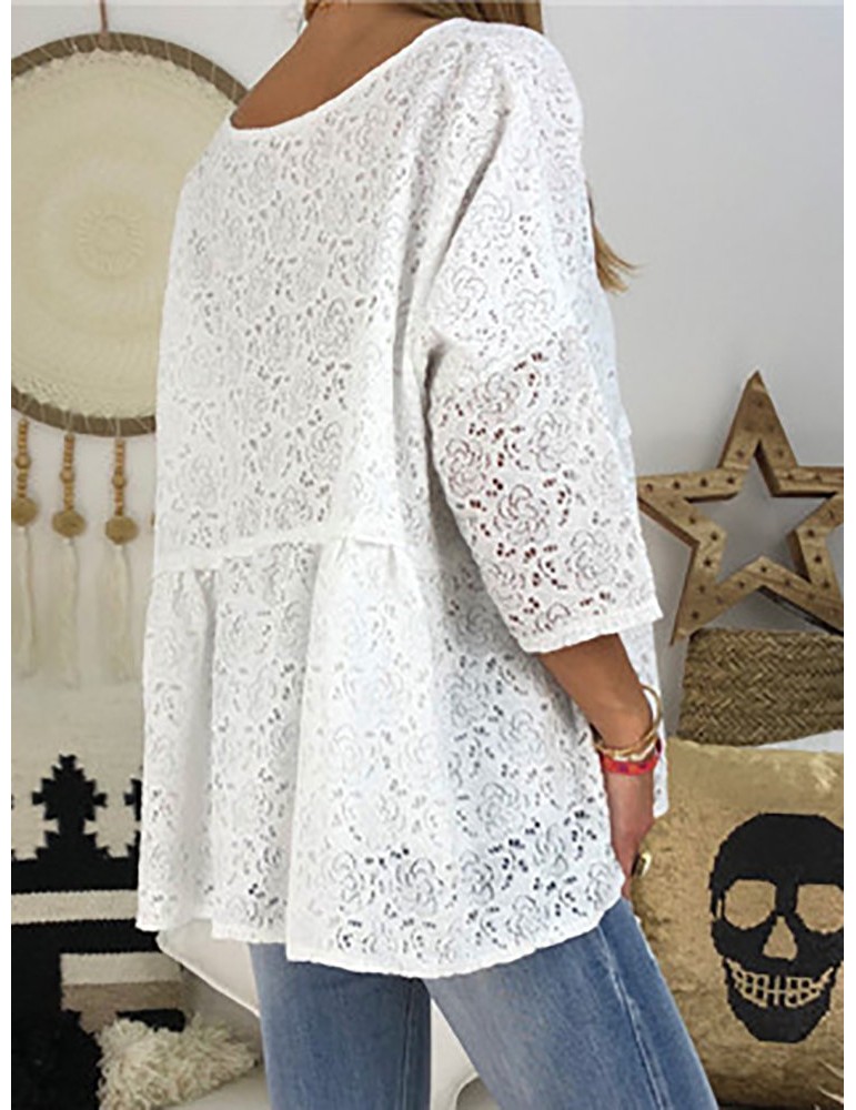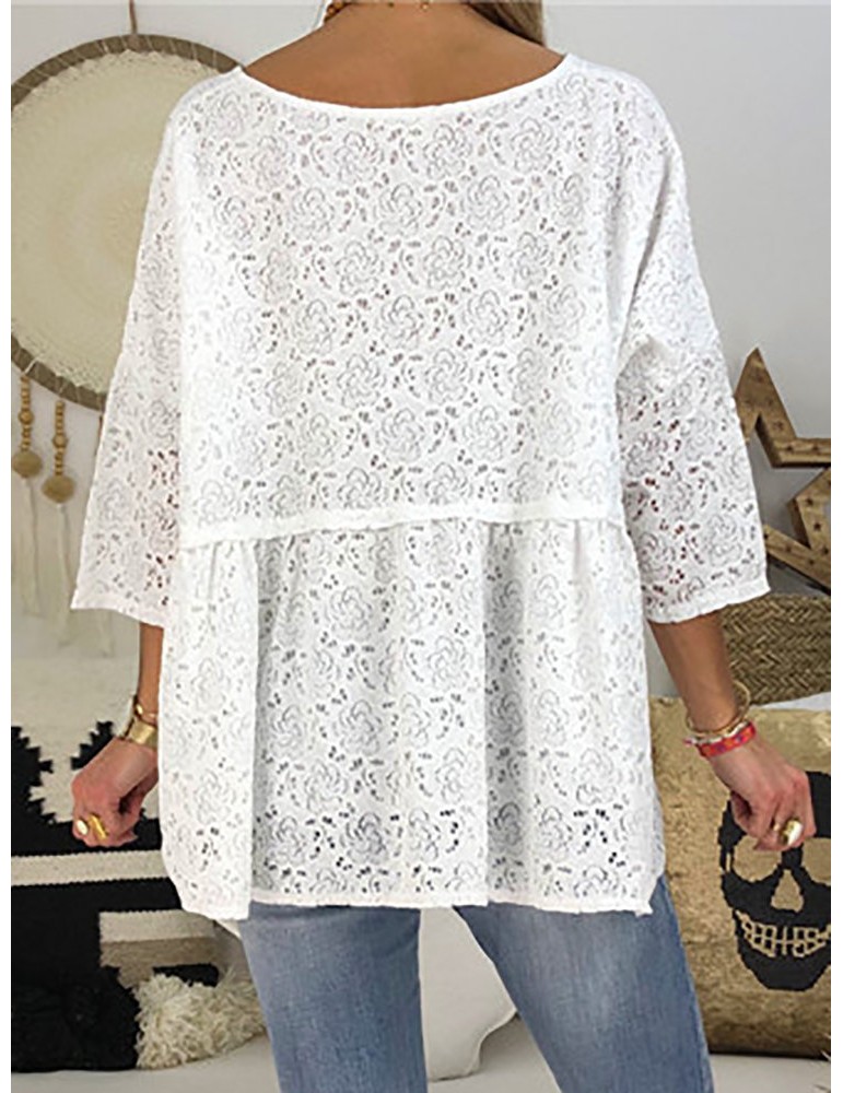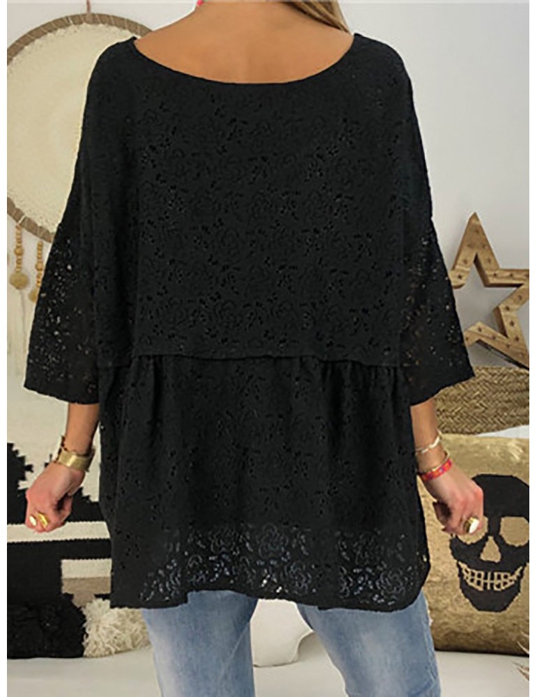Lace Crochet V-neck Half Sleeve Loose Plus Size Blouse