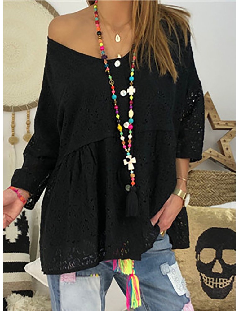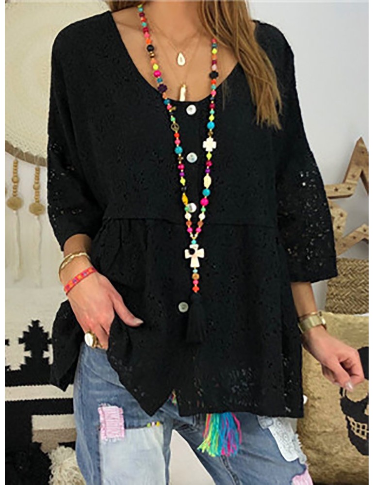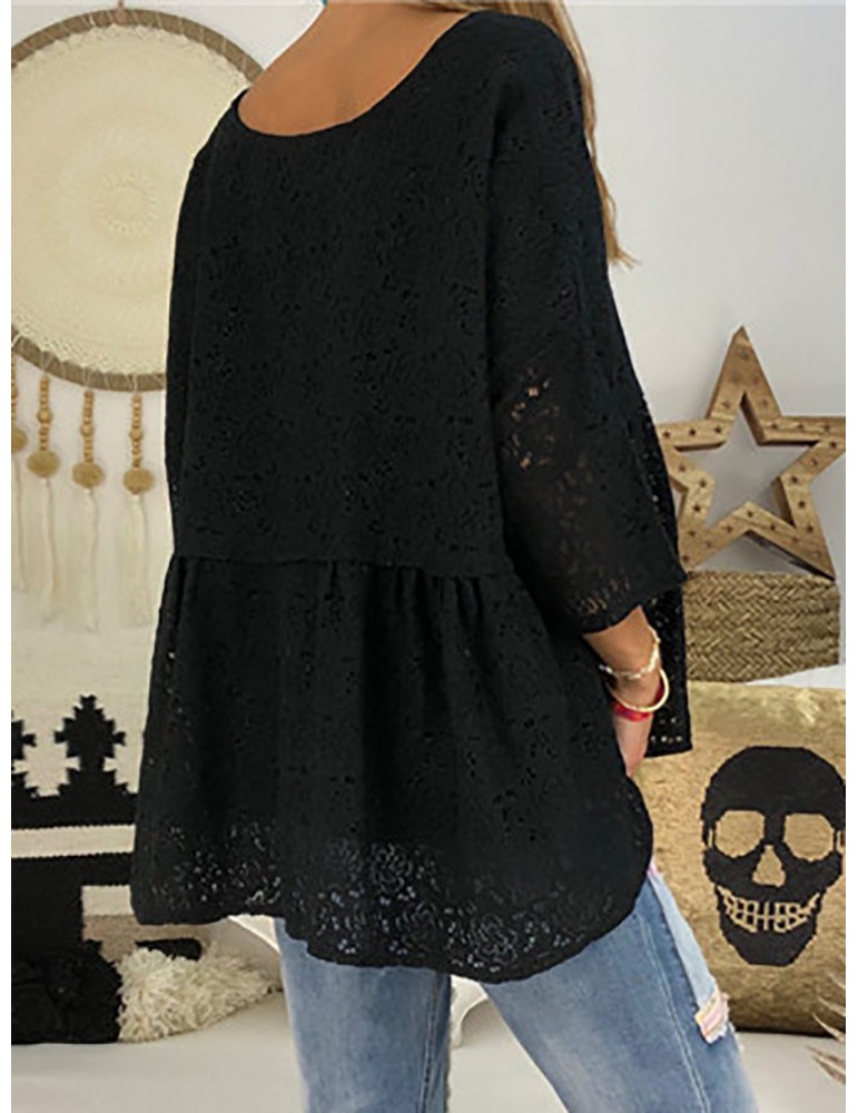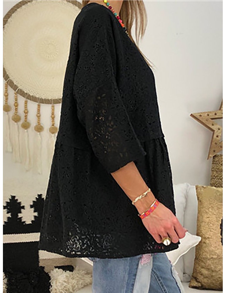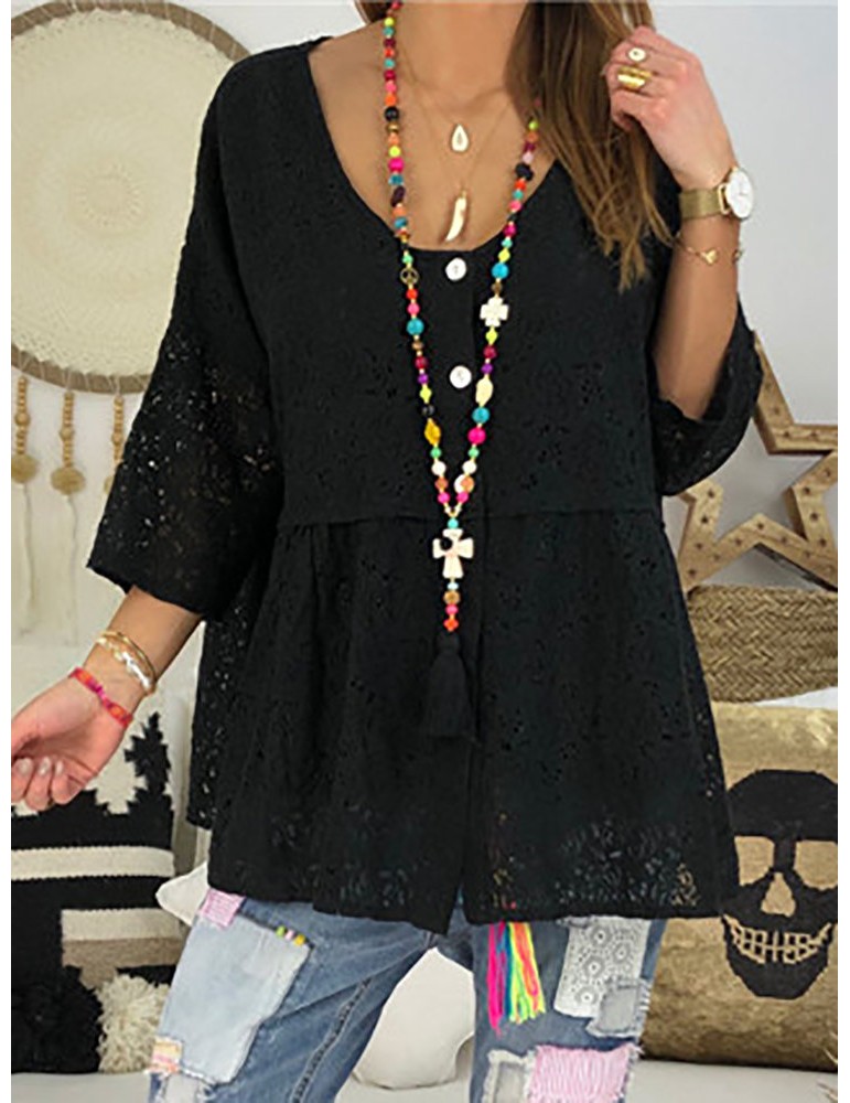 Lace Crochet V-neck Half Sleeve Loose Plus Size Blouse