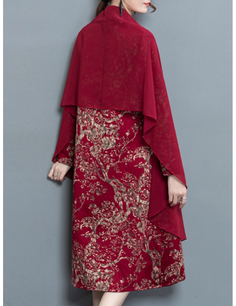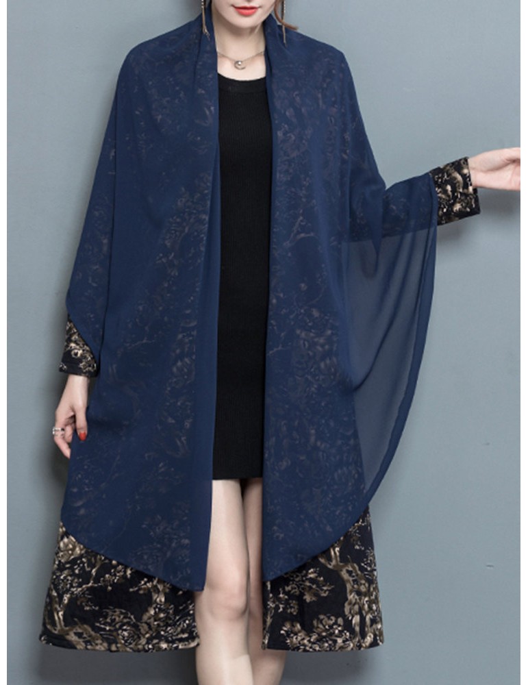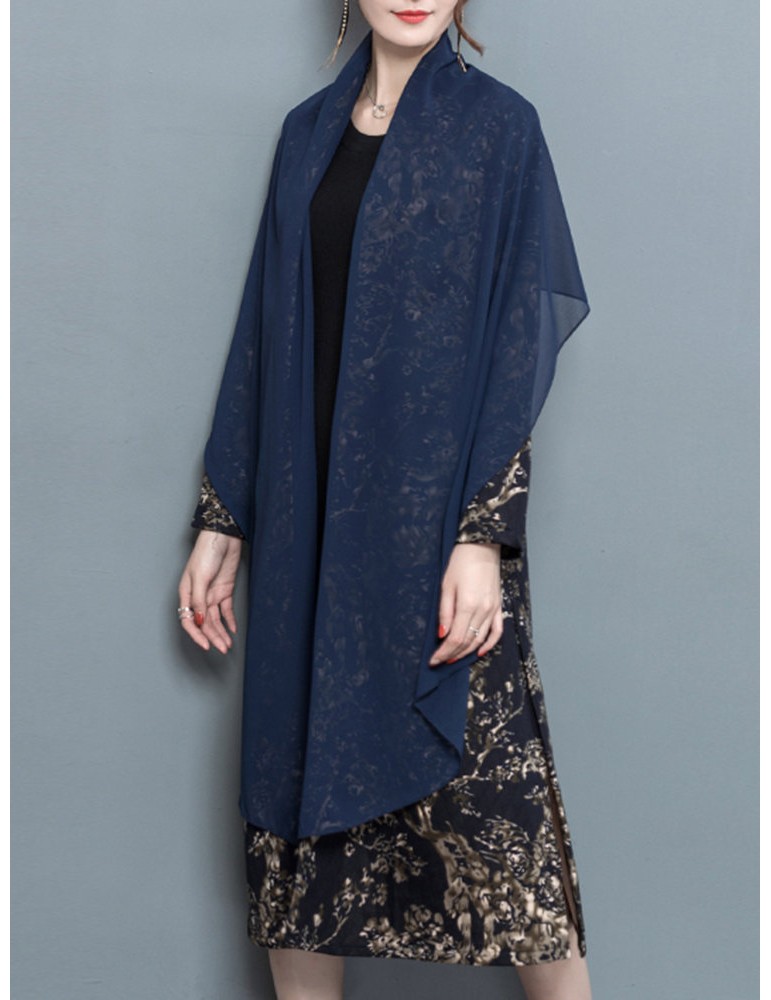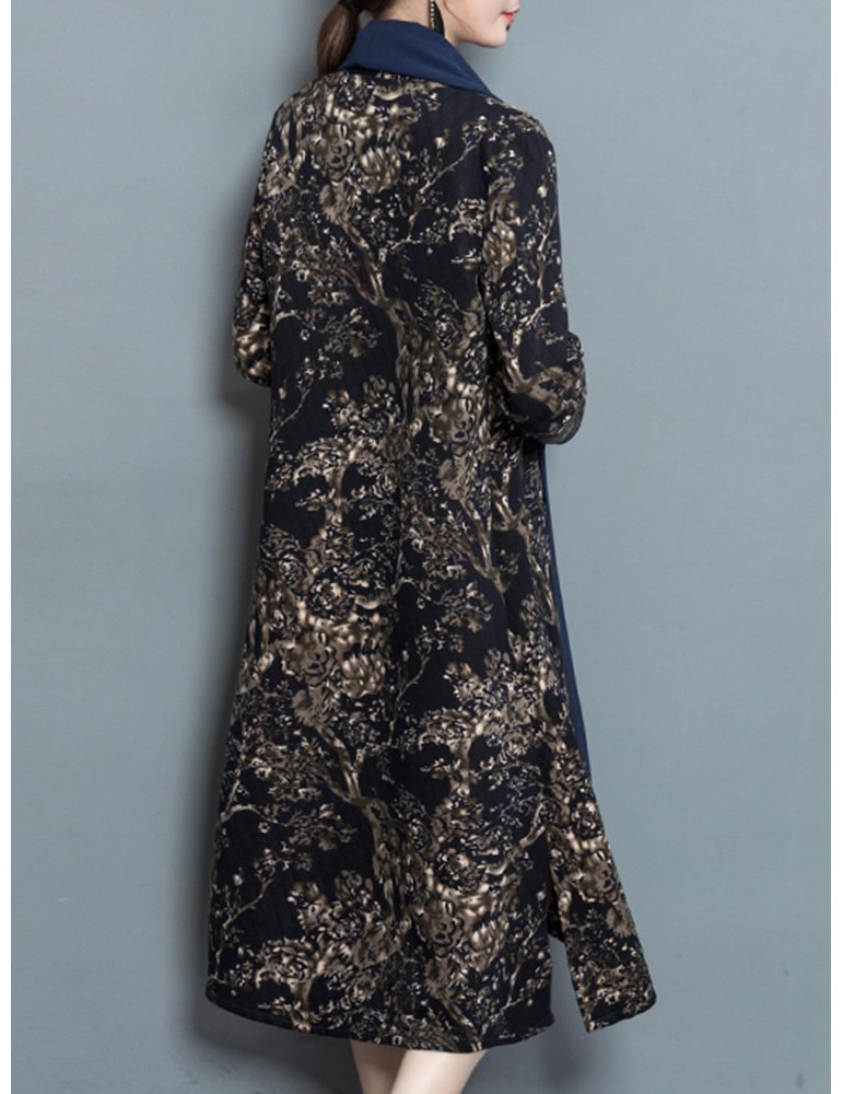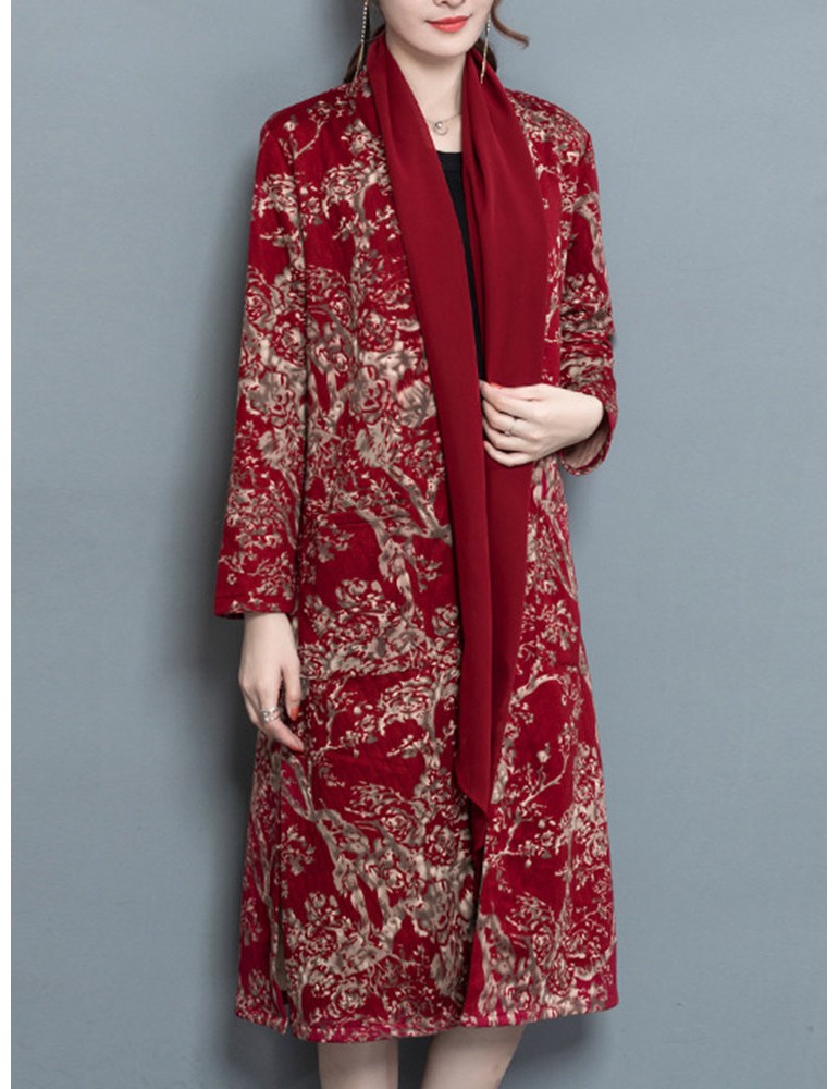 Elegant Print Fake Two Piece Side Split Thin Coat