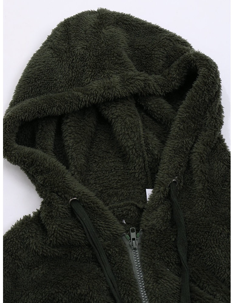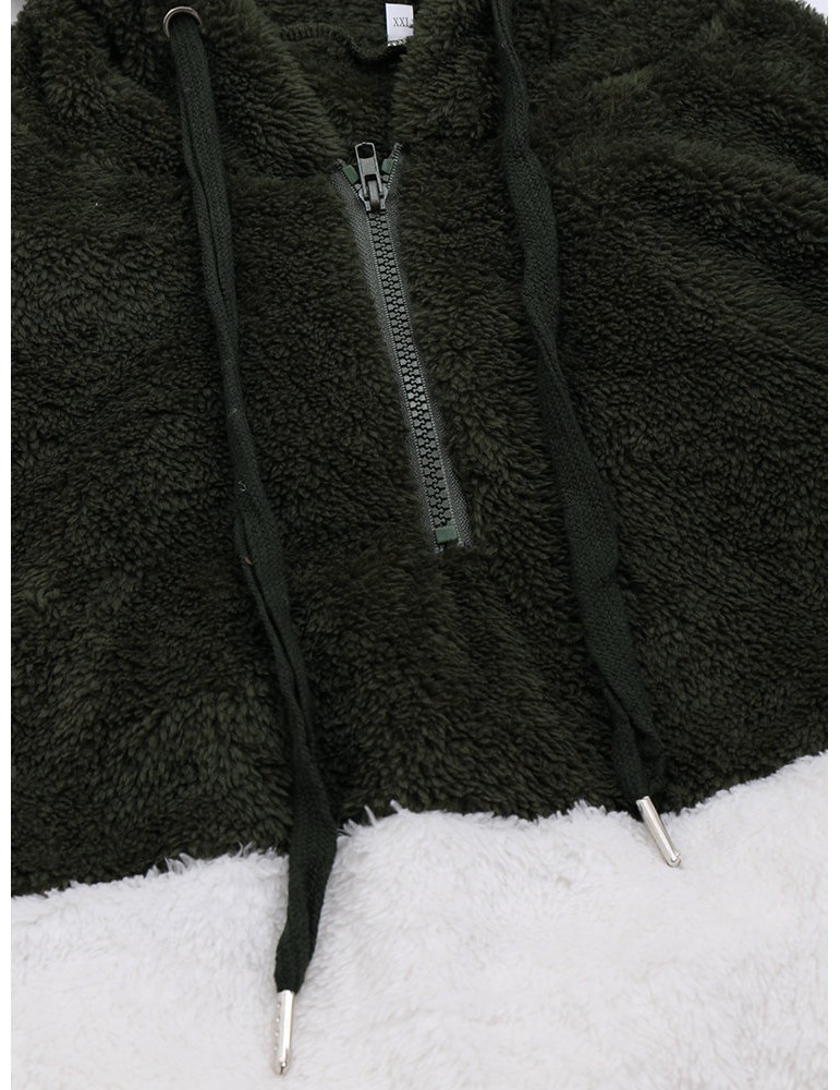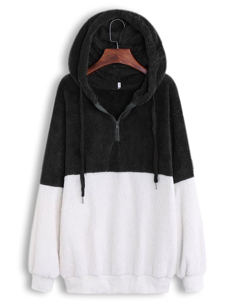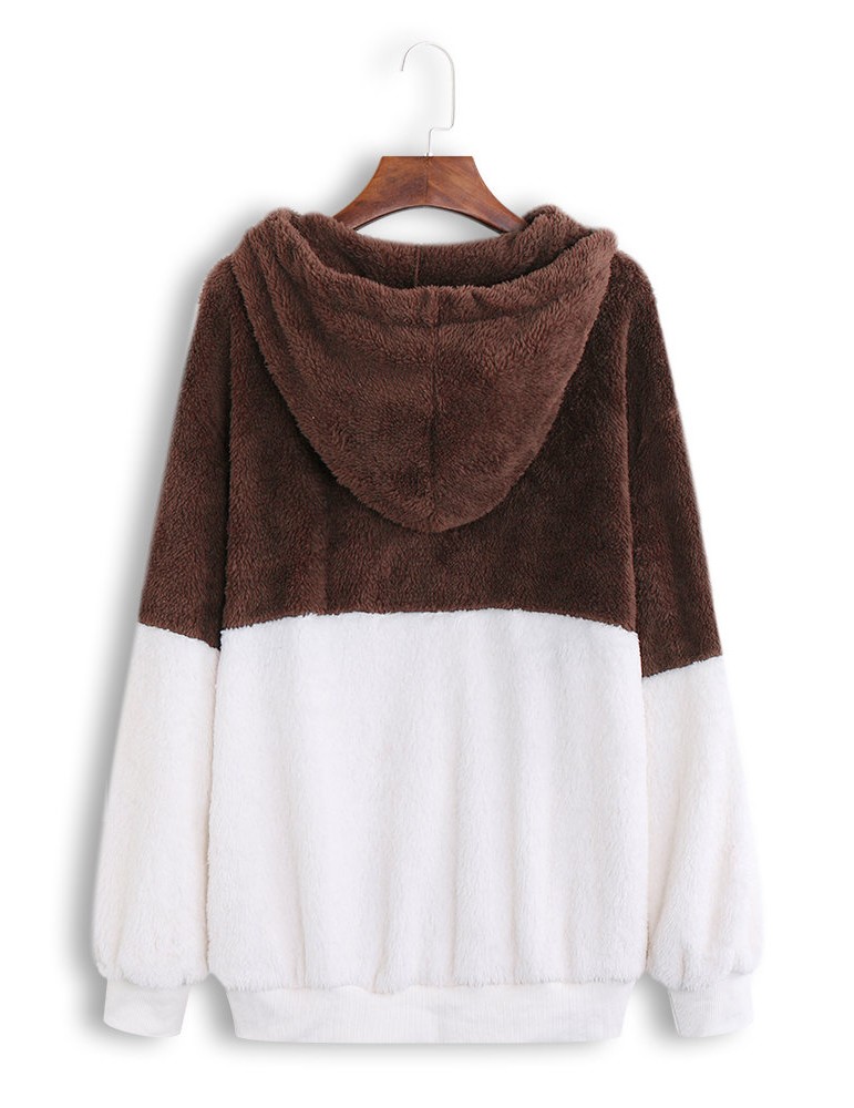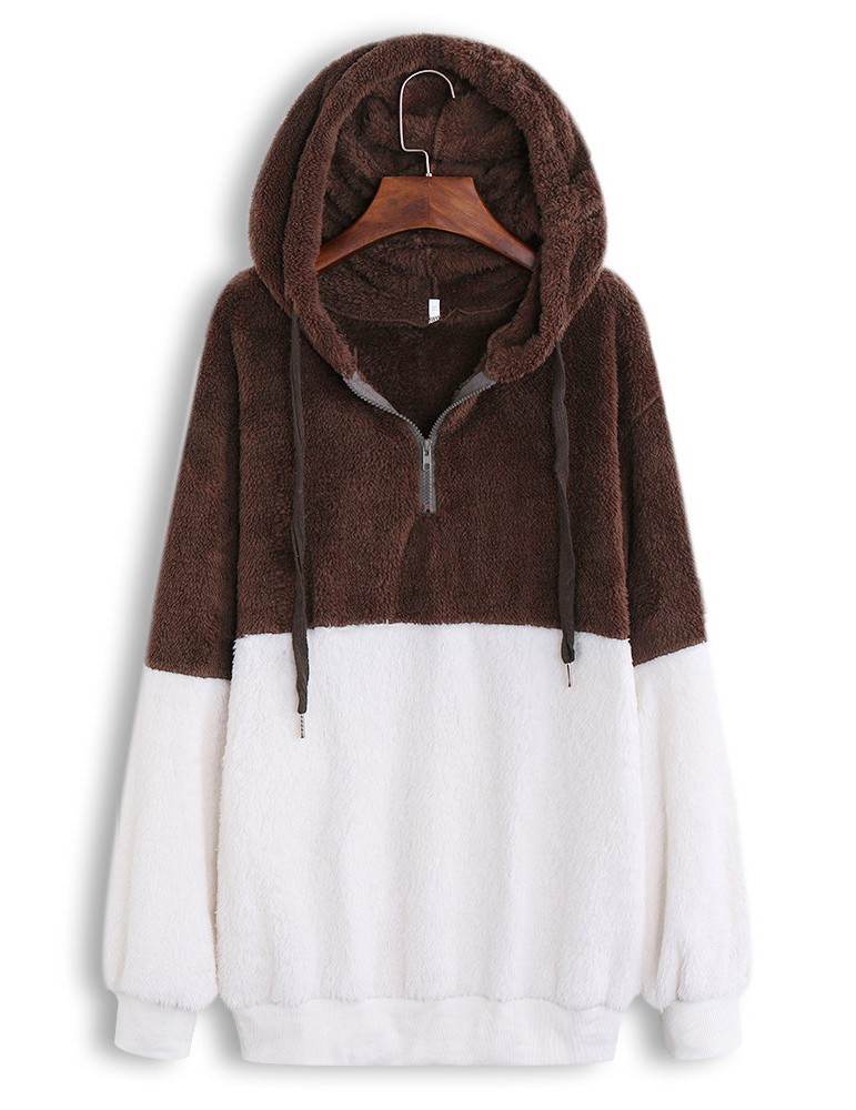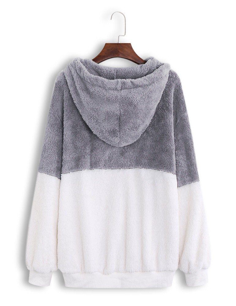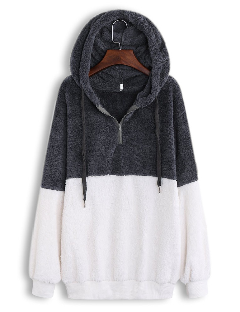 Fleece Patchwork Long Sleeve Casual Hoodie
