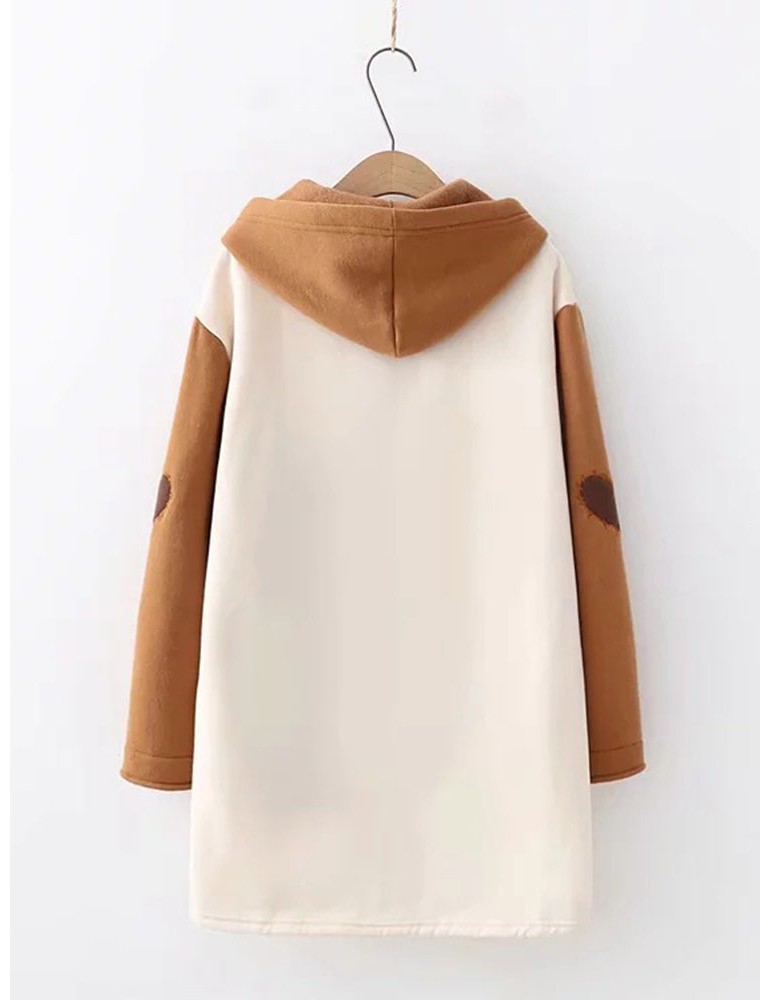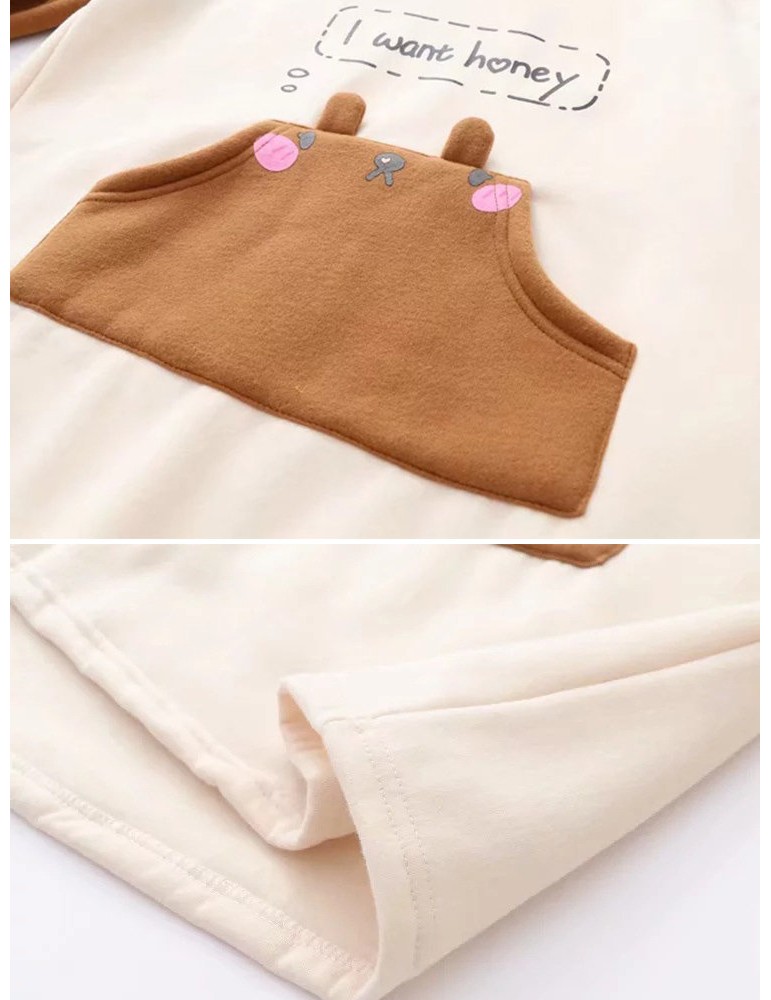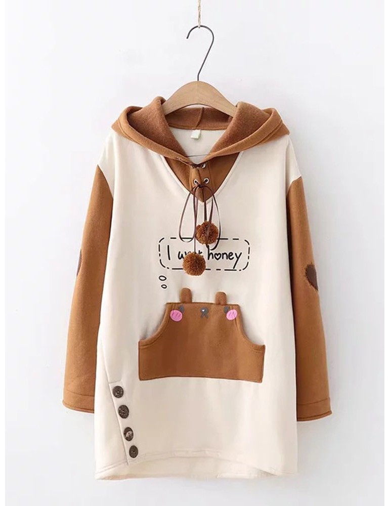 Cute Cartoon Print Drawstring Pocket Hoodie for Women