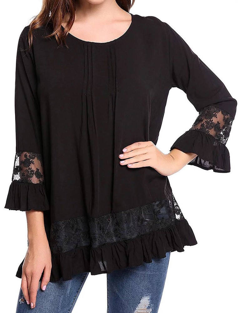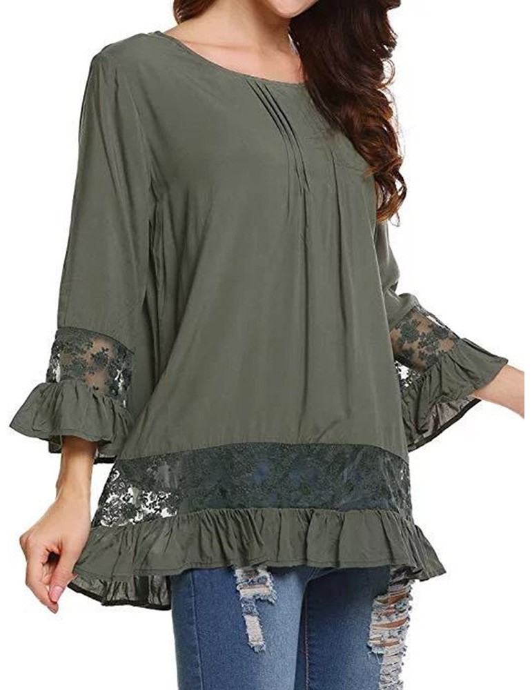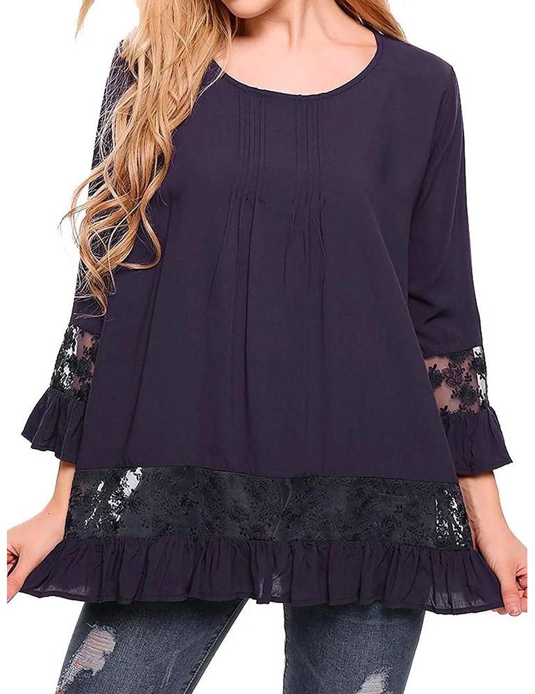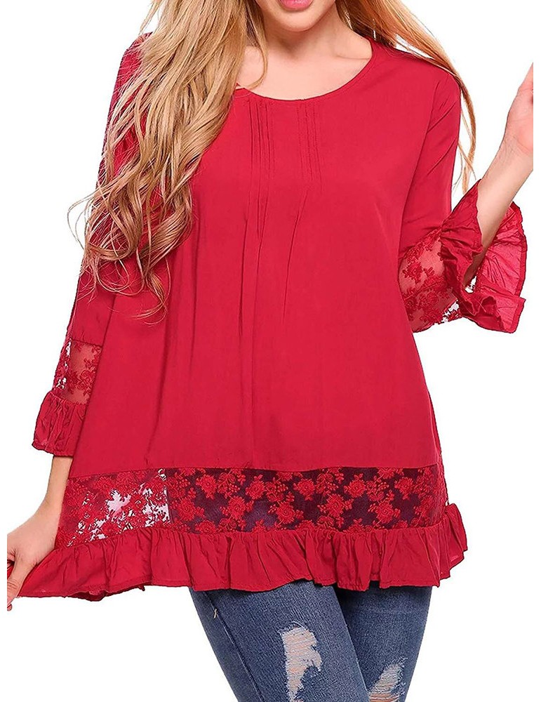 Lace Crochet Trumpet Sleeve Long Sleeve Plus Size Blouse