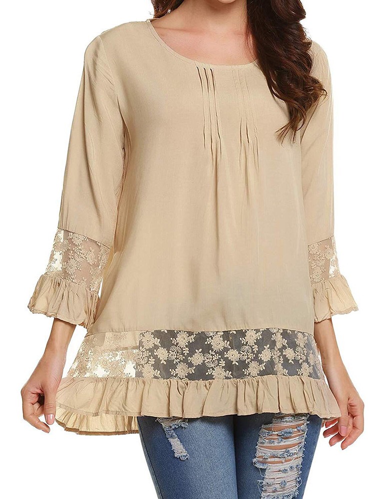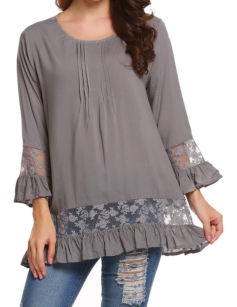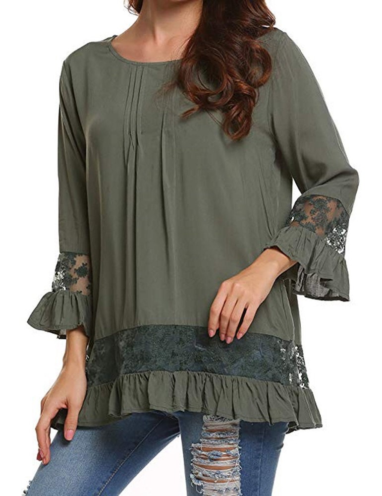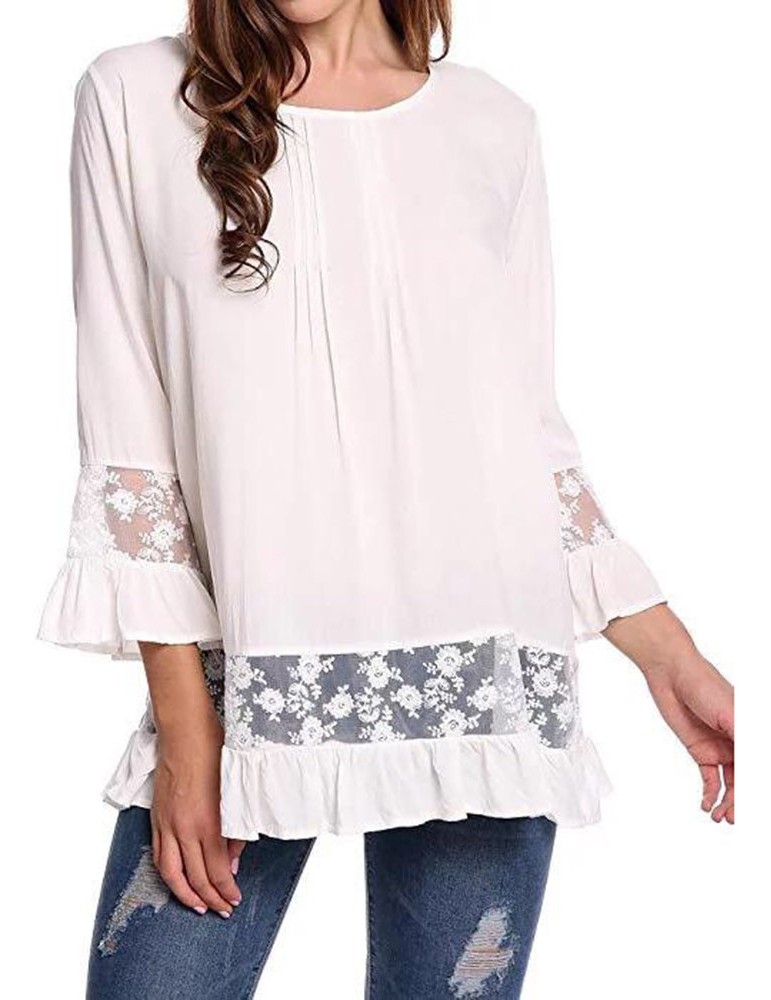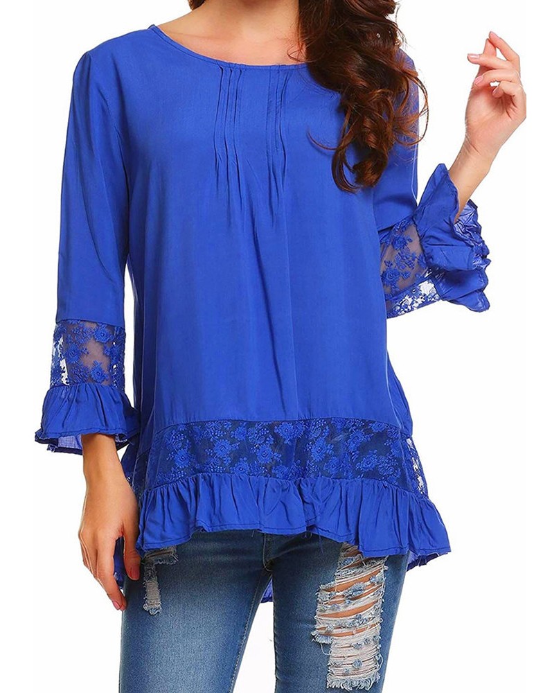 Lace Crochet Trumpet Sleeve Long Sleeve Plus Size Blouse