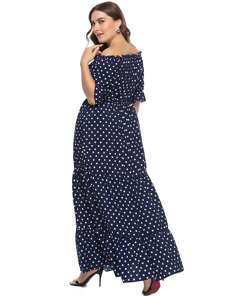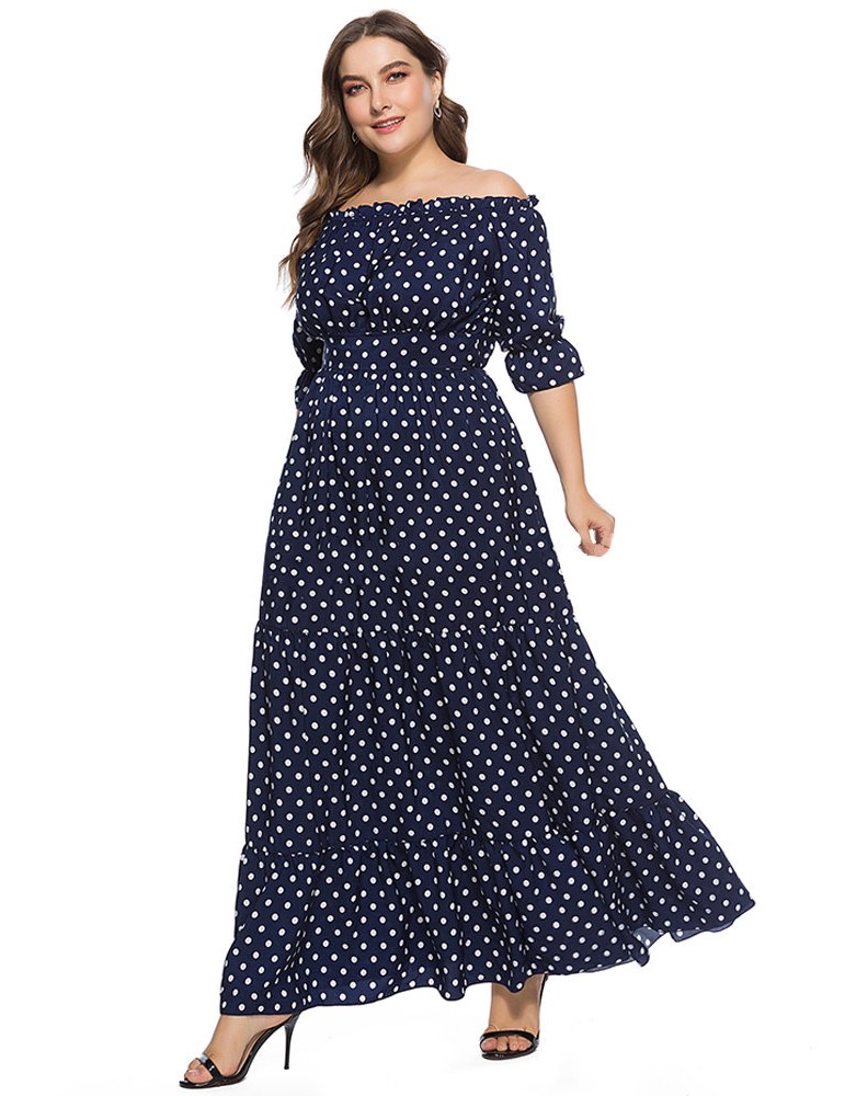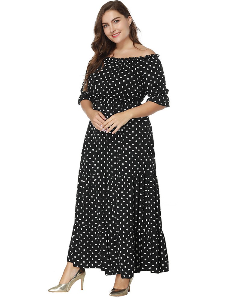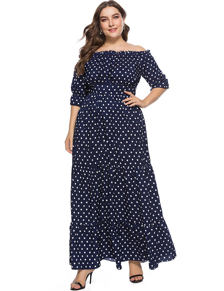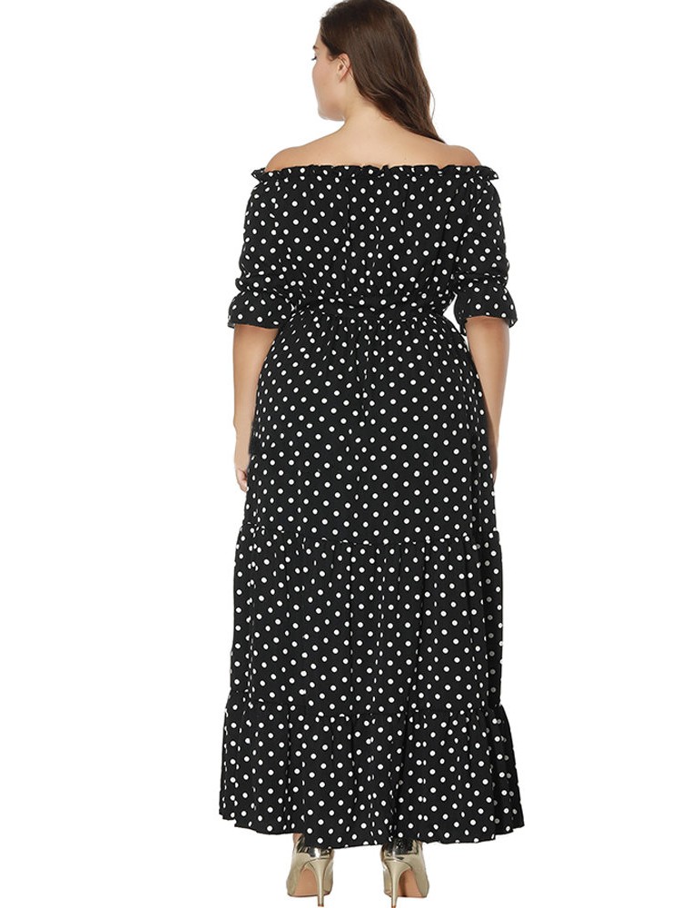 Print Off Shoulder Half Sleeve Maxi Dresses