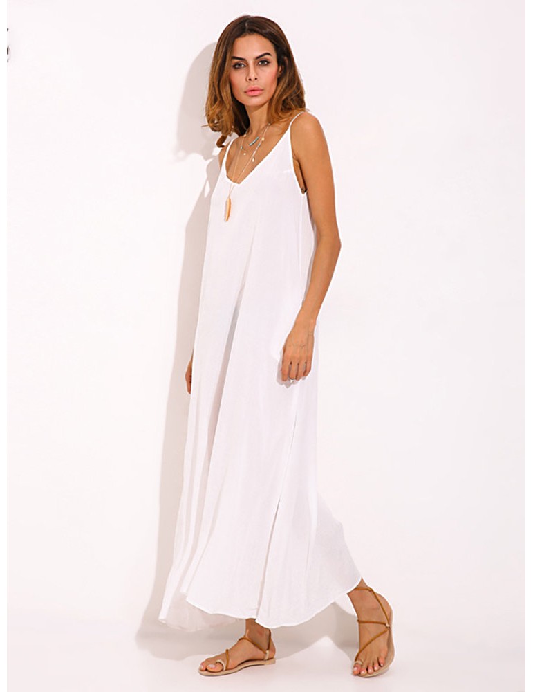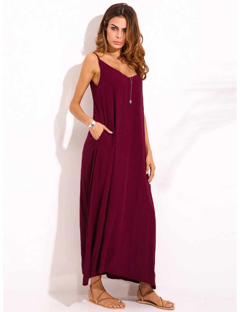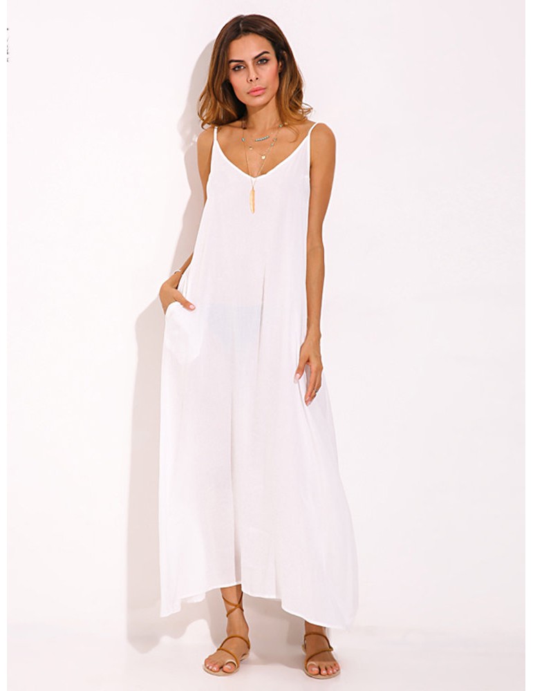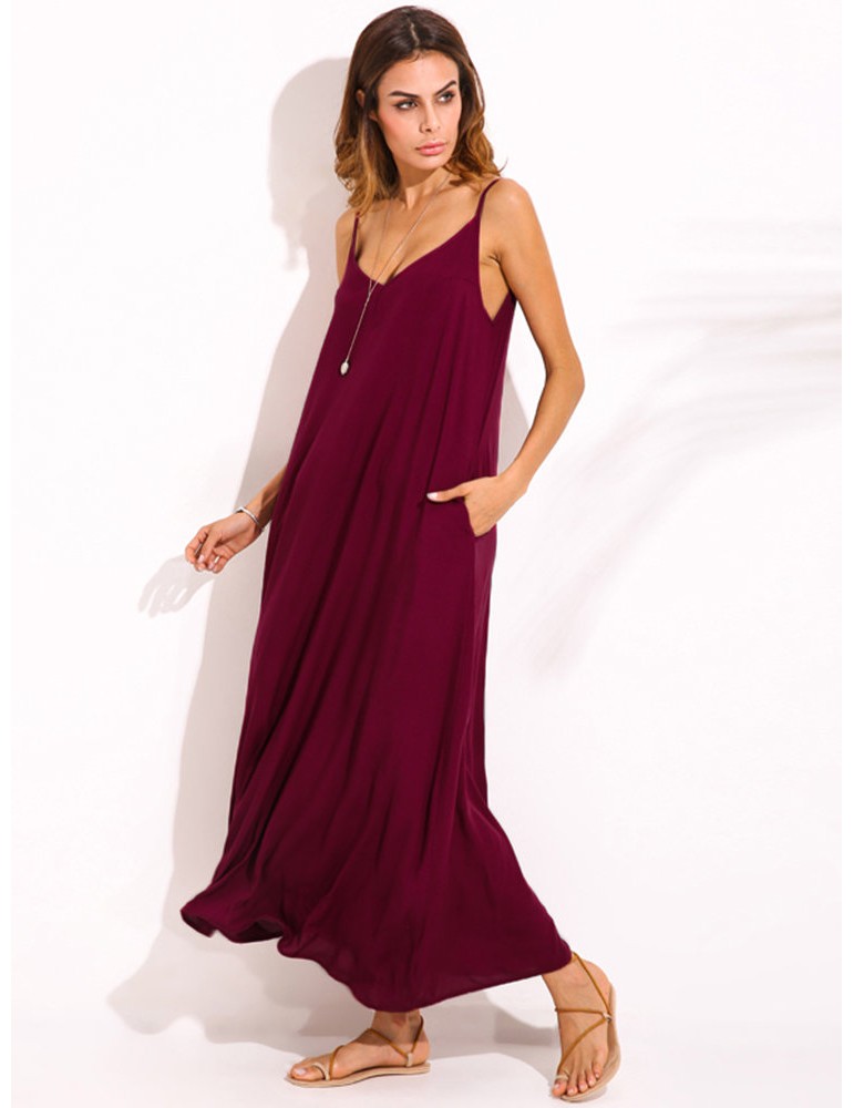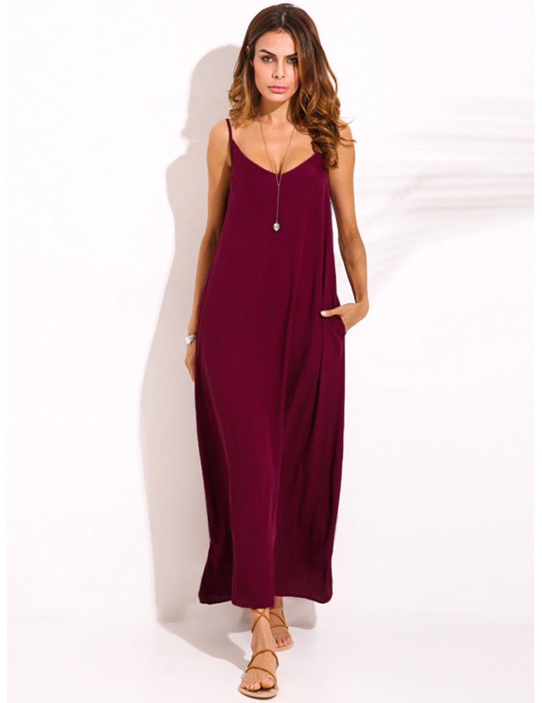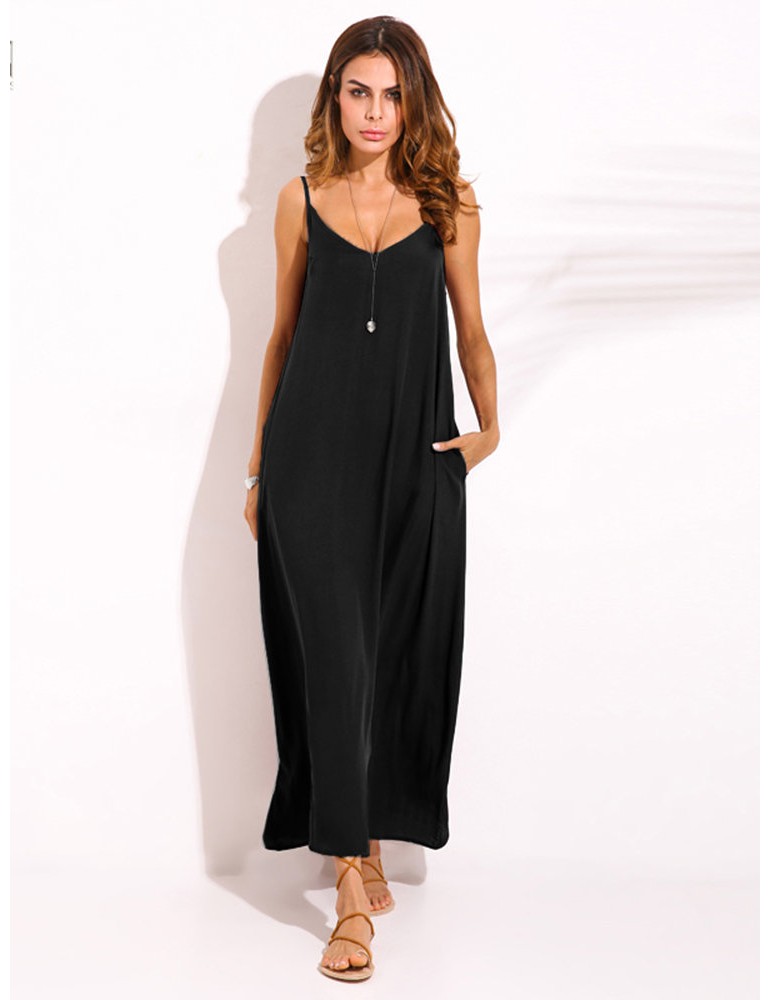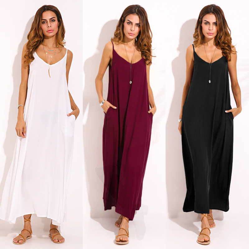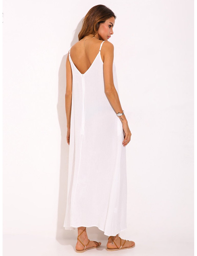 Sexy Women Bohemian Pure Color Backless V Neck Maxi Sundress