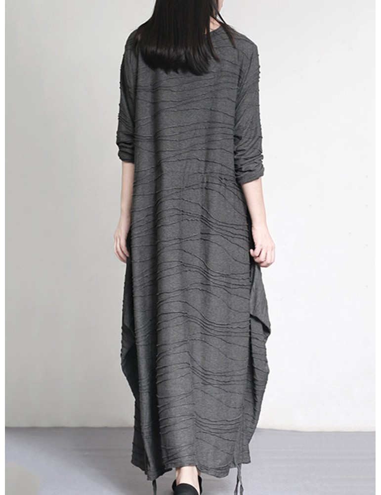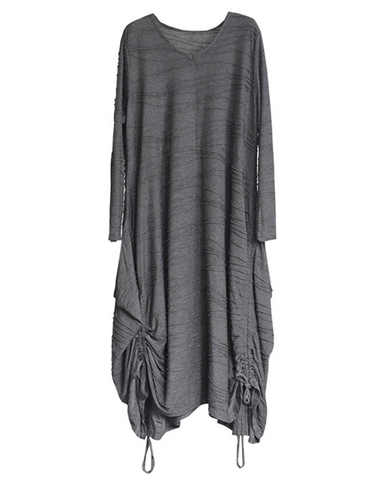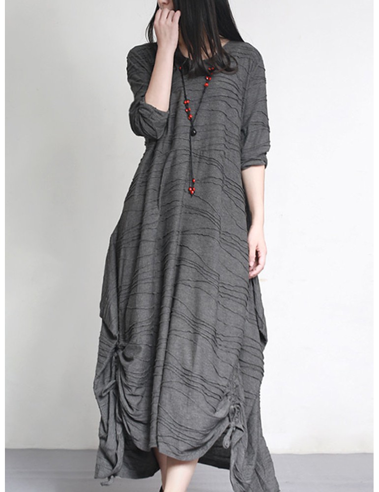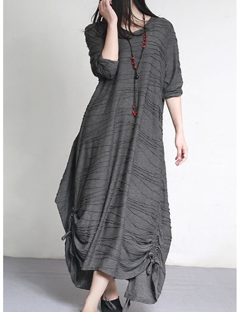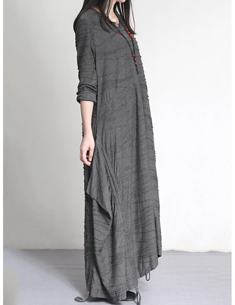 Solid Color Pleated Irregular Maxi Vintage Dress
