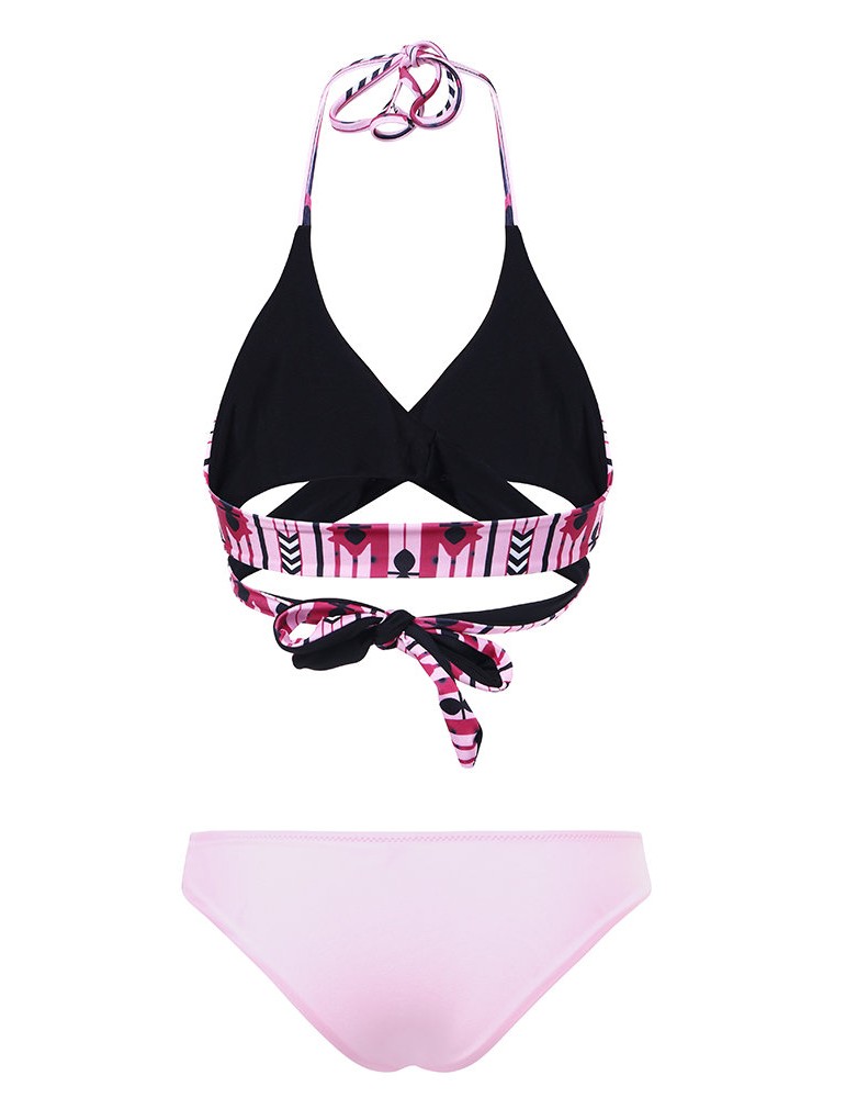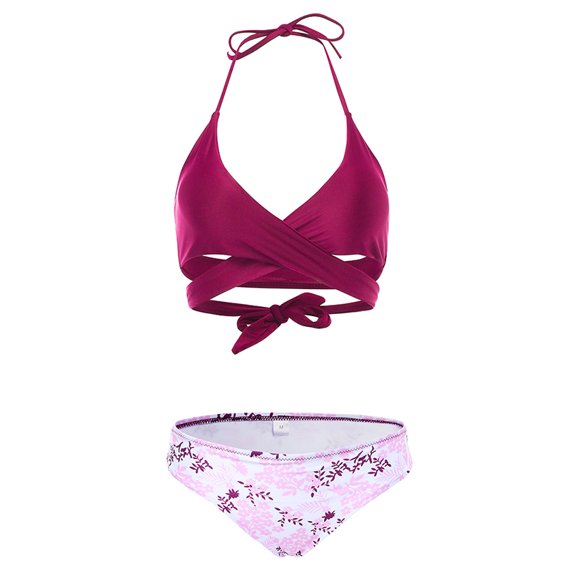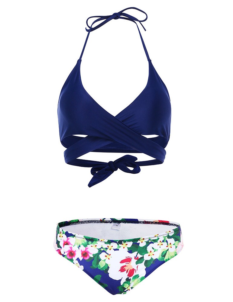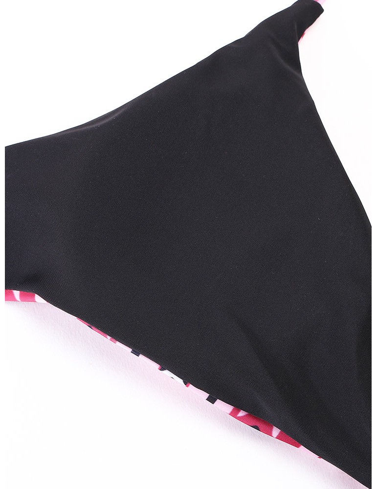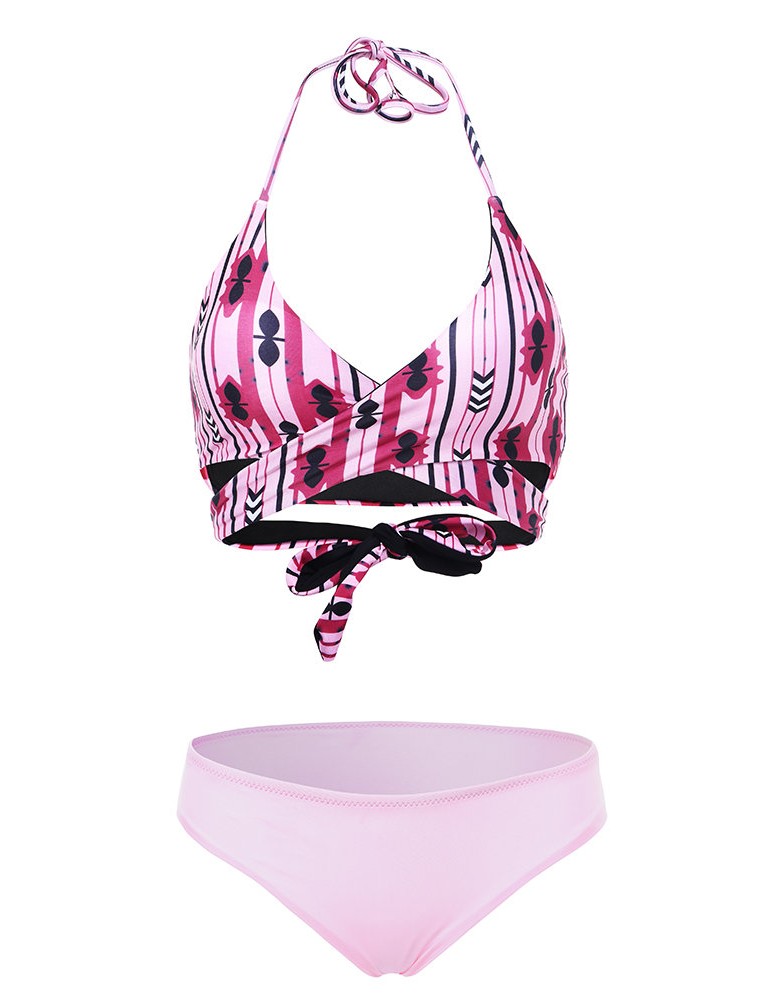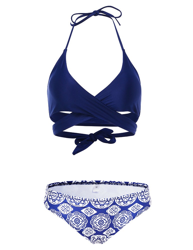 Sexy Strings Halter Criss-cross Bust 3D Printed Bikini Set Swimwear