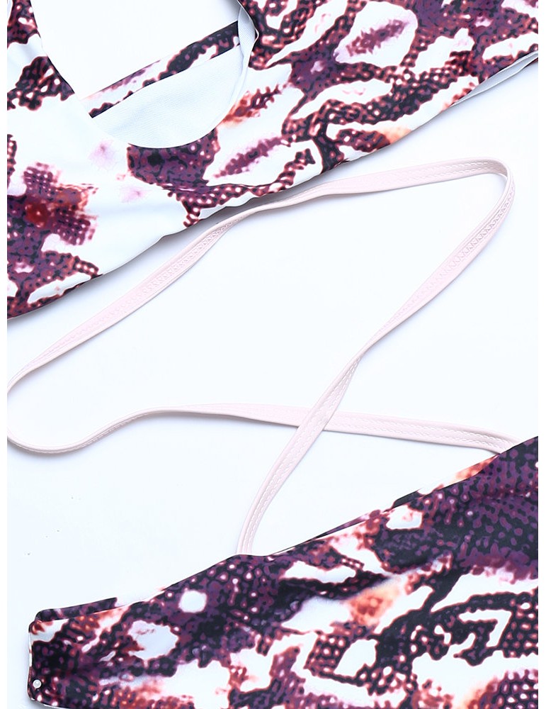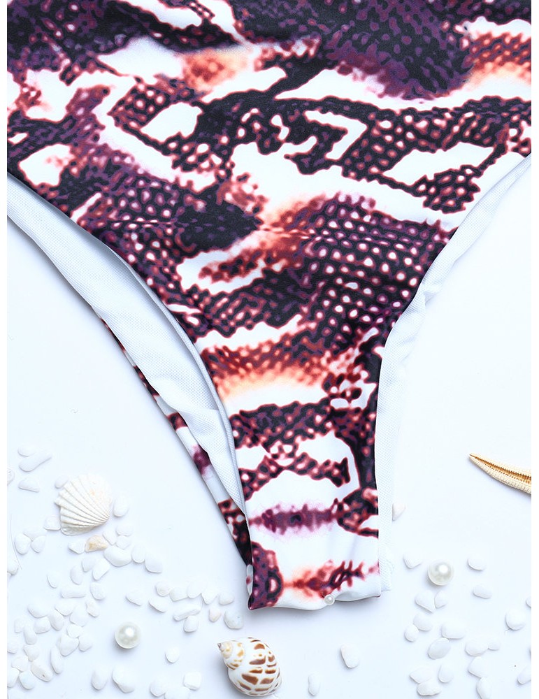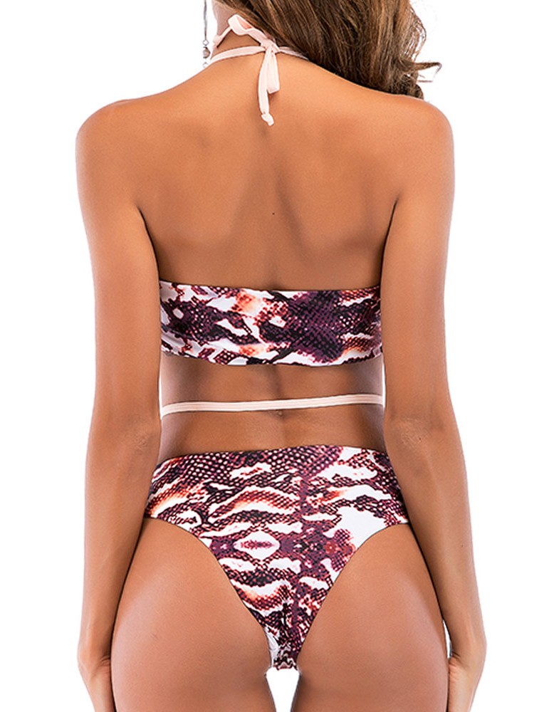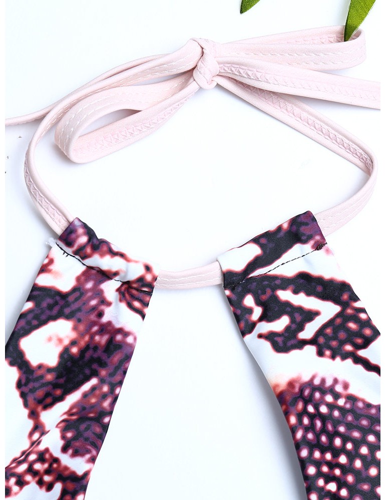 Sexy Halter Hollow Out Front Criss-Cross Snake Pattern Tankini Bathing Suit