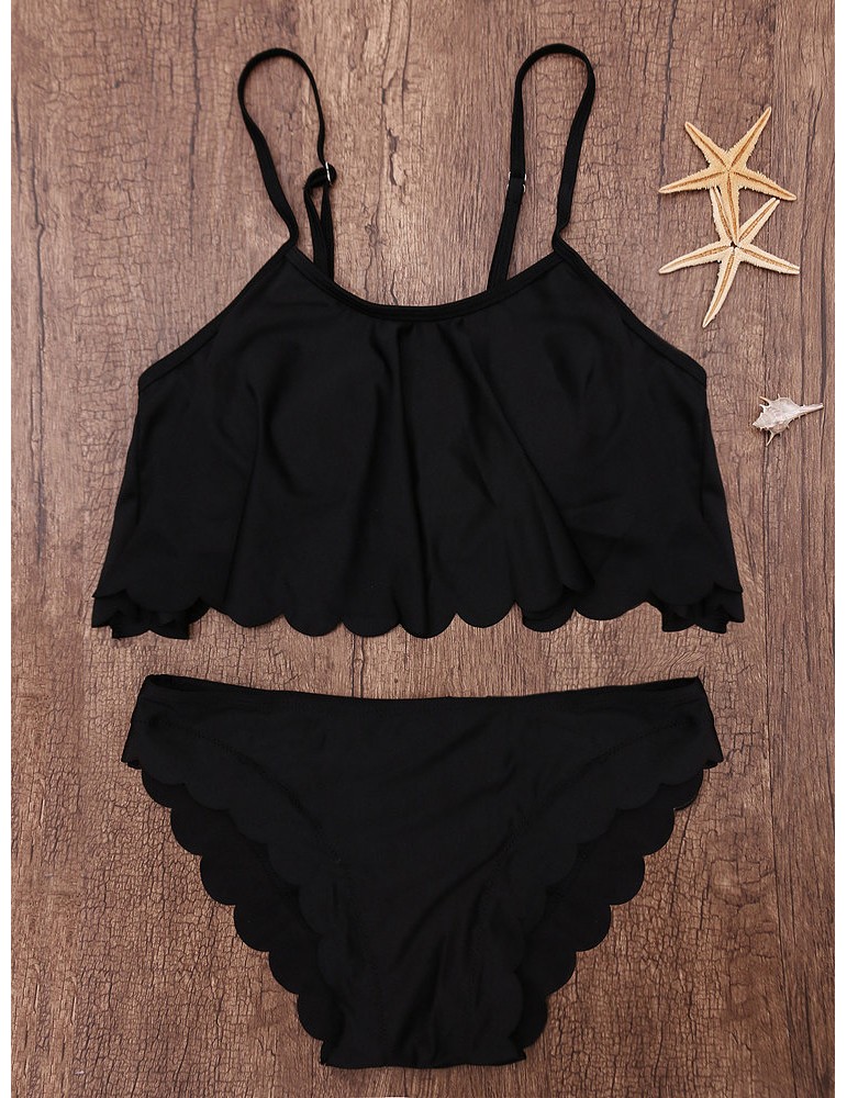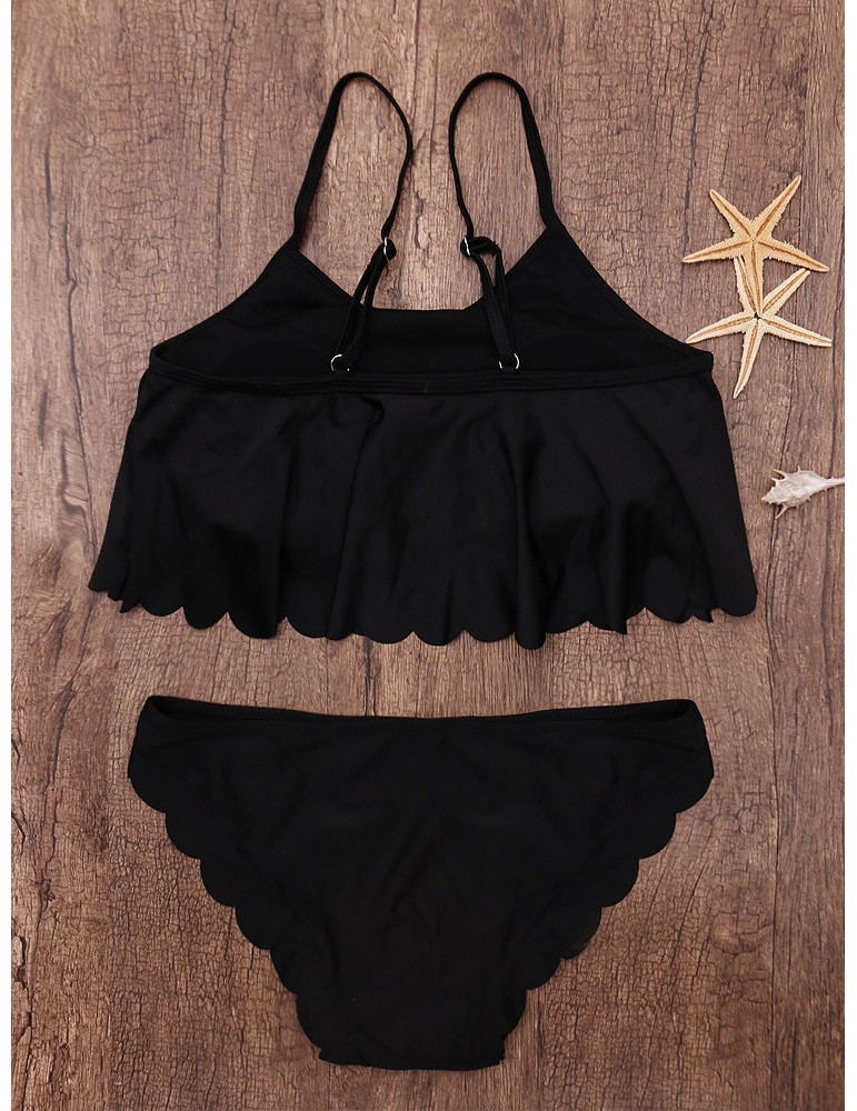 Sexy Solid Color Lotus Leaf Bikini Sets Bathing Suit Swimsuit Swimwear For Women