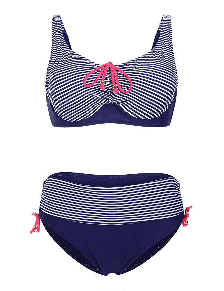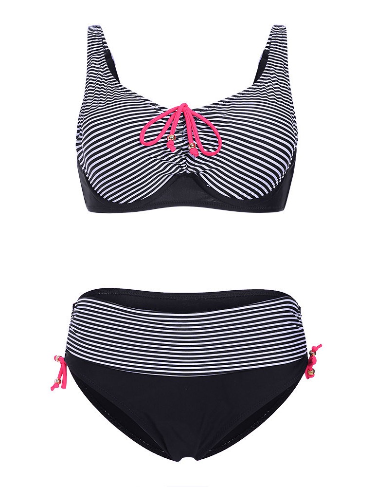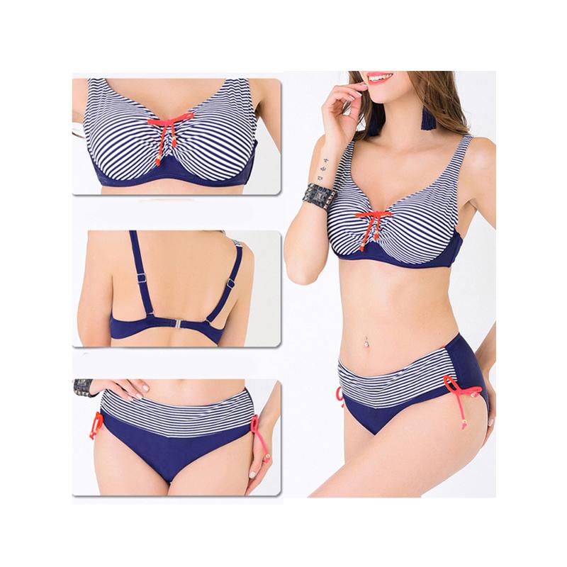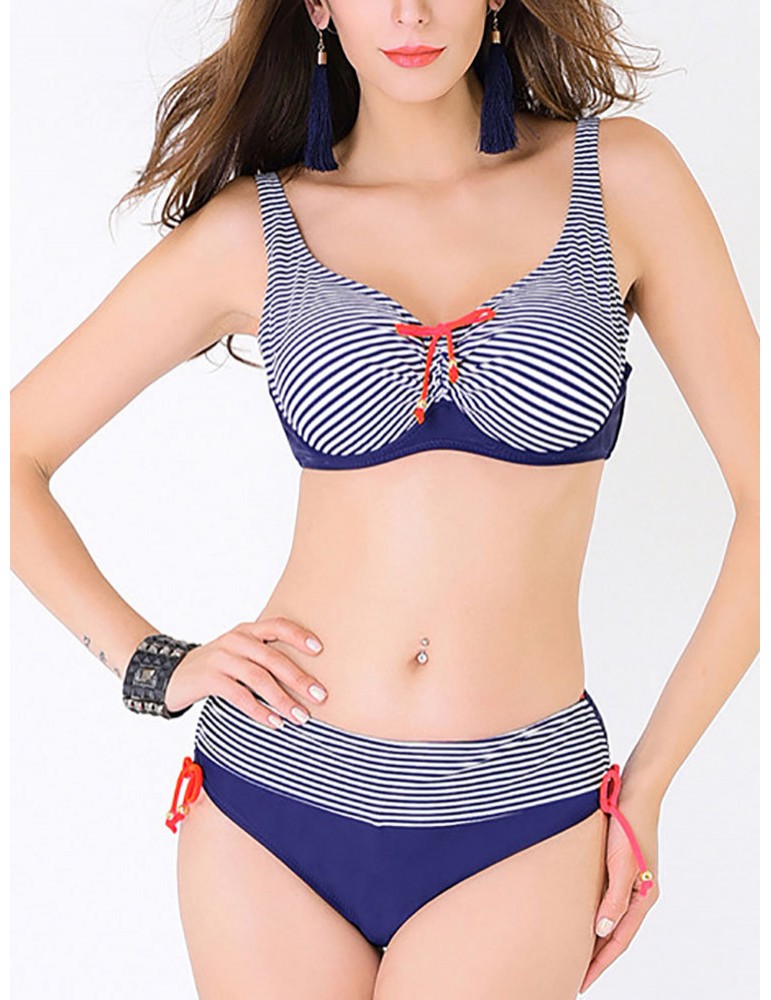 Plus Size Sexy Striped Bowknot Agraffe Elastic Underwire Bra Bikini Sets
