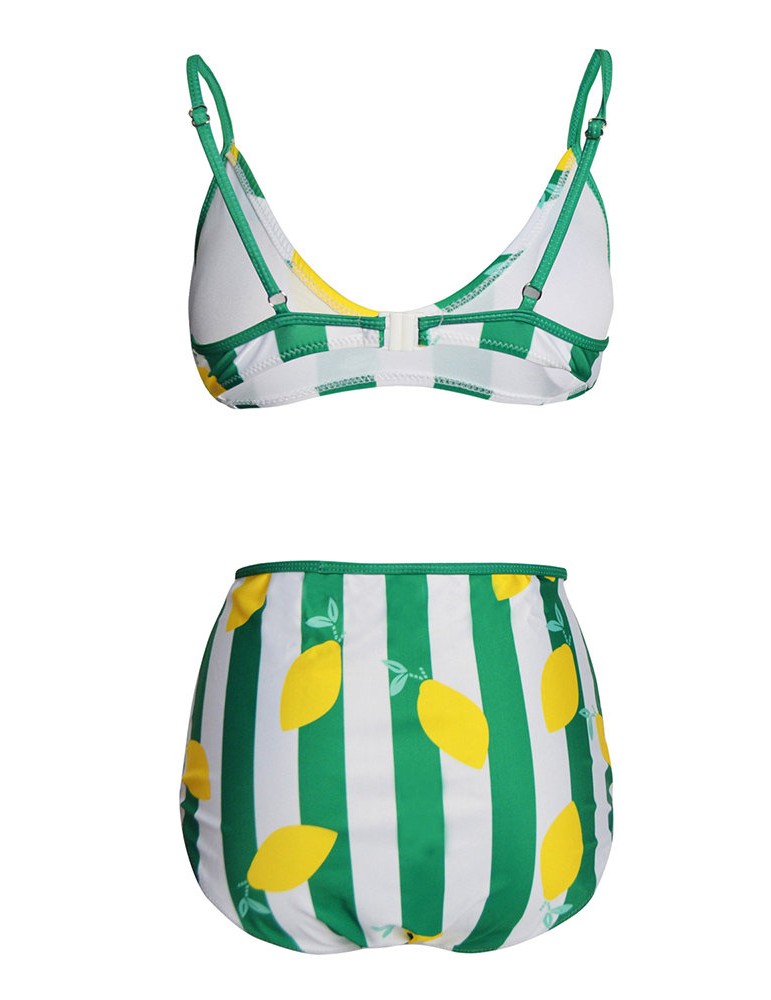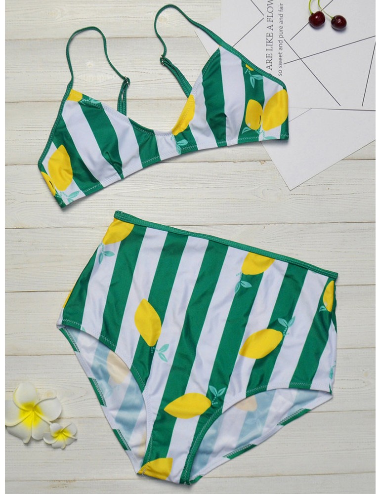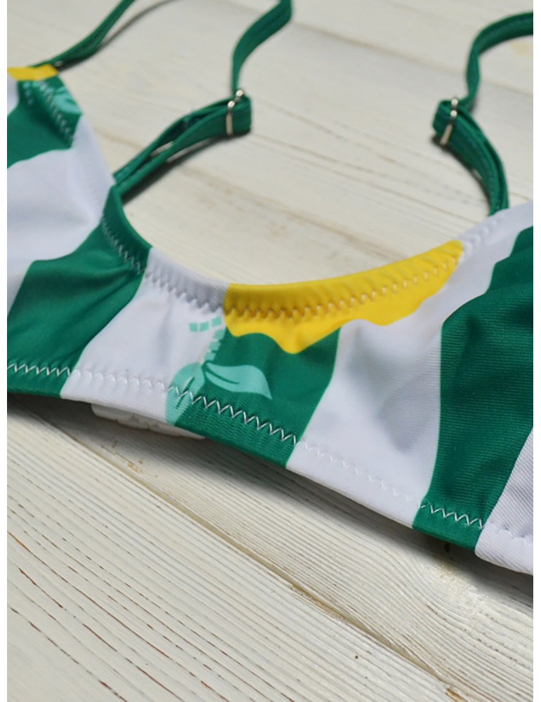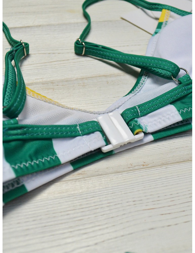 Printed Lemon Green Striped Sexy Bikini Swimwear For Women