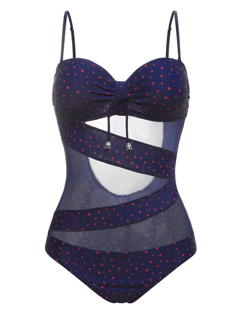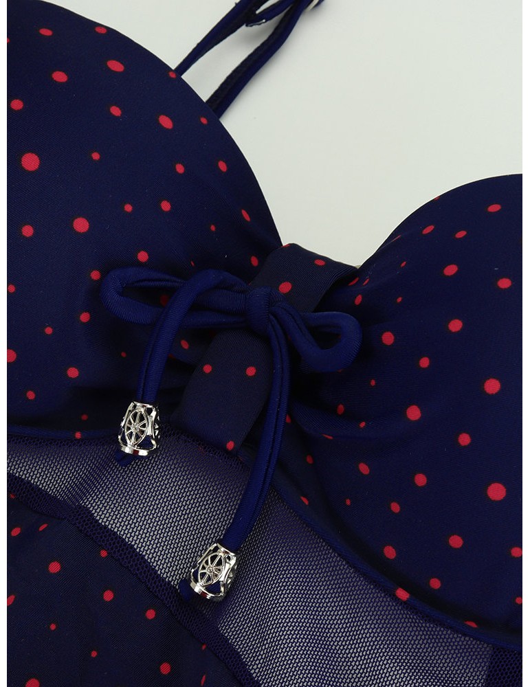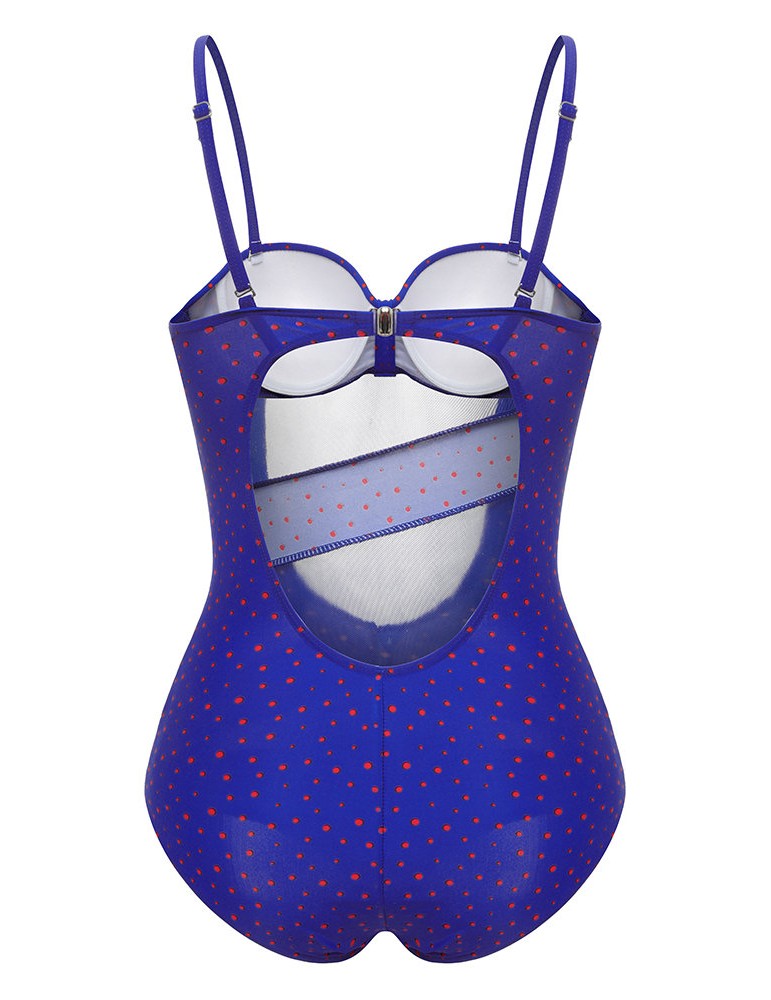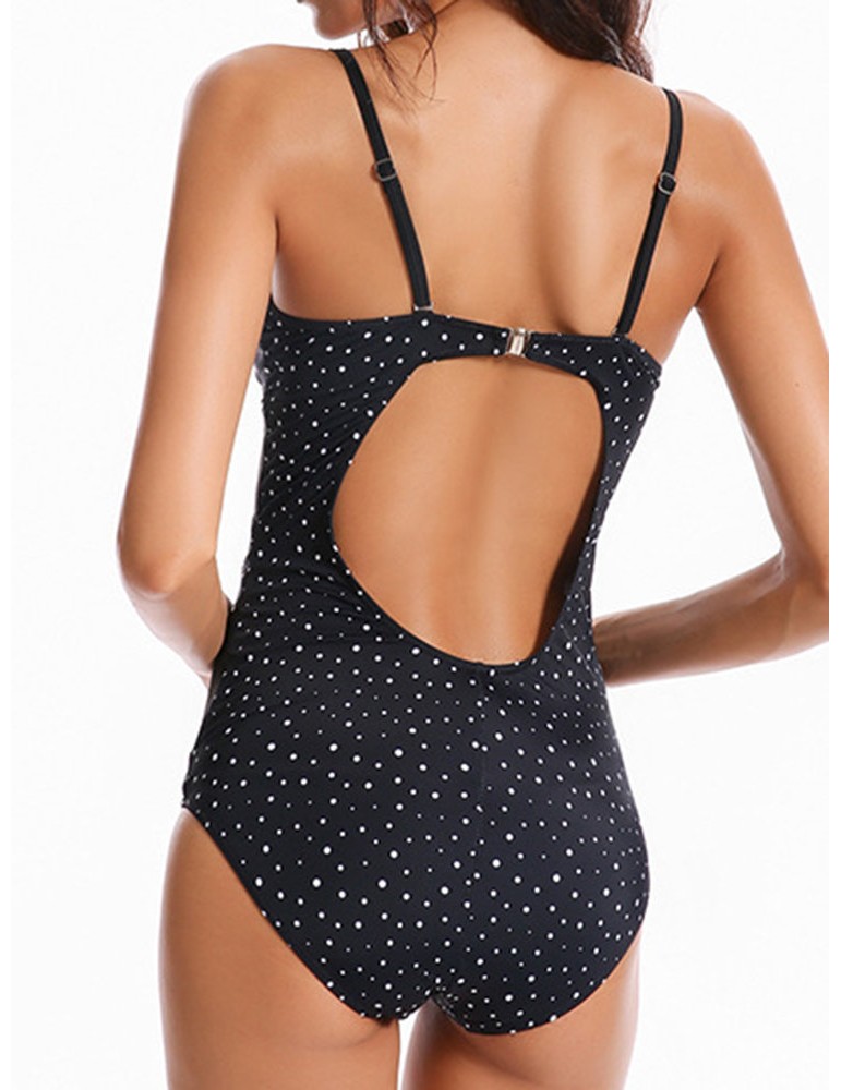 Plus Size Sexy Push Up Tight Polka Dot Backless Monikini Swimwear For Women