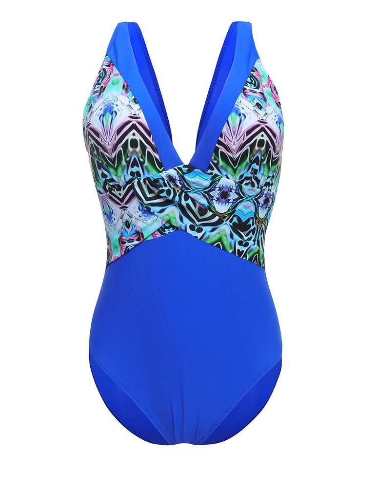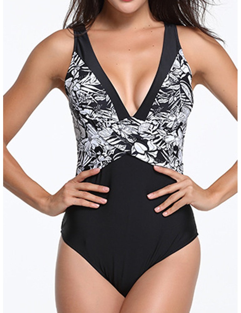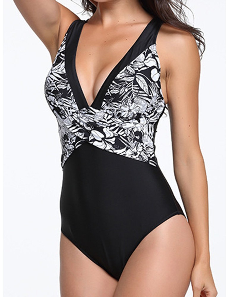 Plus Size Sexy Deep V Printed Waist Slimming One Piece Swimwear