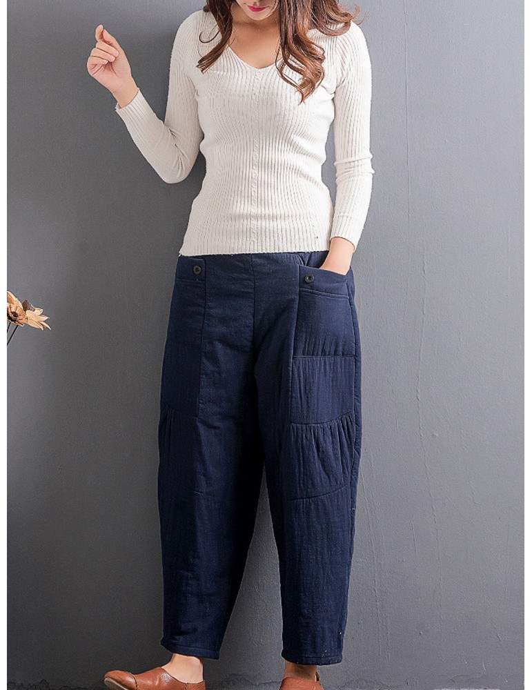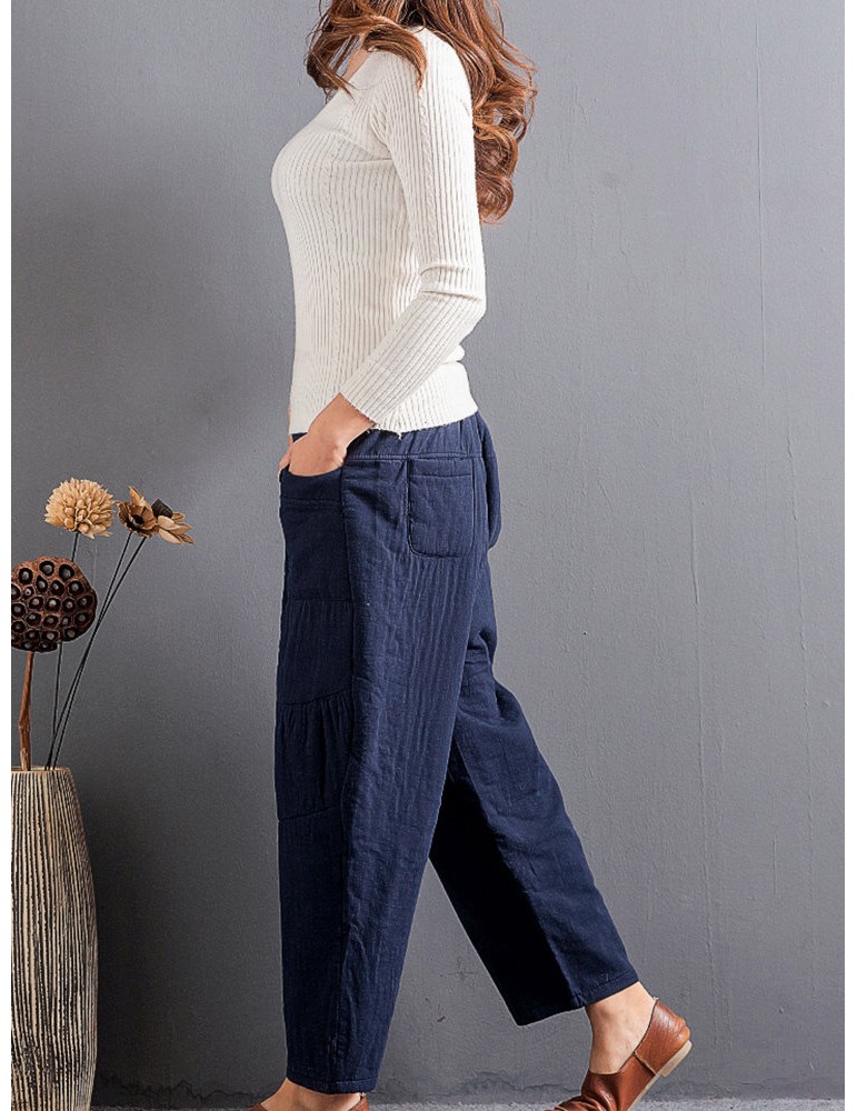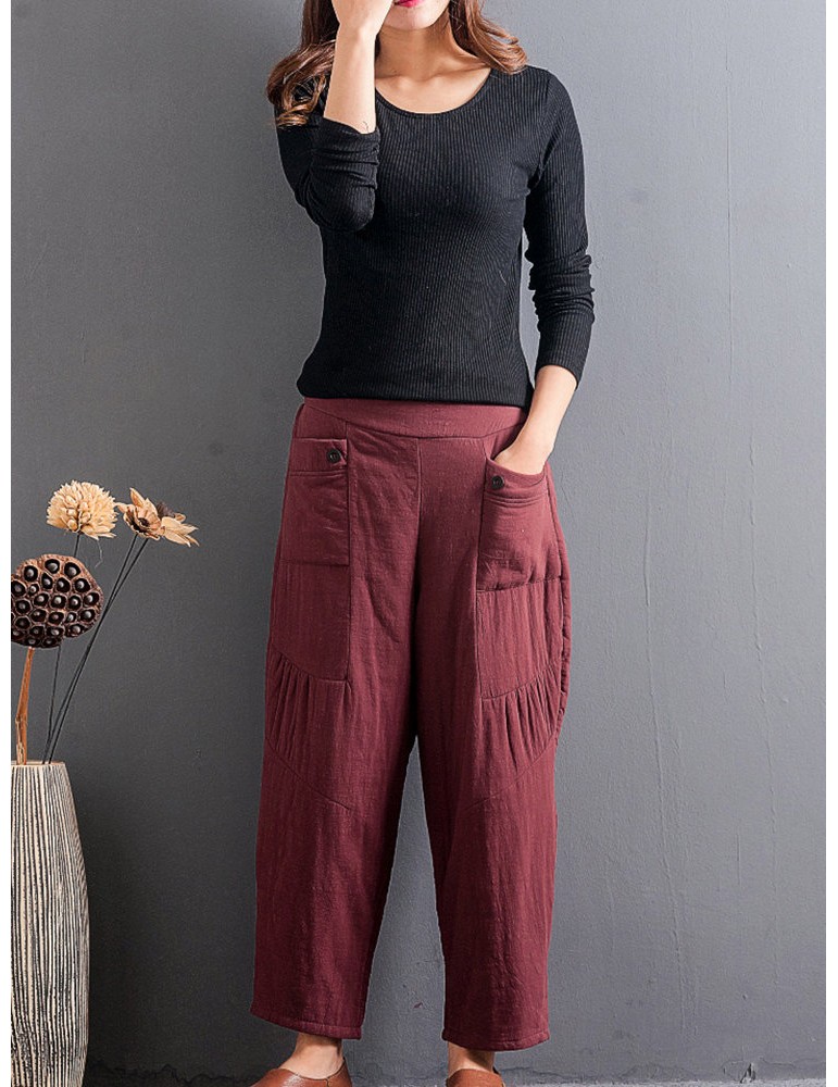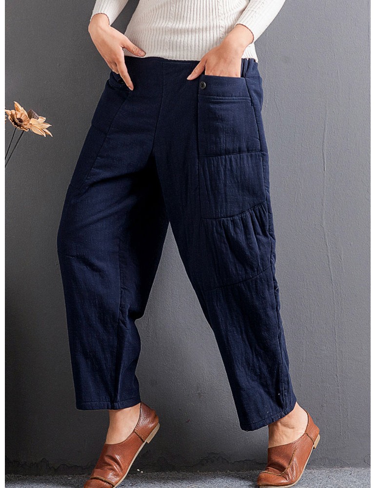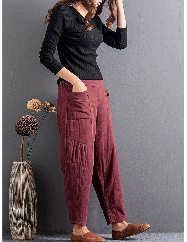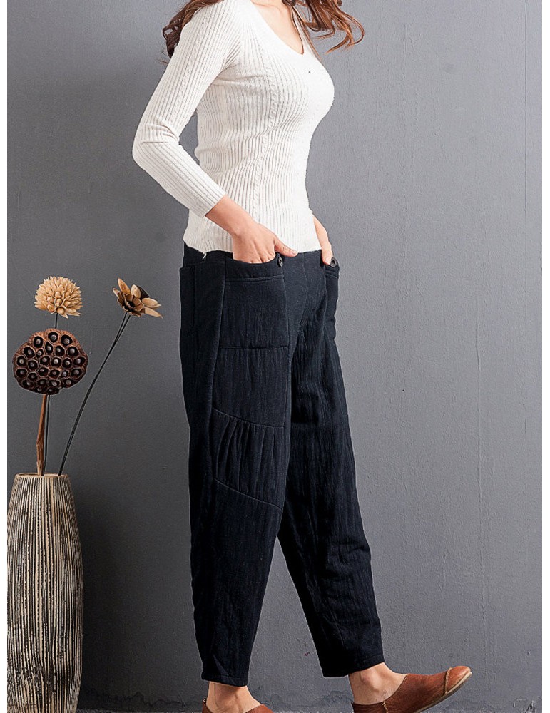 Casual Solid Color Patchwork Elastic Waist Women Harem Pants