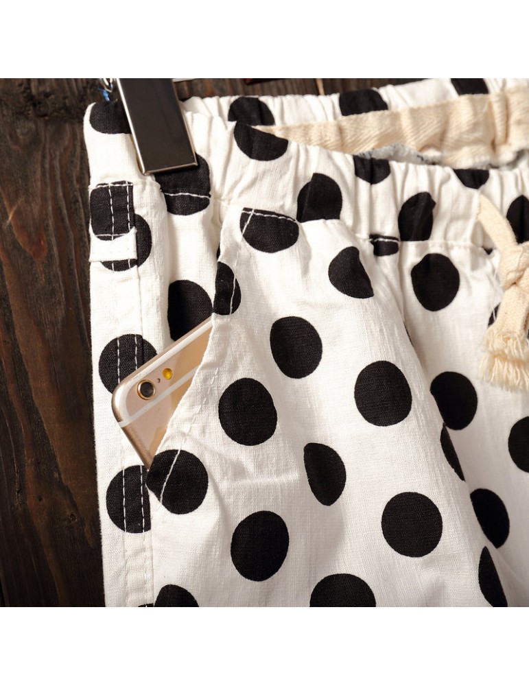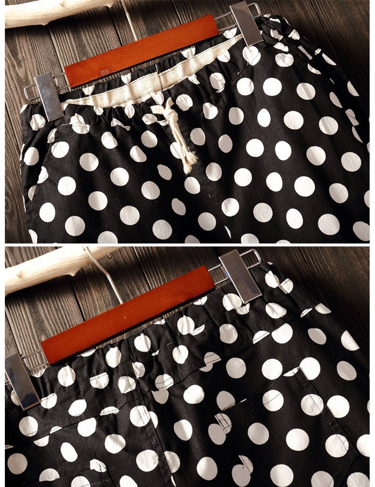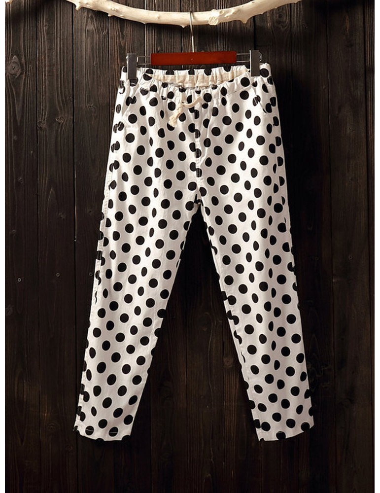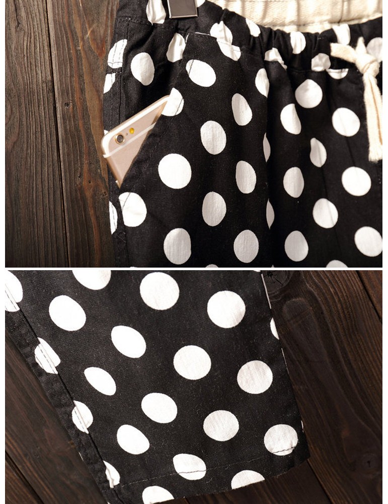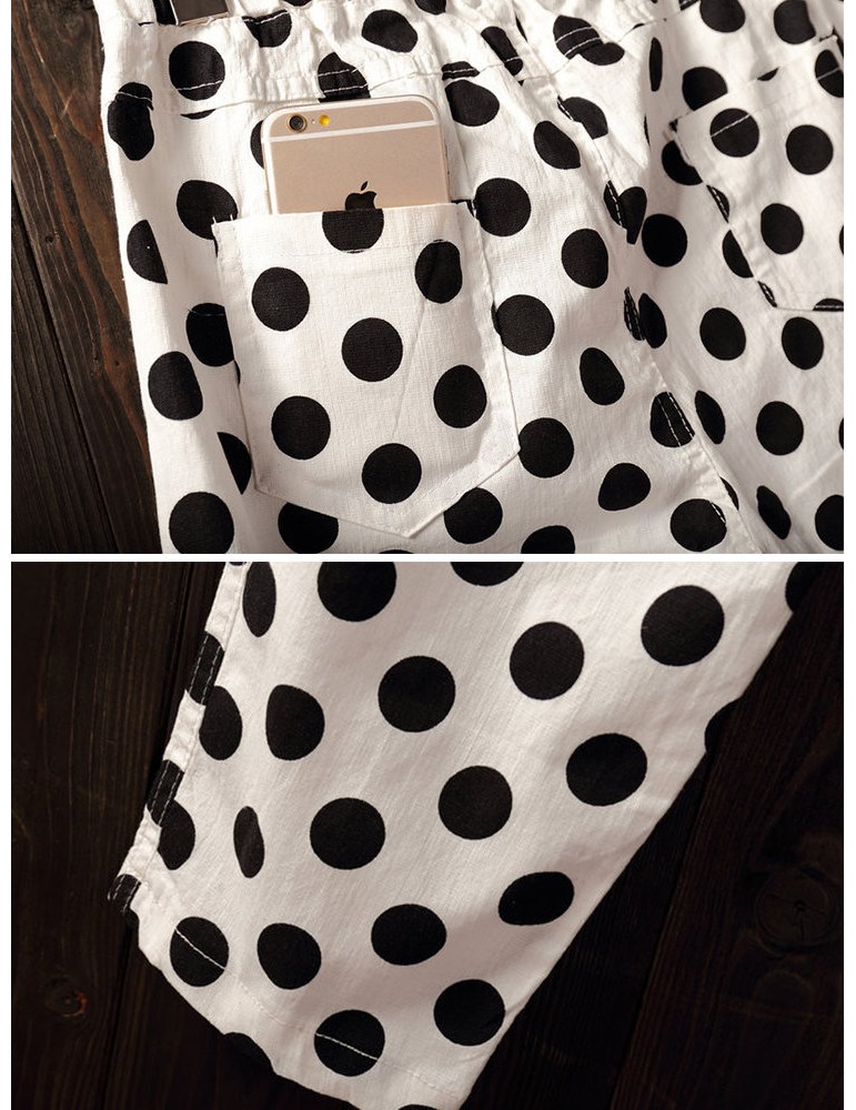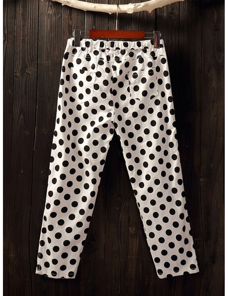 Polka Dots Loose Elastic Waist Cropped Pants