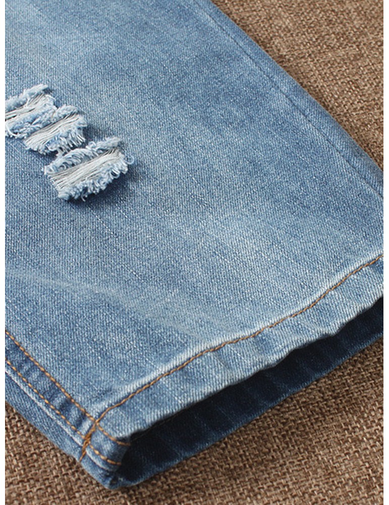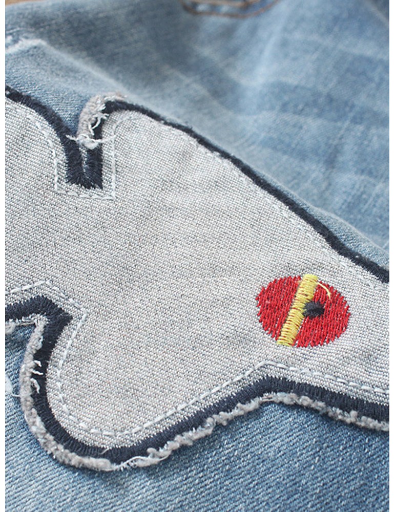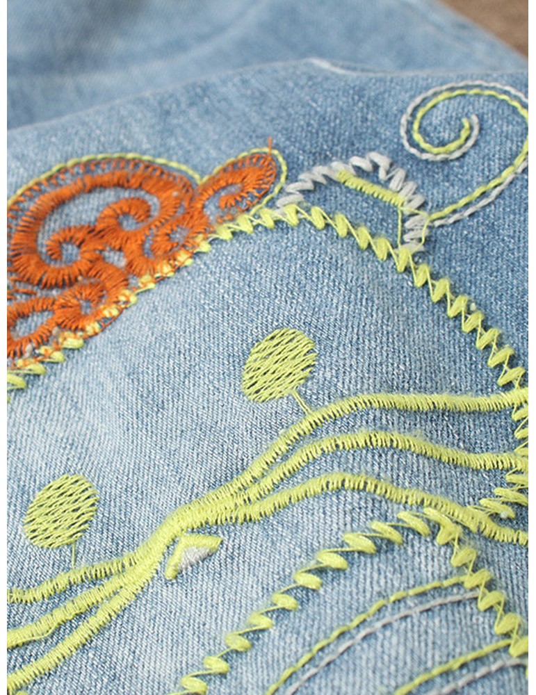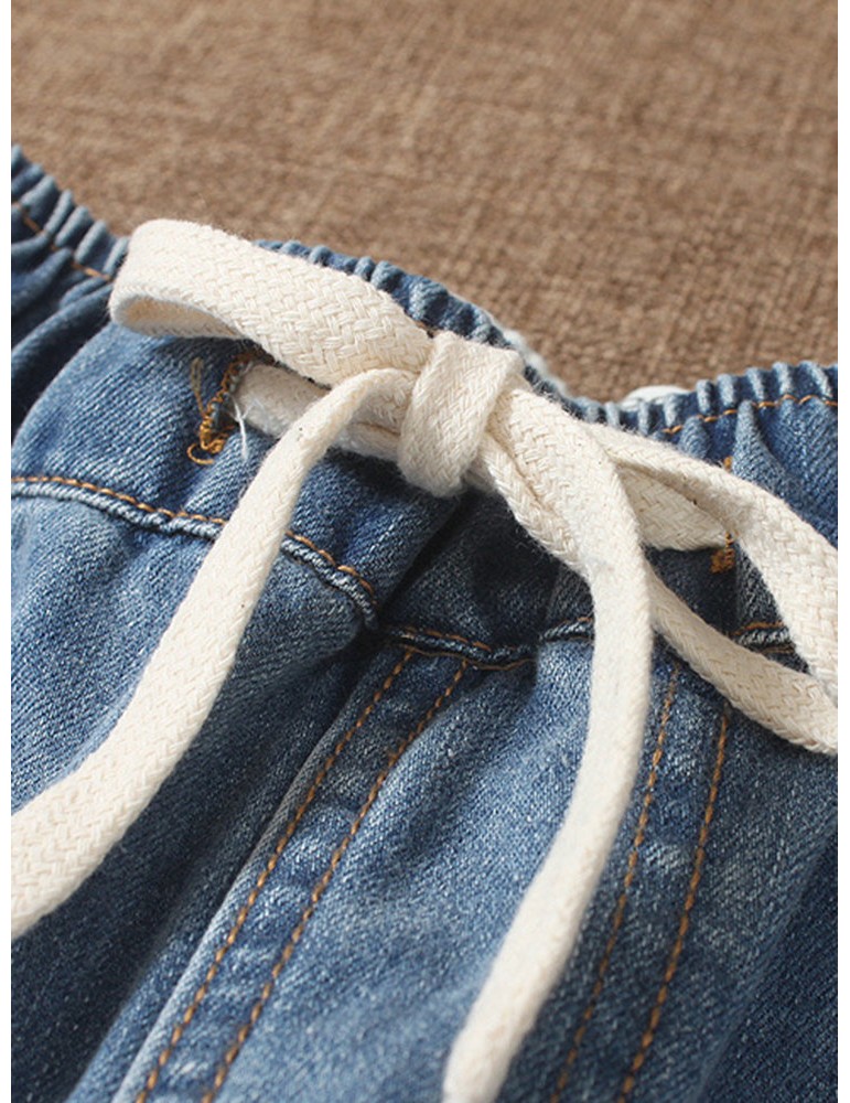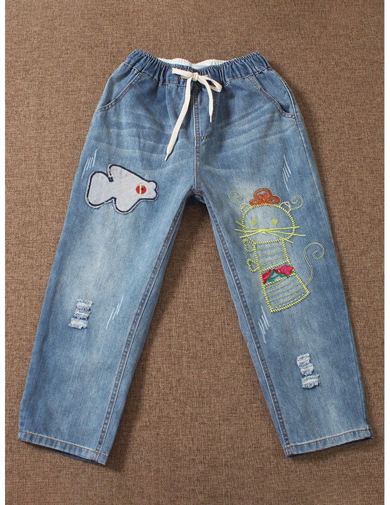 Sweet Embroidered Loose Elastic Waist Casual Denim