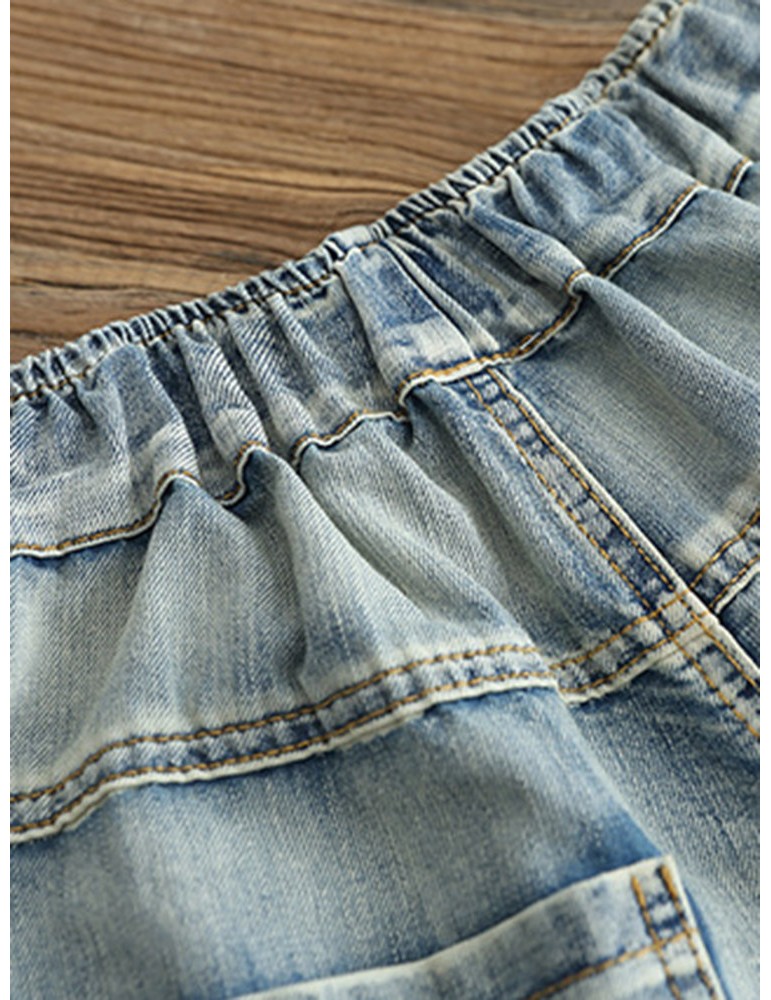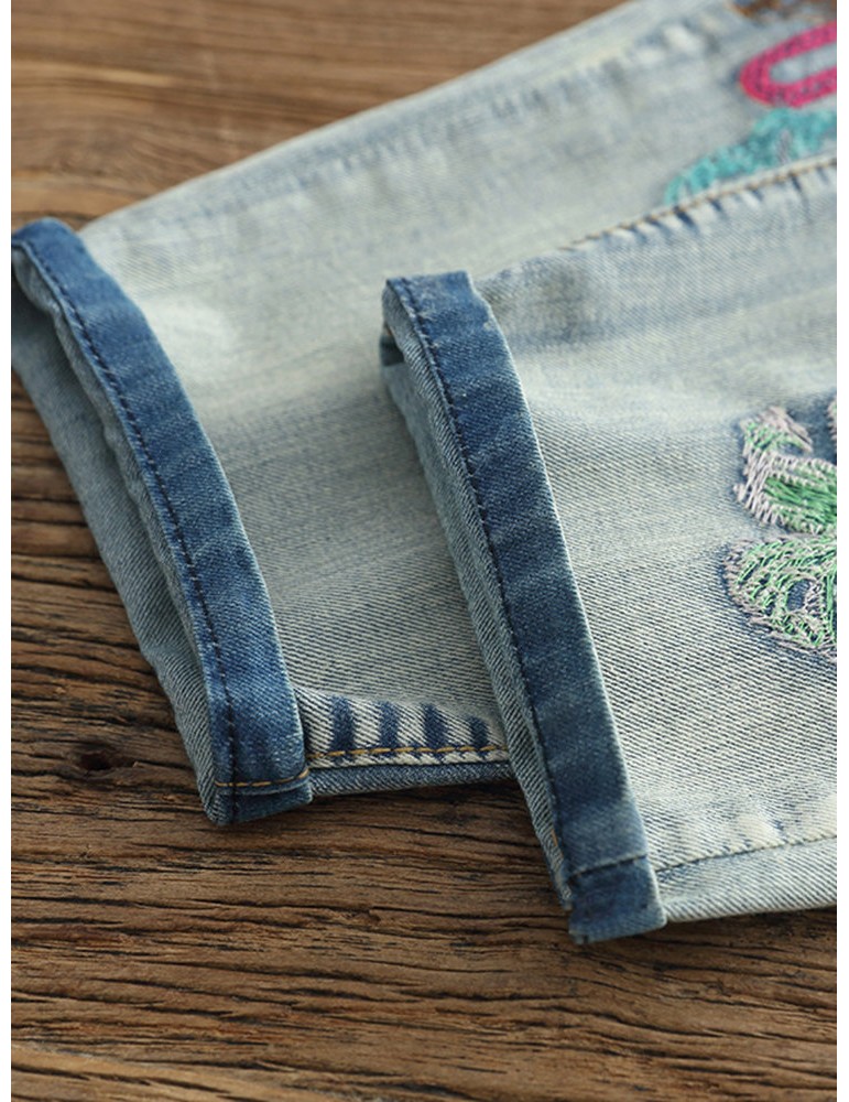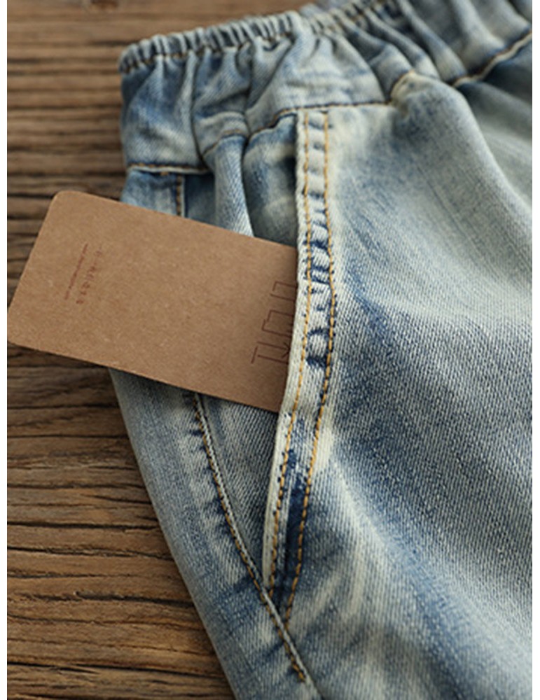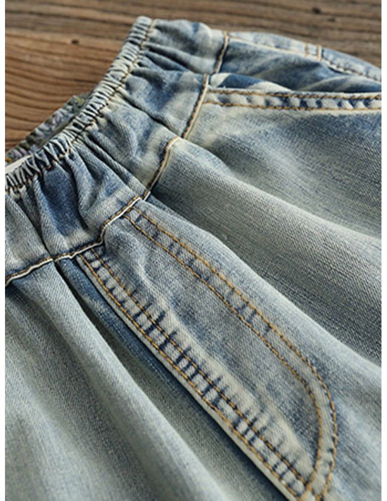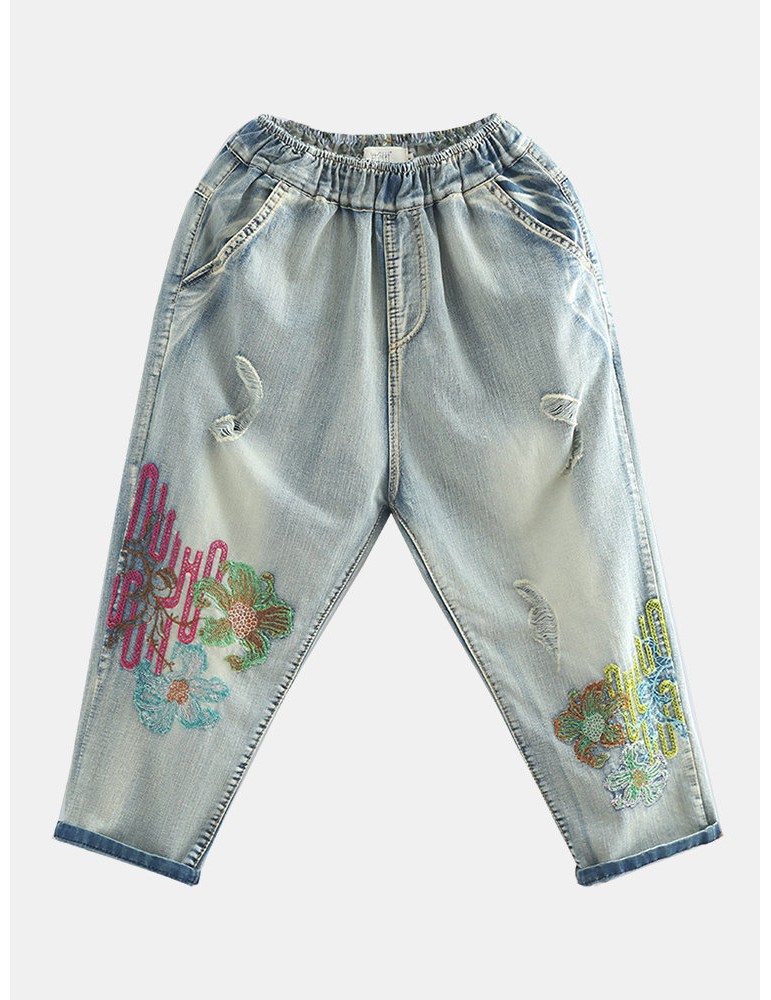 Harem Embroidery Elastic Waist Pockets Casual Jeans