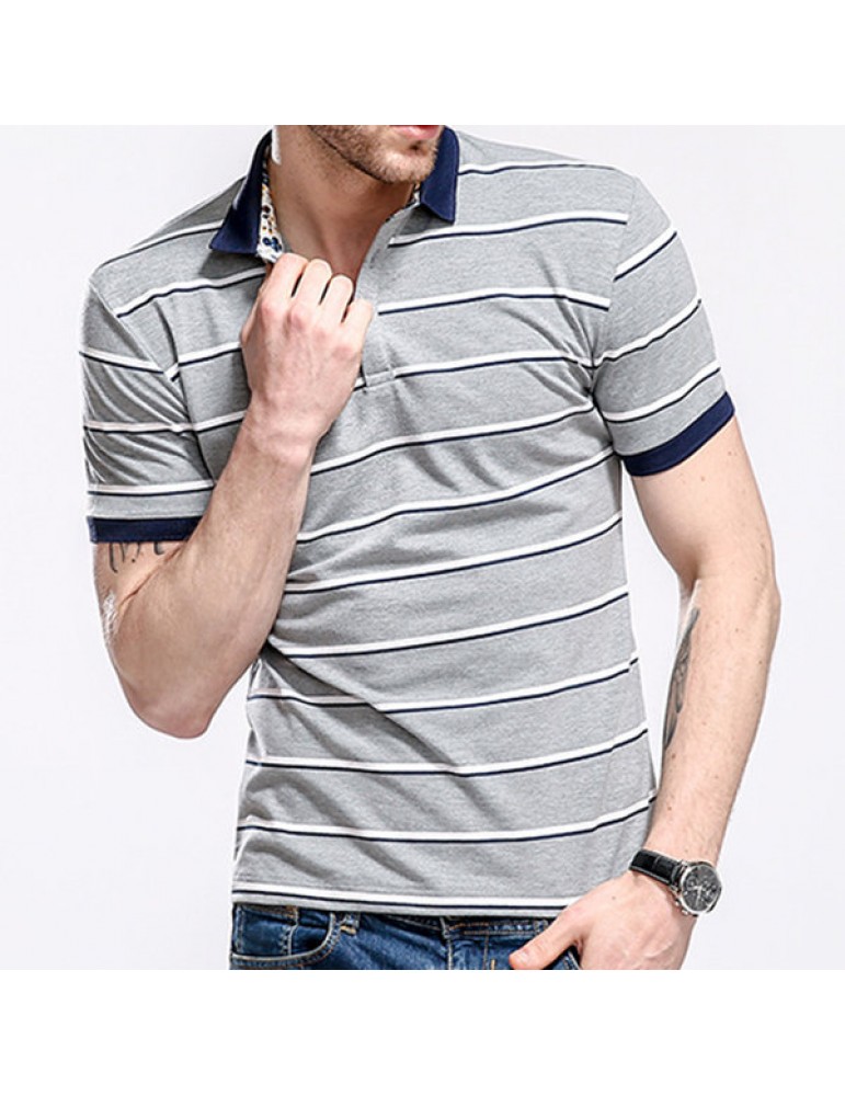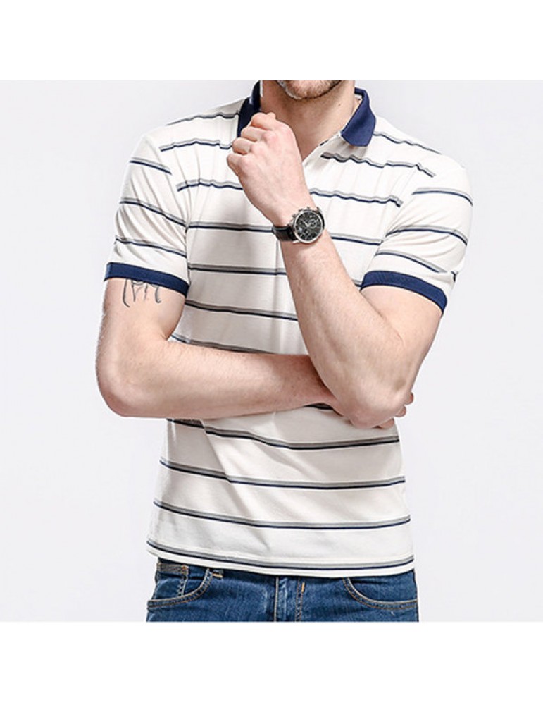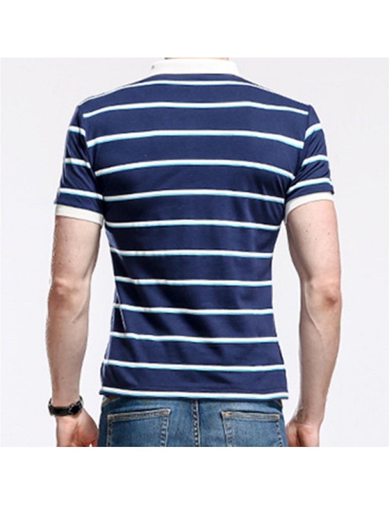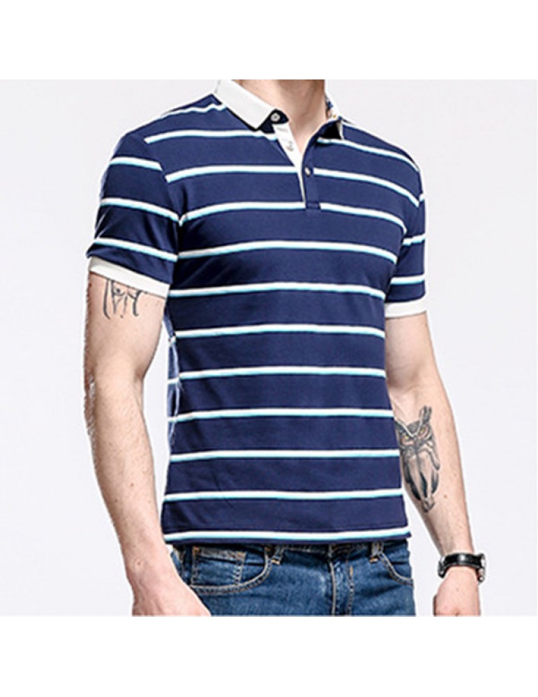 Mens Stripes Pattern Golf Shirt Turn-down Collar Short Sleeve Casual Tops