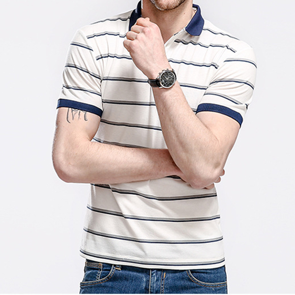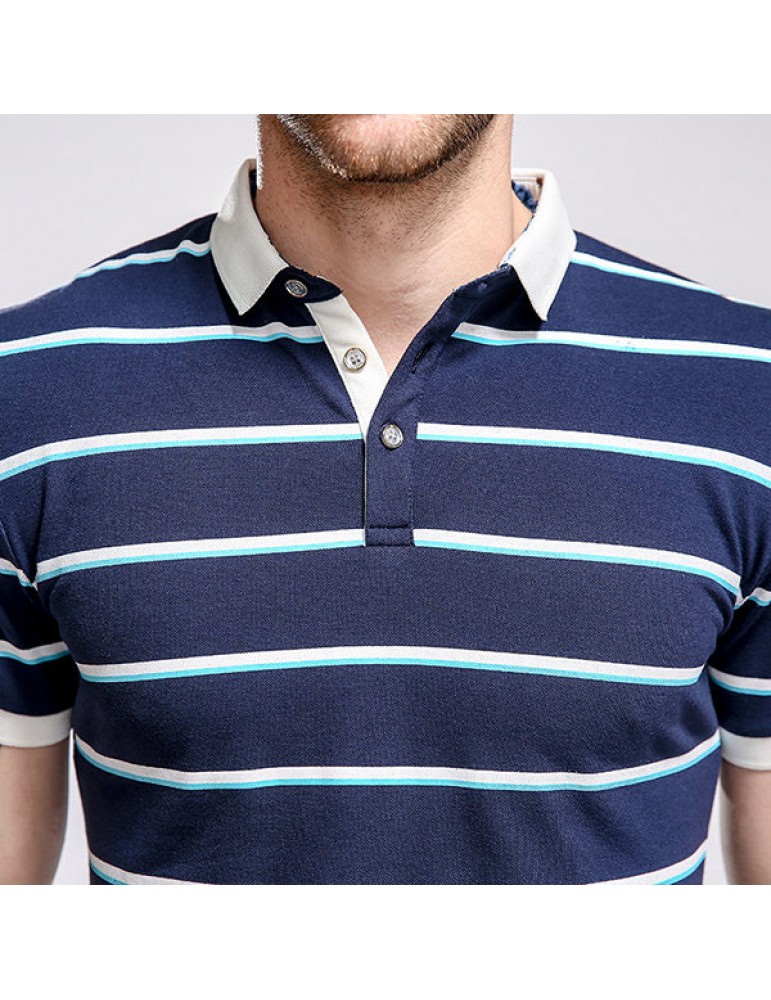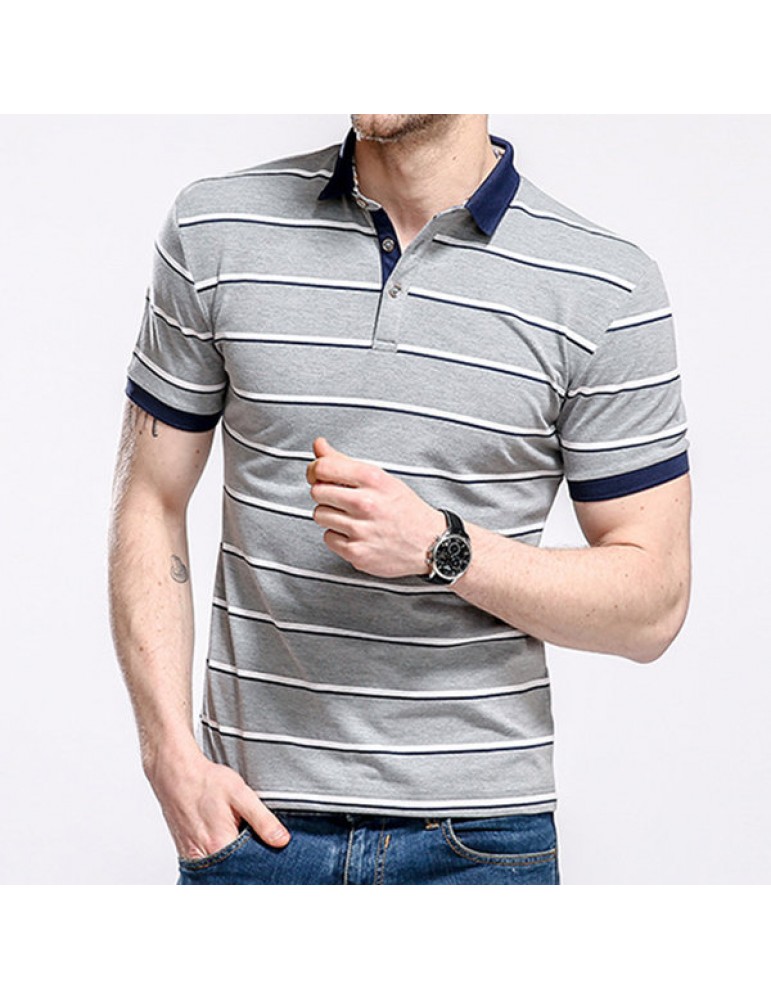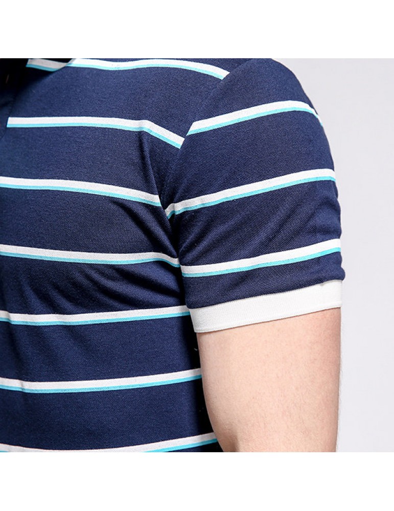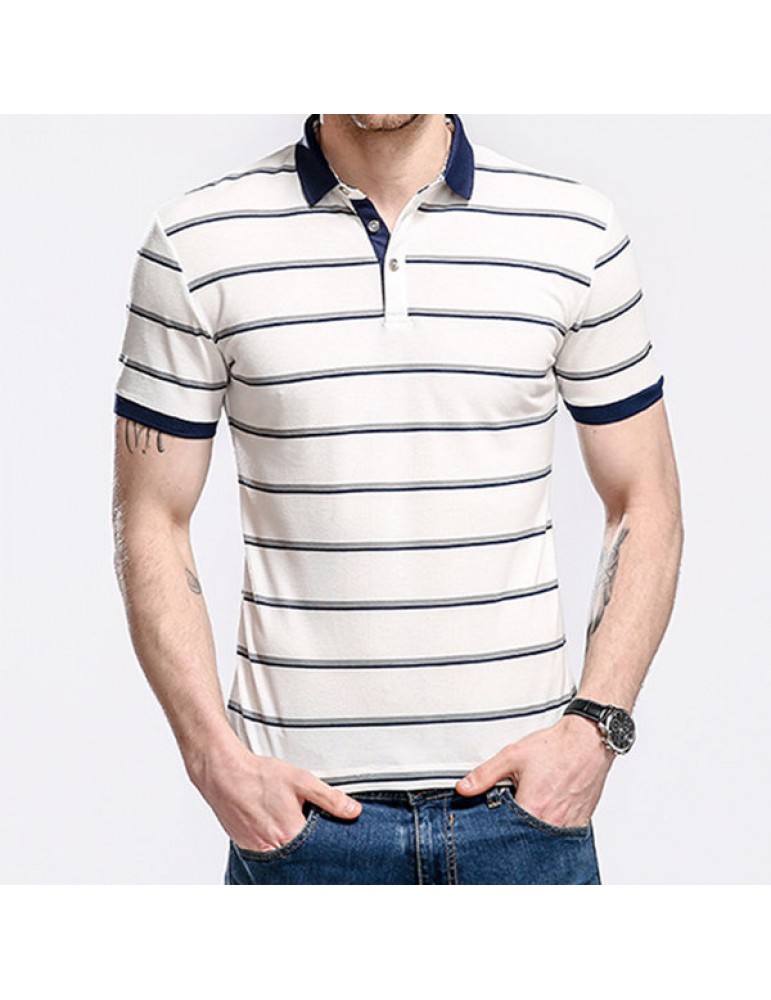 Mens Stripes Pattern Golf Shirt Turn-down Collar Short Sleeve Casual Tops