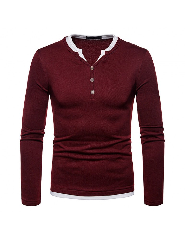 100% Cotton V-neck Long Sleeve Half Button Down T-shirt for Men