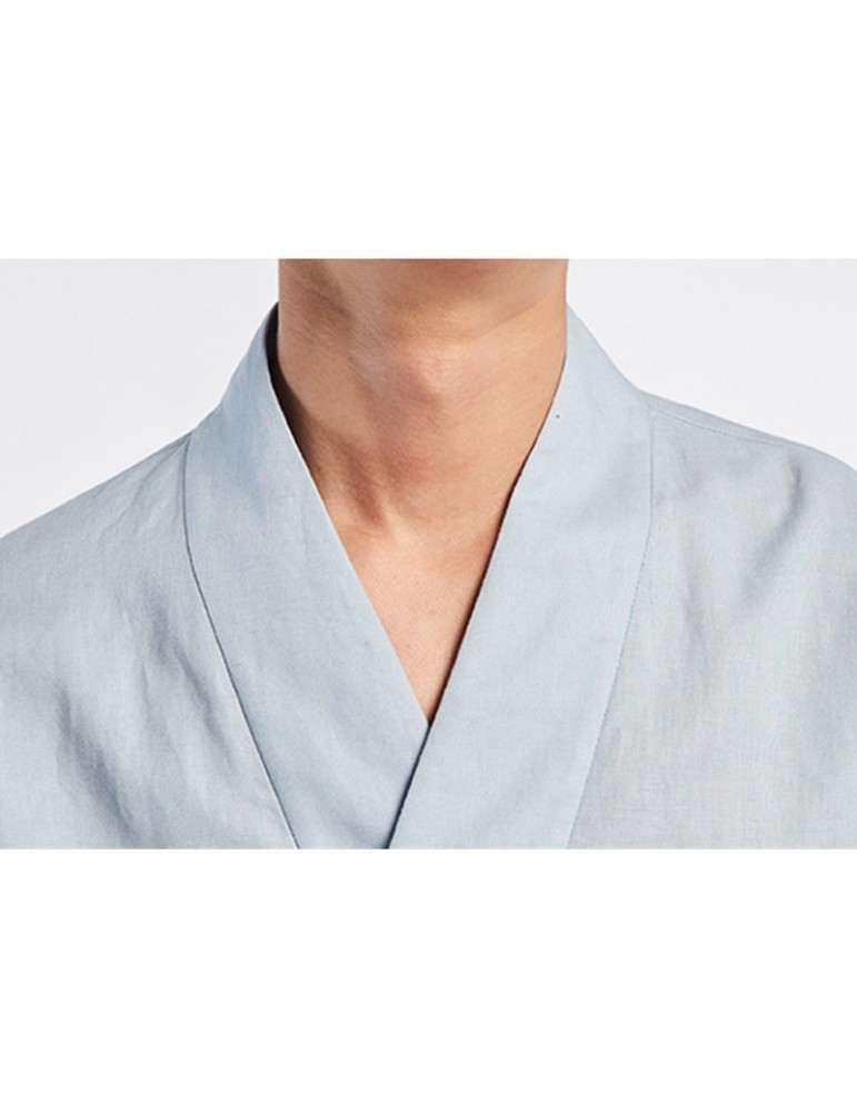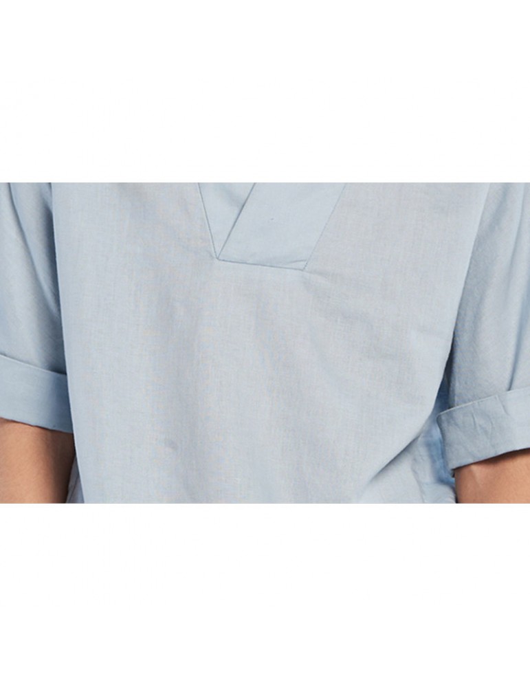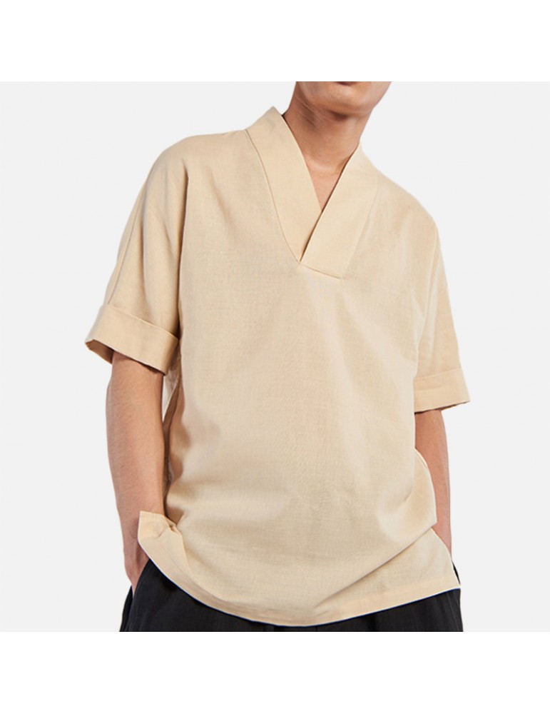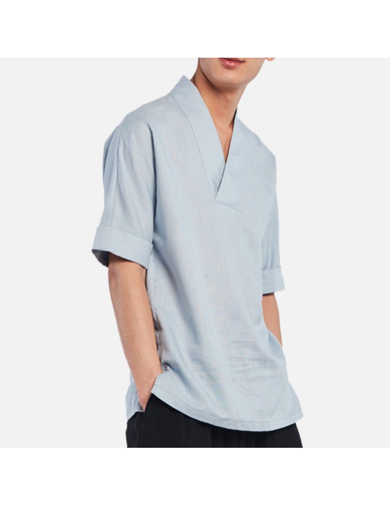 Men's Chinese Style Vintage Cotton Linen T-shirts V-neck Seven-point Sleeve Tops
