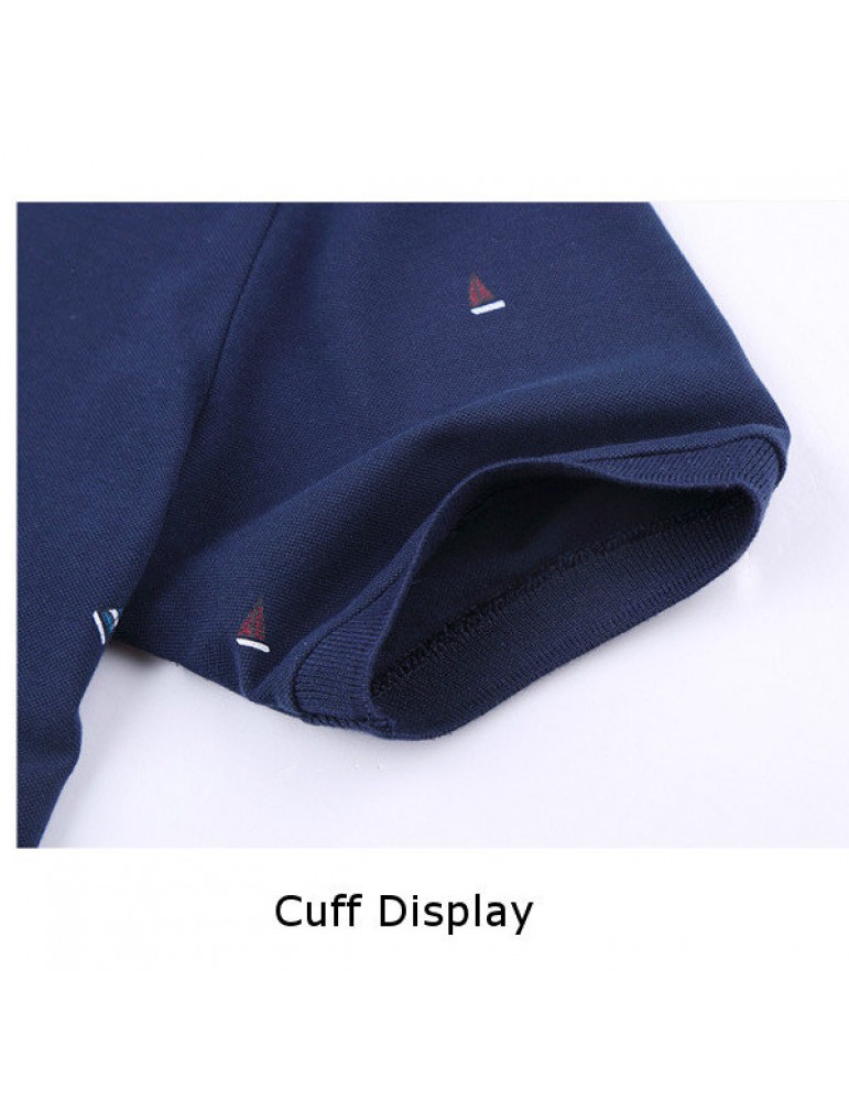 Summer Mens Short Sleeved Turndown Collar Sailing Boats Printing Golf Shirt