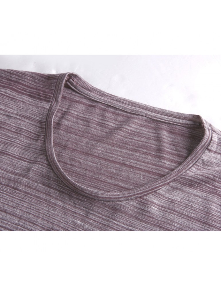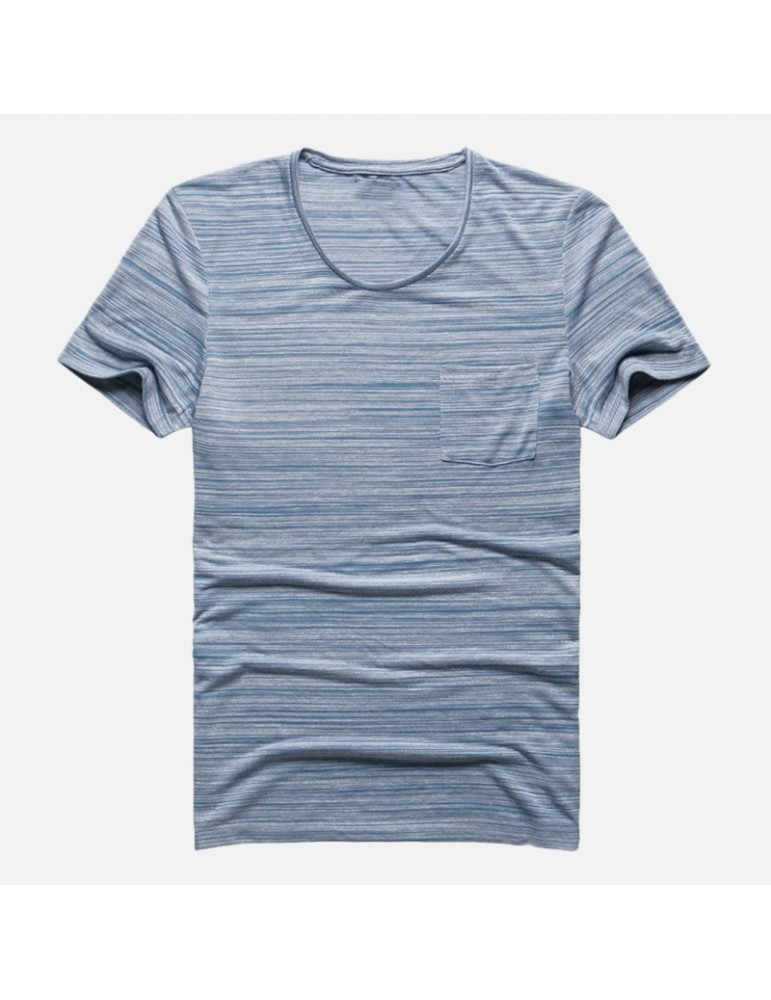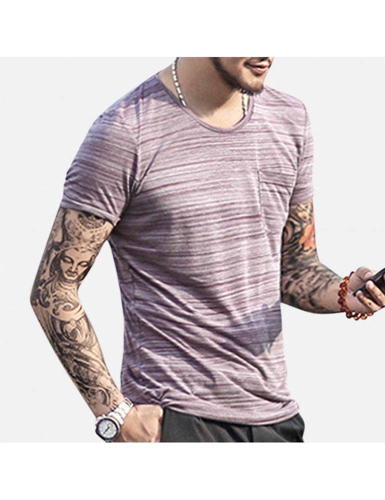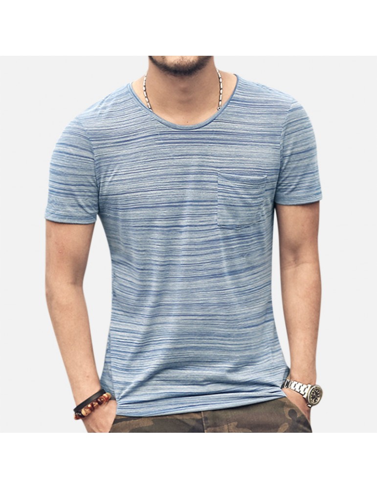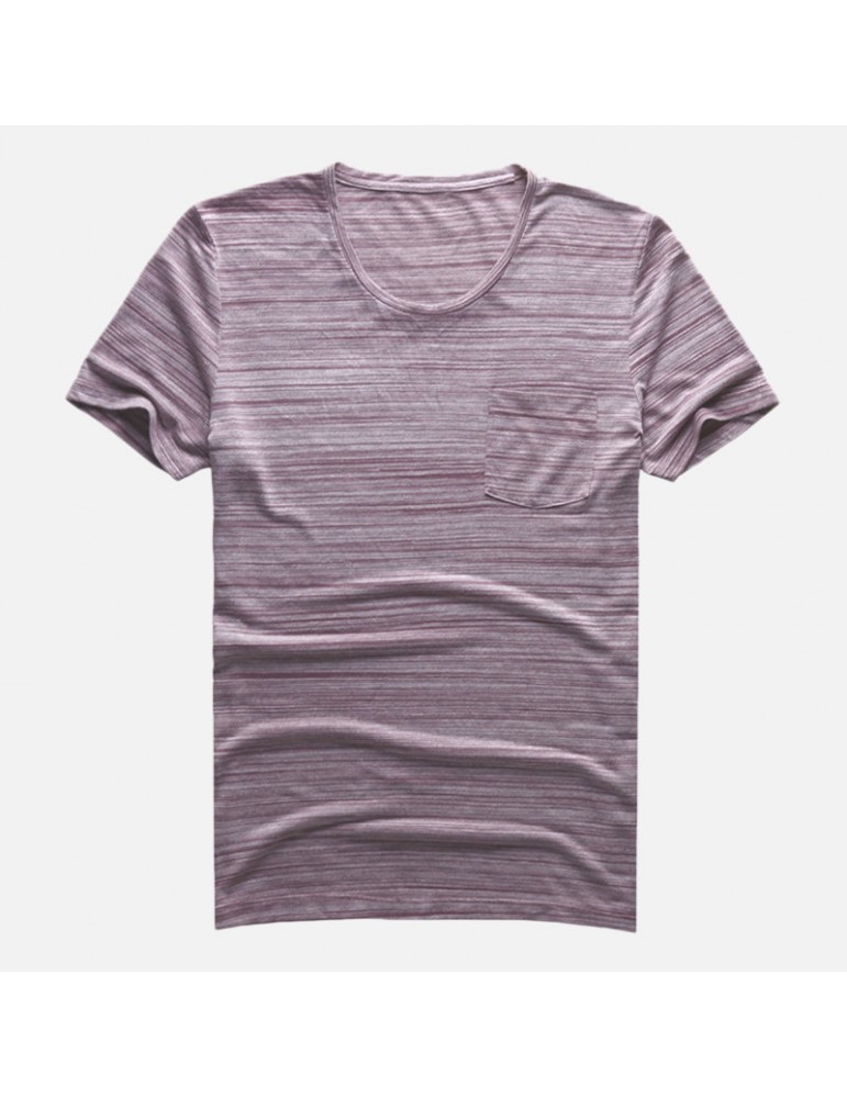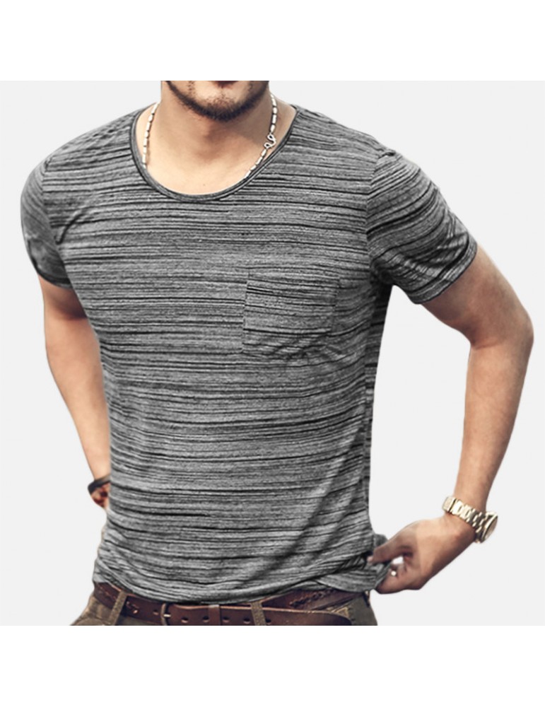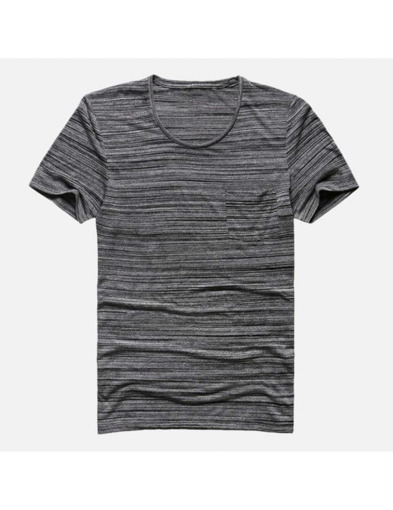 Mens Basic Breathable Striped Chest Pocket Casual Loose Brief T-shirt