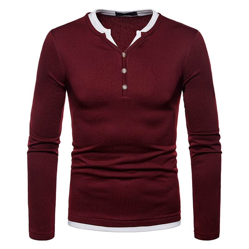 100% Cotton V-neck Long Sleeve Half Button Down T-shirt for Men
