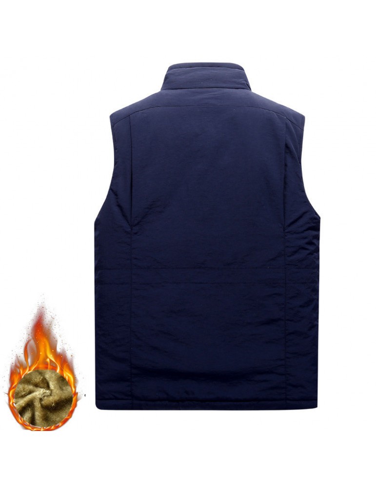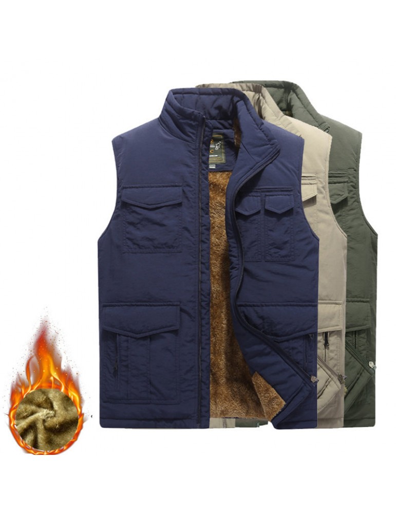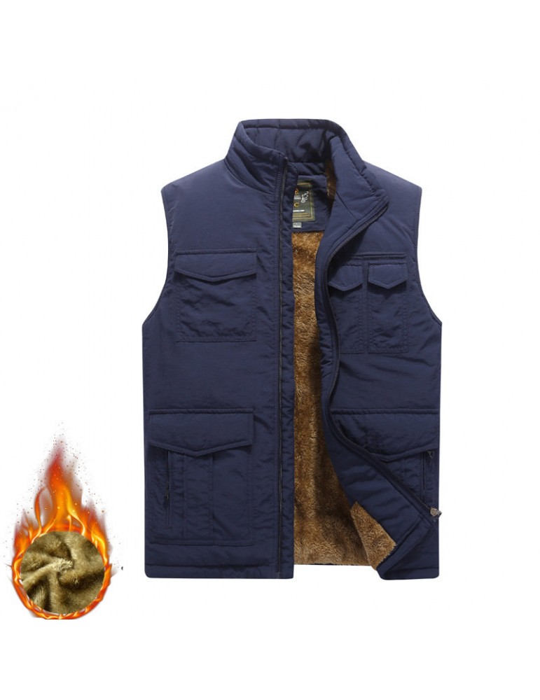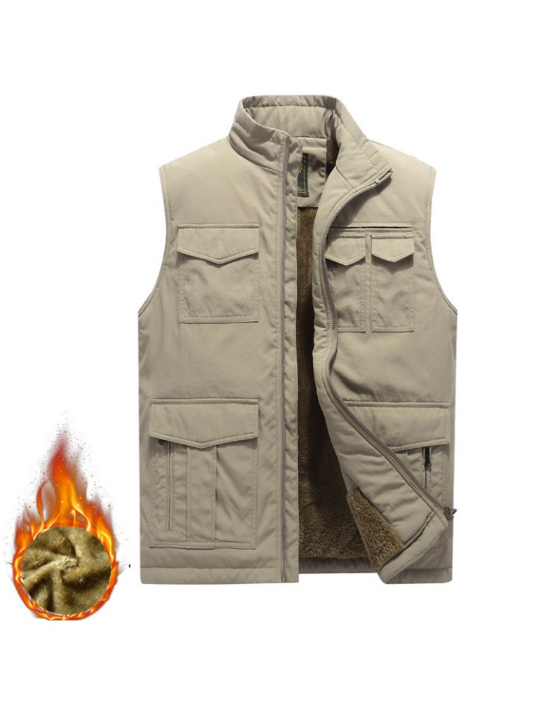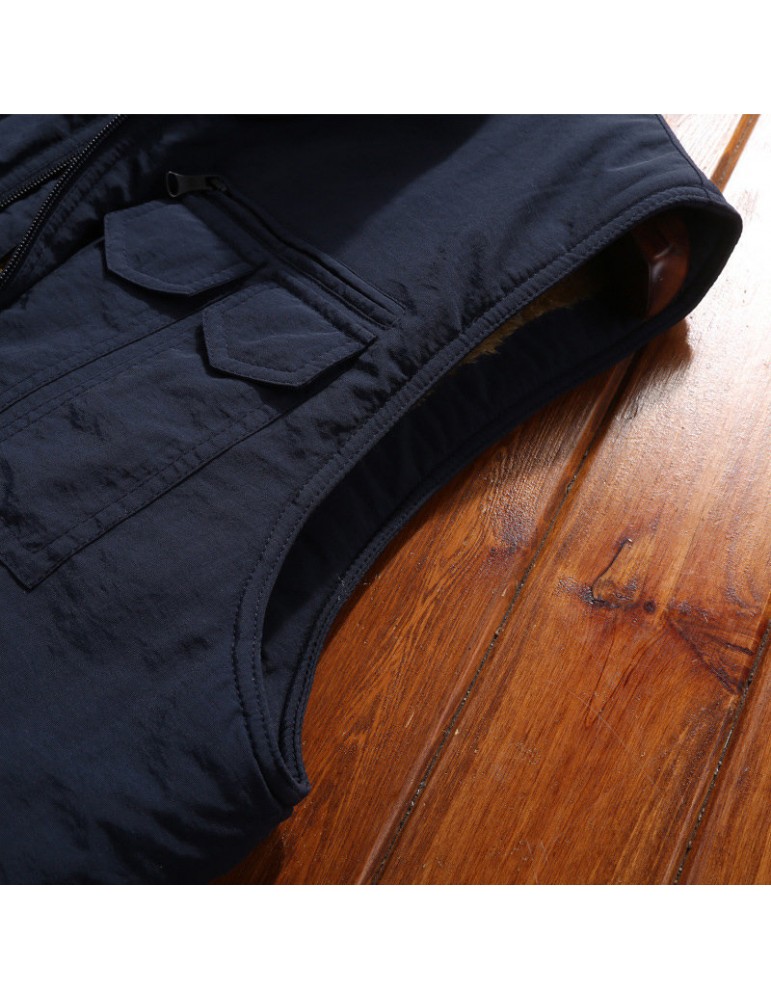 Men's Mutil-Pockets Outdoor Fishing Sleeveless Shearling Stand Collar Coat Thicken Fleece Vest