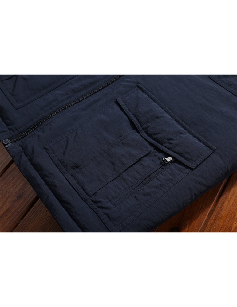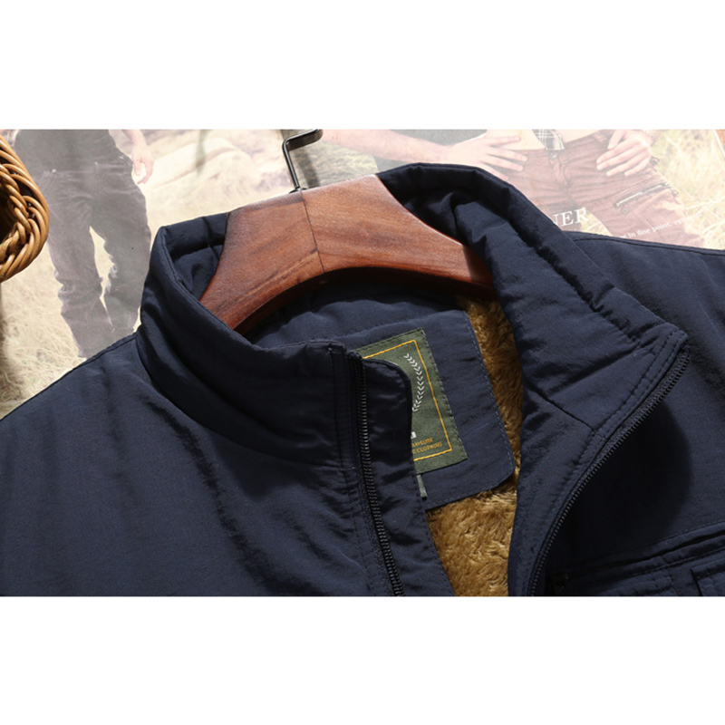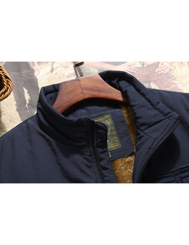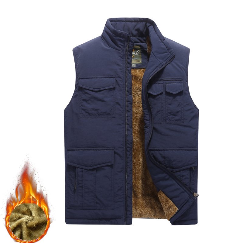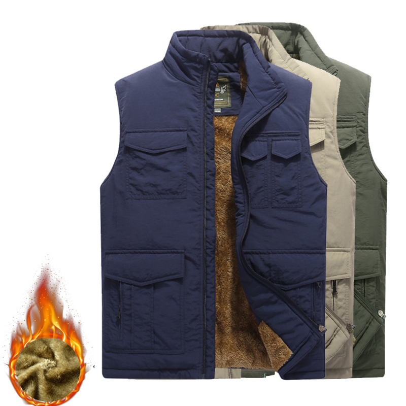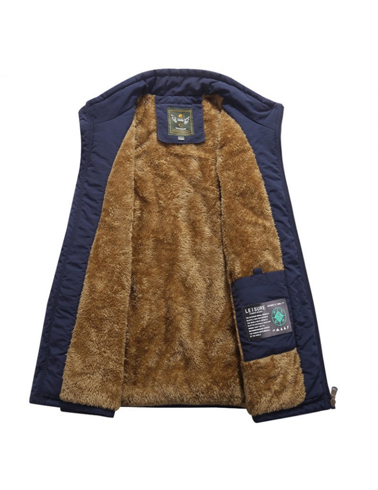 Men's Mutil-Pockets Outdoor Fishing Sleeveless Shearling Stand Collar Coat Thicken Fleece Vest