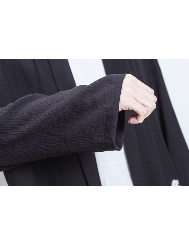 Mens Mid-long Crane Embroidered National Style Long Sleeve Open Up Black Casual Jacket
