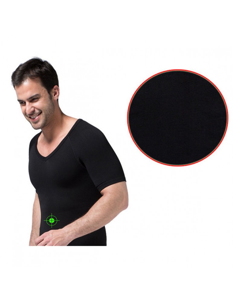 Body Shaper Fitness Abdomen Tummy Slim Sport High Elastic V-Neck T-shirt for Men
