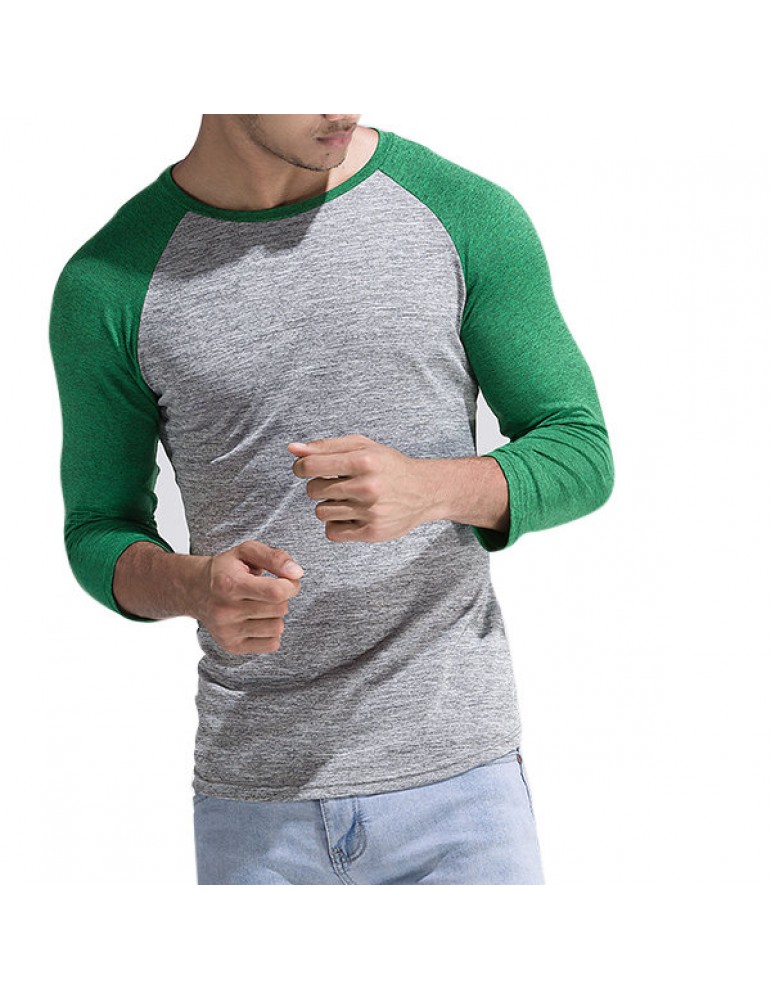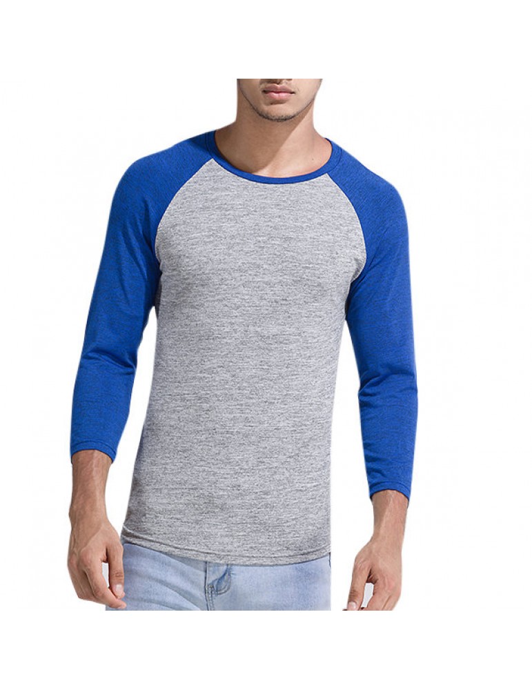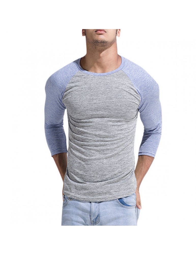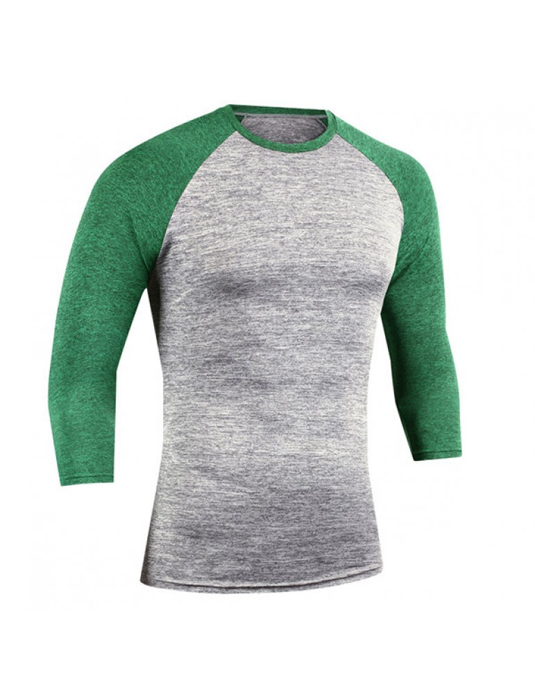 Mens Quick-drying Hit Color Fitness Trainning Sport Three Quarter Sleeve Casual T-shirt