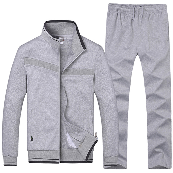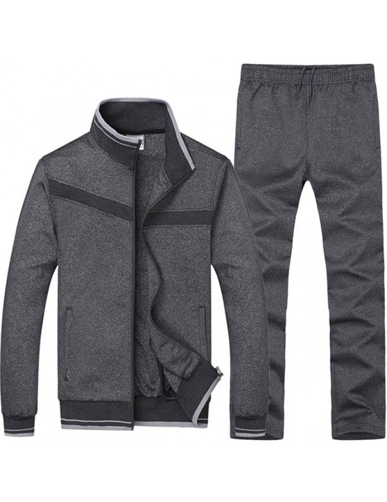 Mens Casual Sport Suits Solid Color Stand Collar Zip Up Hoodies Elastic Waist Joggers Sport Pants