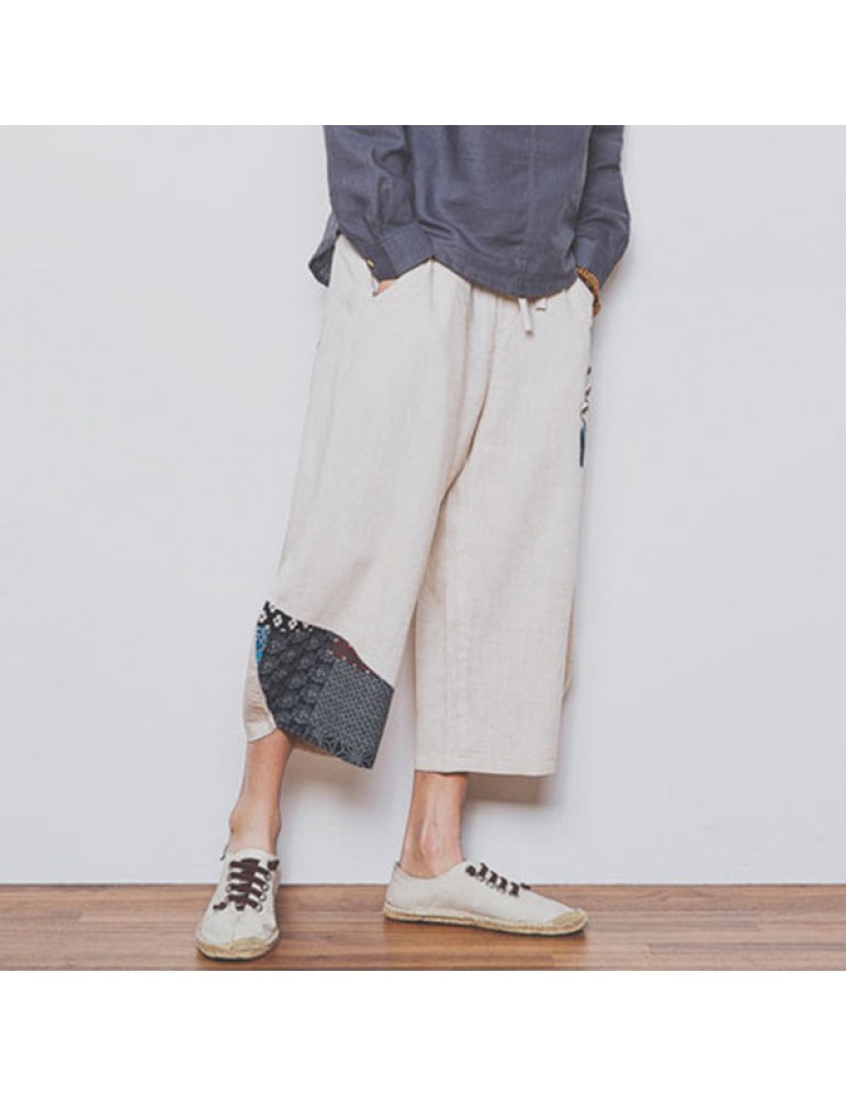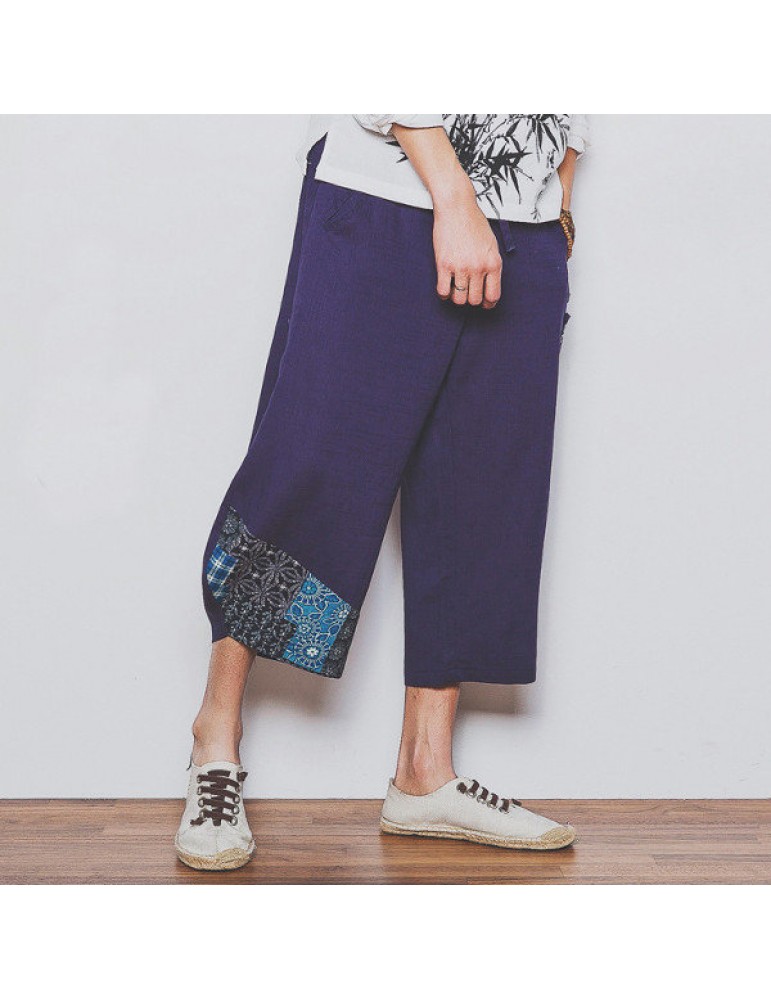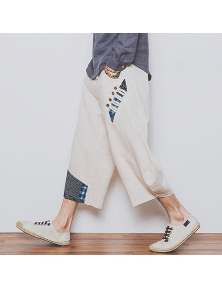 Mens Breathable Cotton Linen Calf Length Harem Pants Baggy Loose Drawstring Casual Shorts