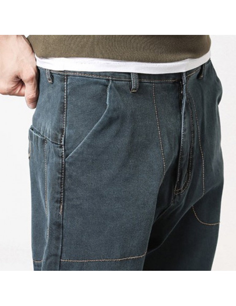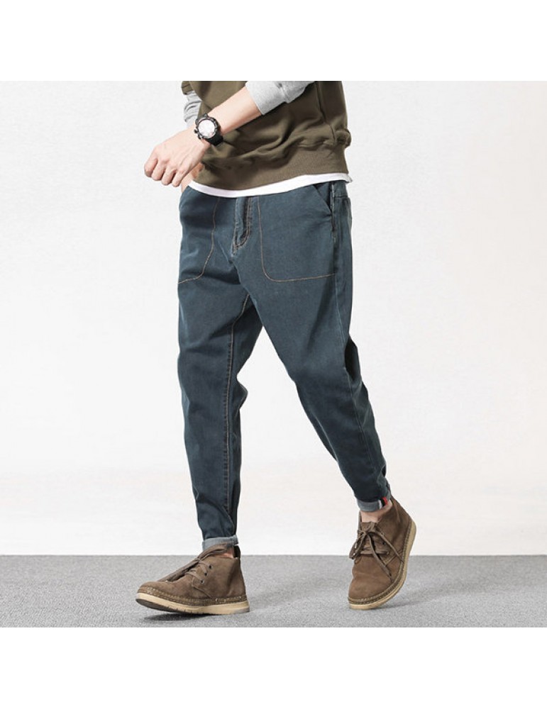 Loose Solid Color Casual Harem Pants Big Pockets Jean for Men
