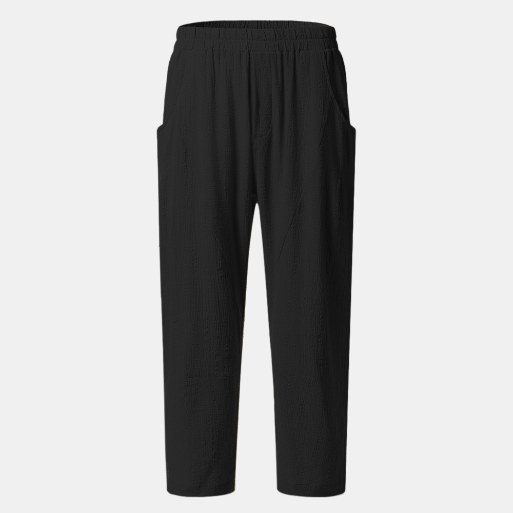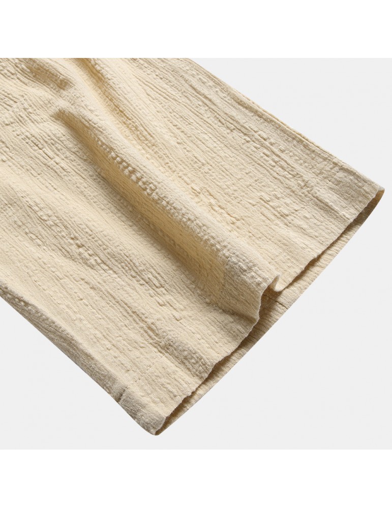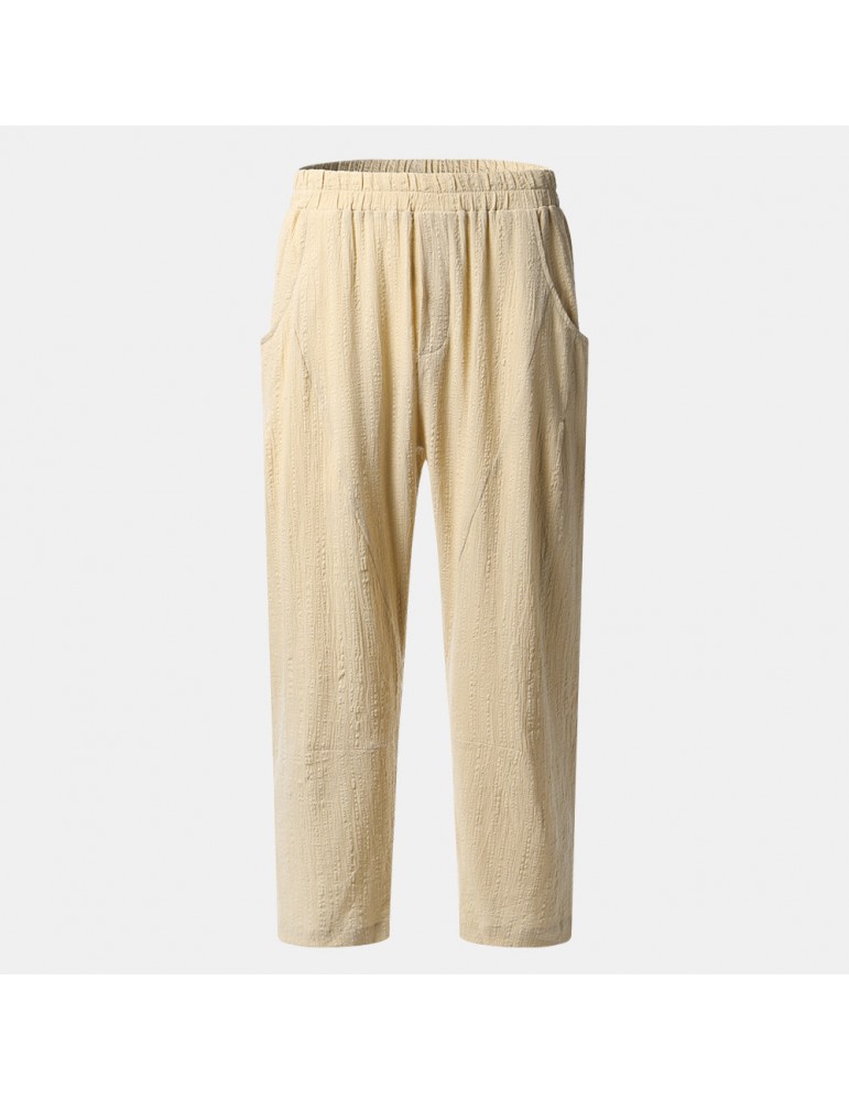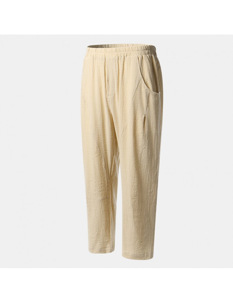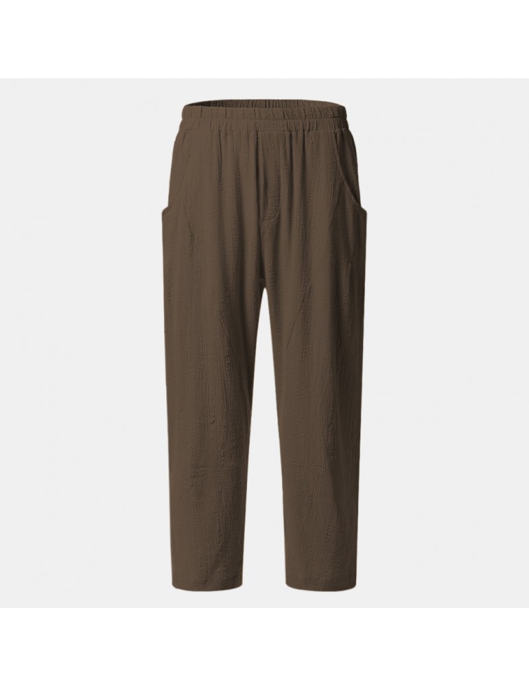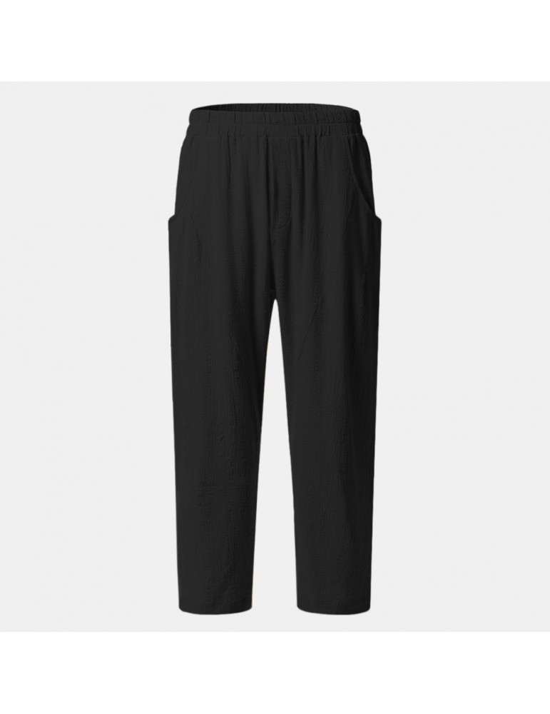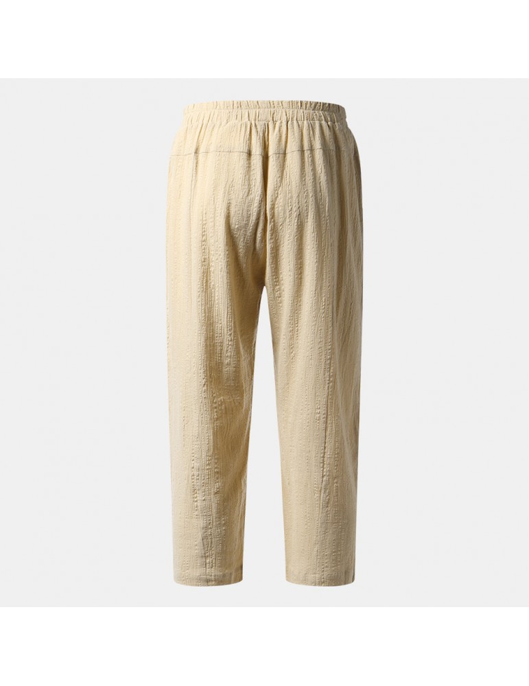 Mens Cotton Linen National Style Breathable Elastic Casual Straight Pants