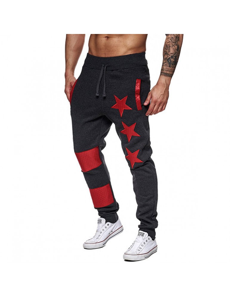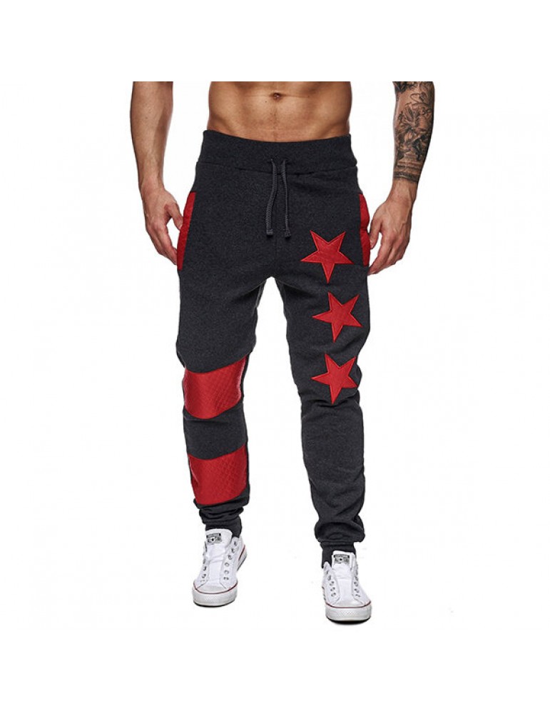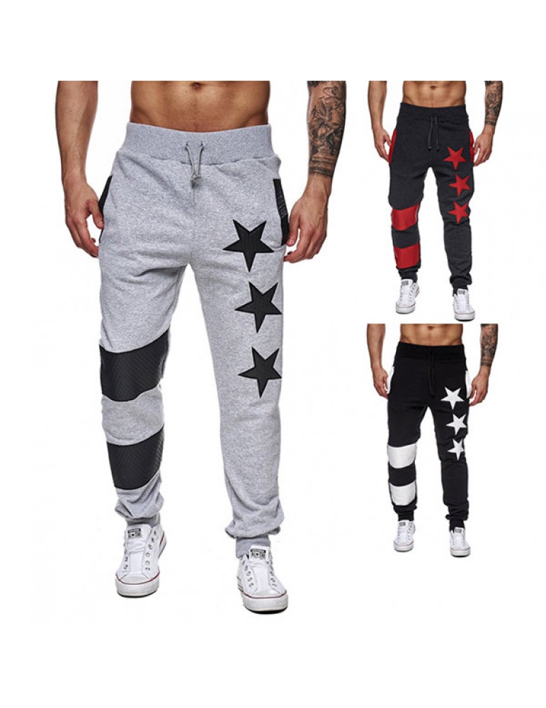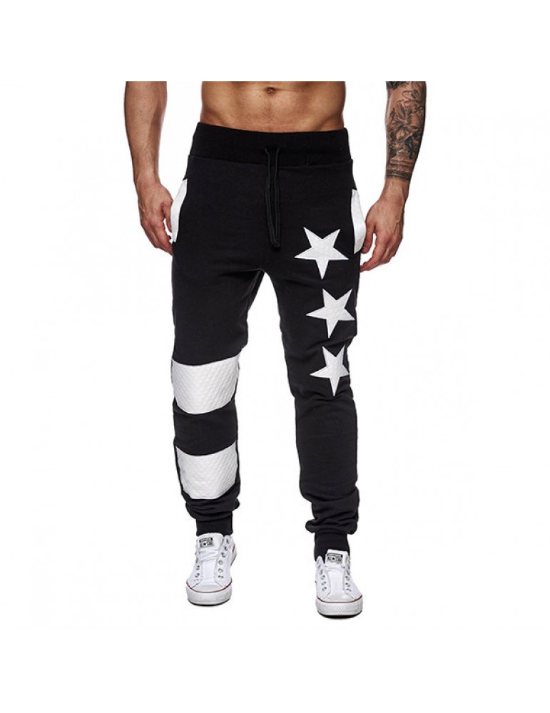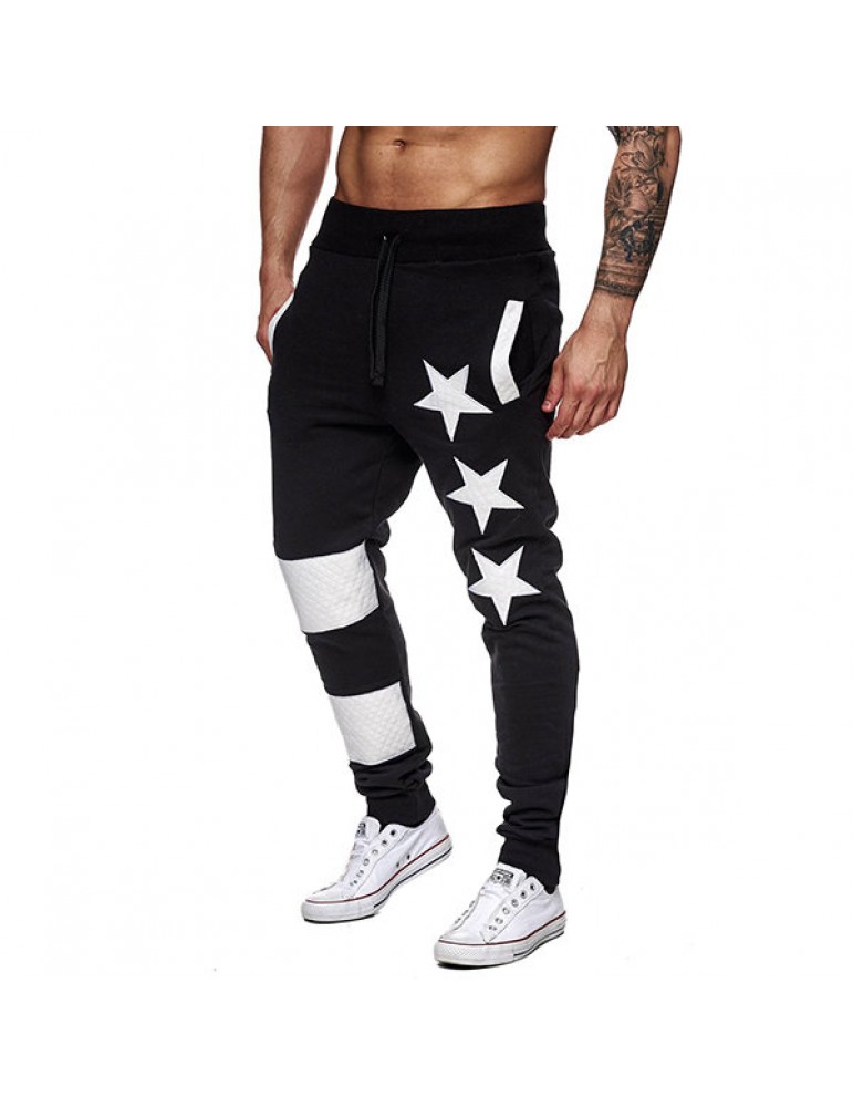 Mens Sport Pants Elastic Waist Drawstring Stars Pattern Casual Sportwear