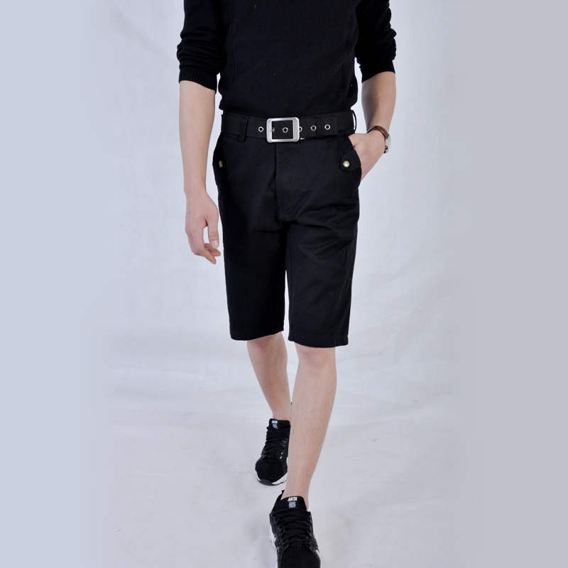 Mens Summer 100%Cotton Breathable Solid Color Knee Length Regular Fit Casual Shorts