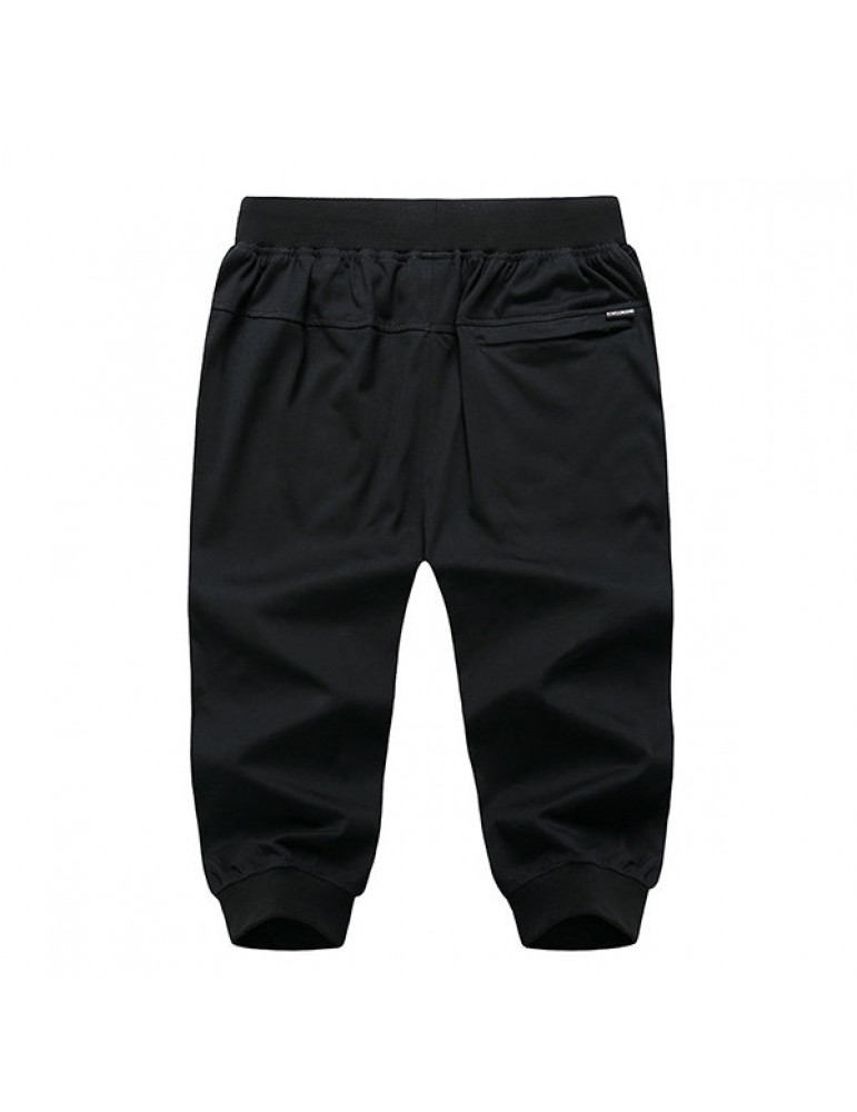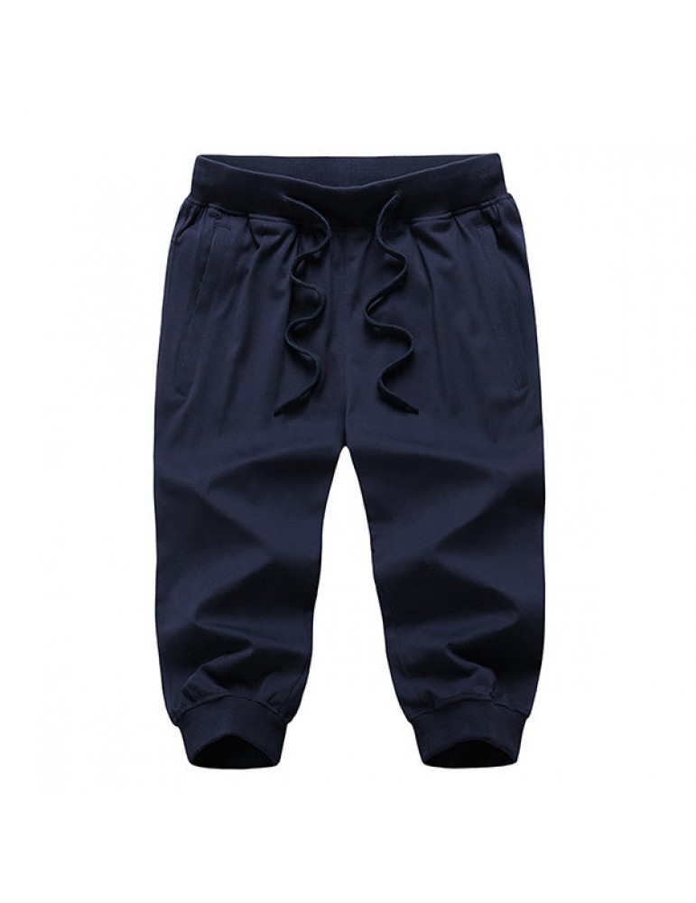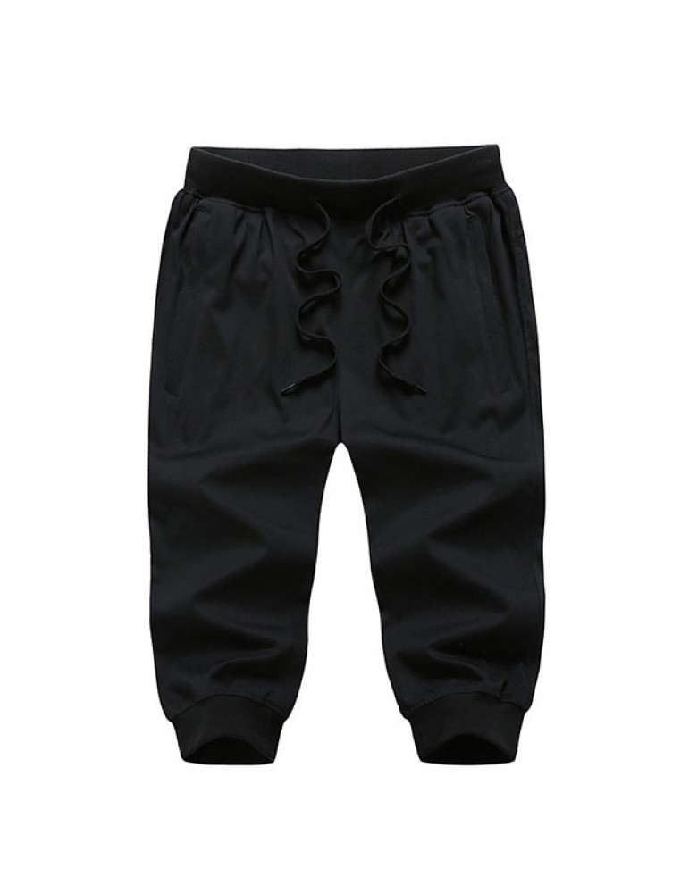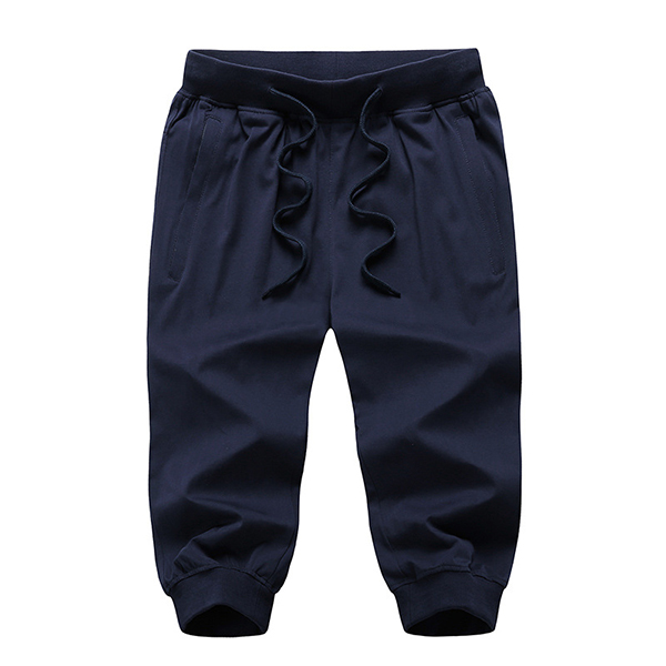 Mens Summer Breathable Solid Color Drawstring Sport Casual Calf-Length Pencil Pants