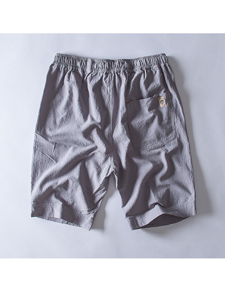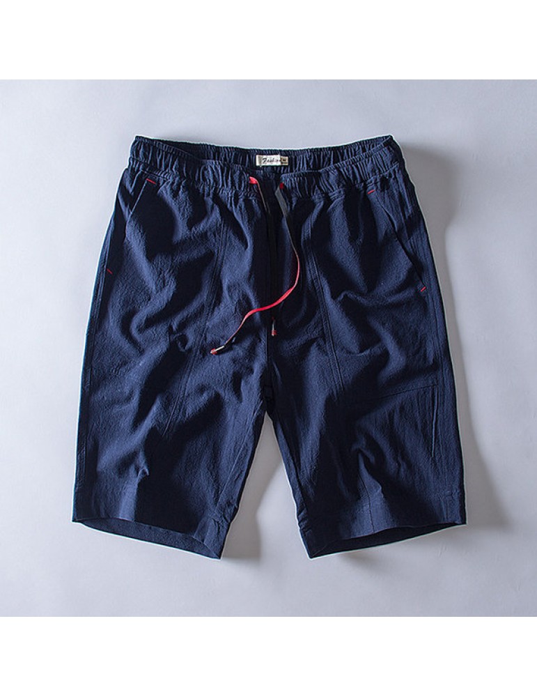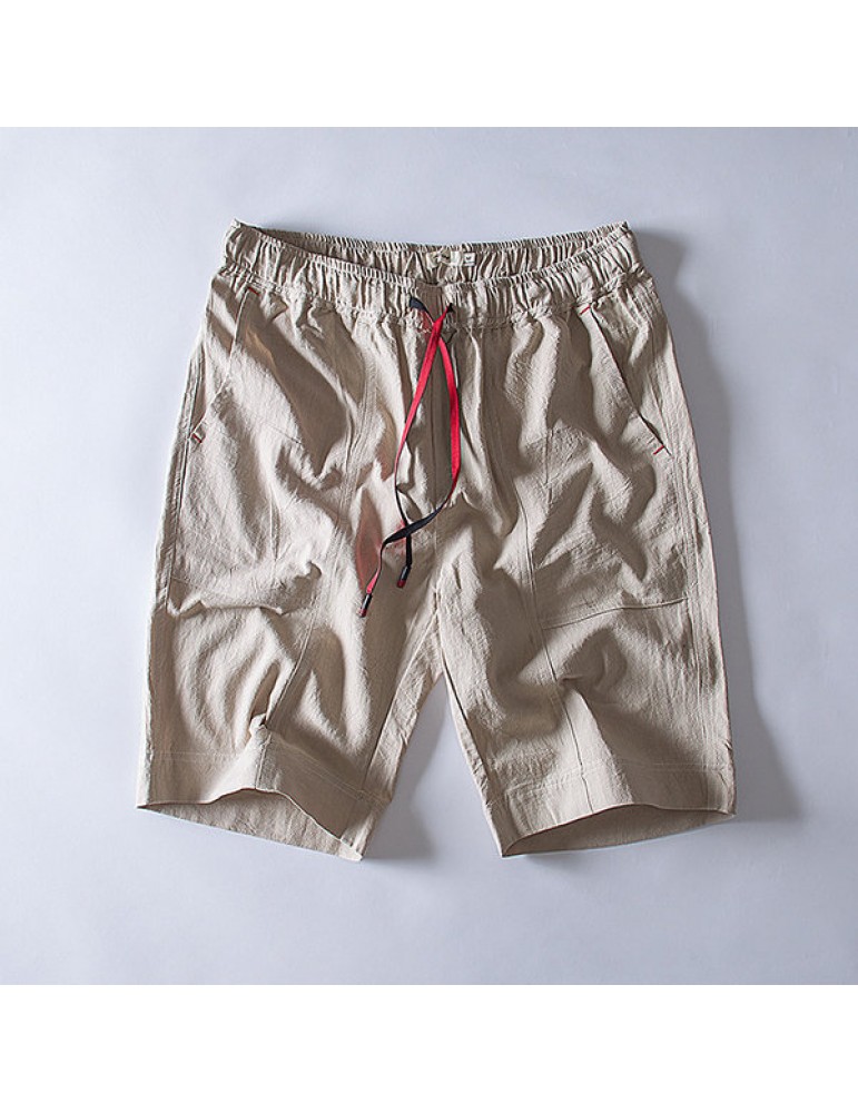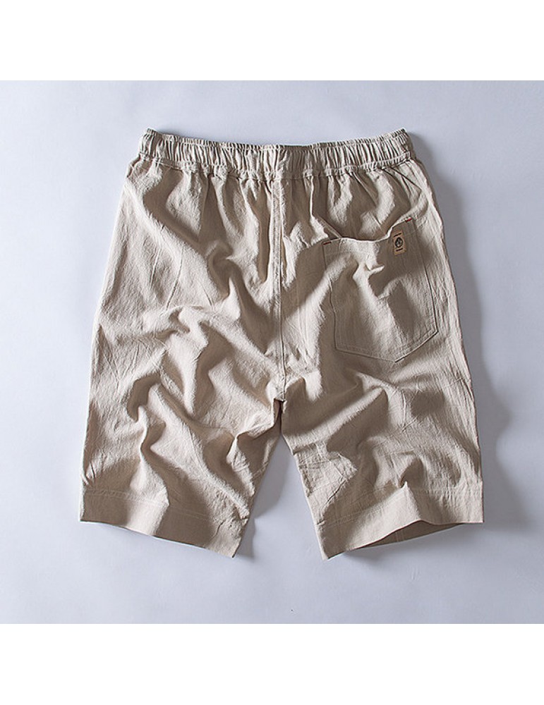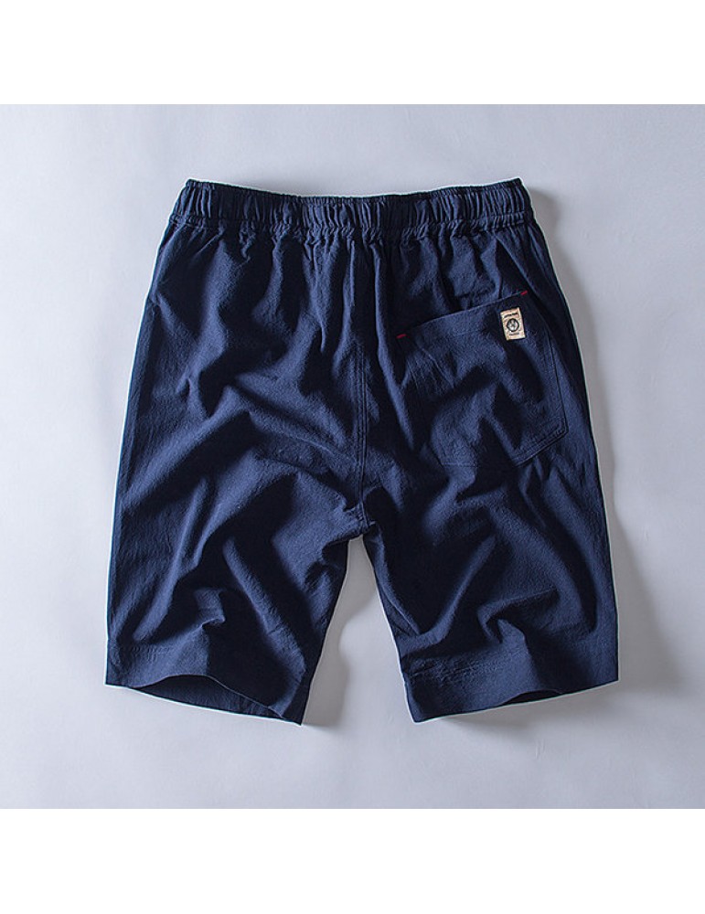 Mens Summer 100% Cotton Breathable Solid Color Knee Length Drawstring Casual Shorts